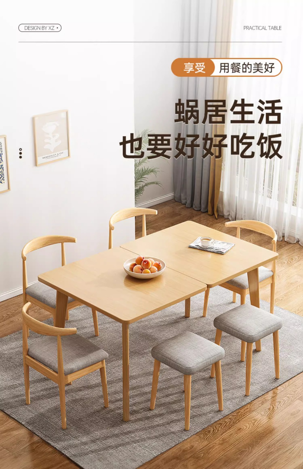 Pata de madera maciza mesa de comedor sala de alquiler pequeño apartamento hogar comercial Nordic simple mesa de comedor mesa rectangular y silla combinación