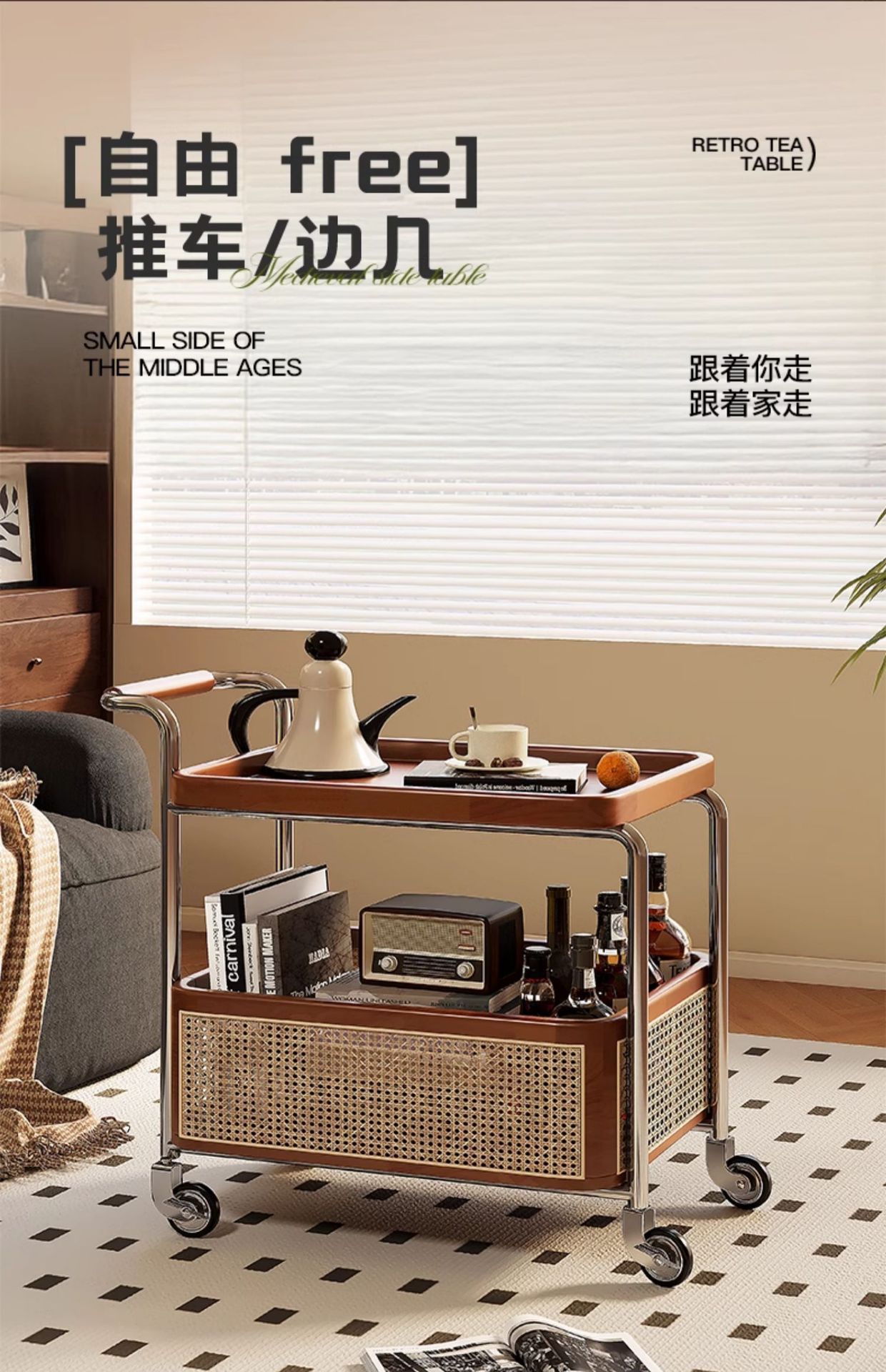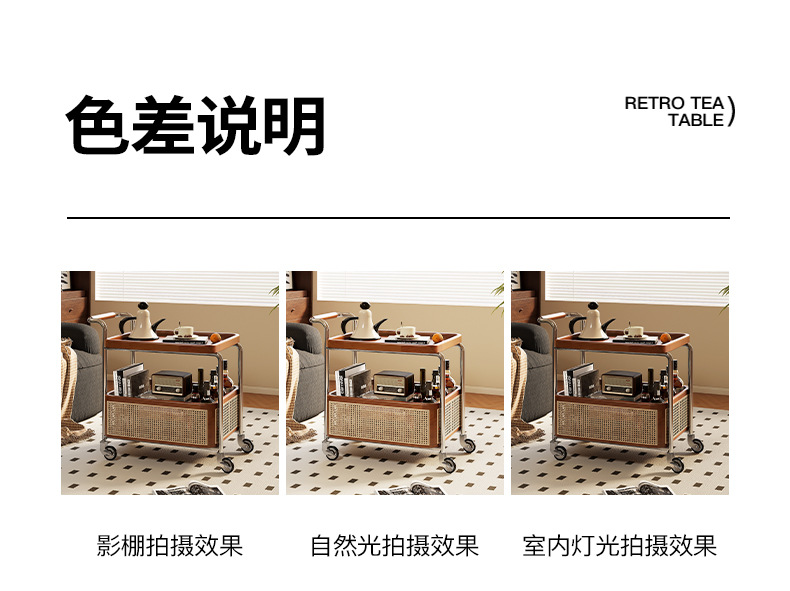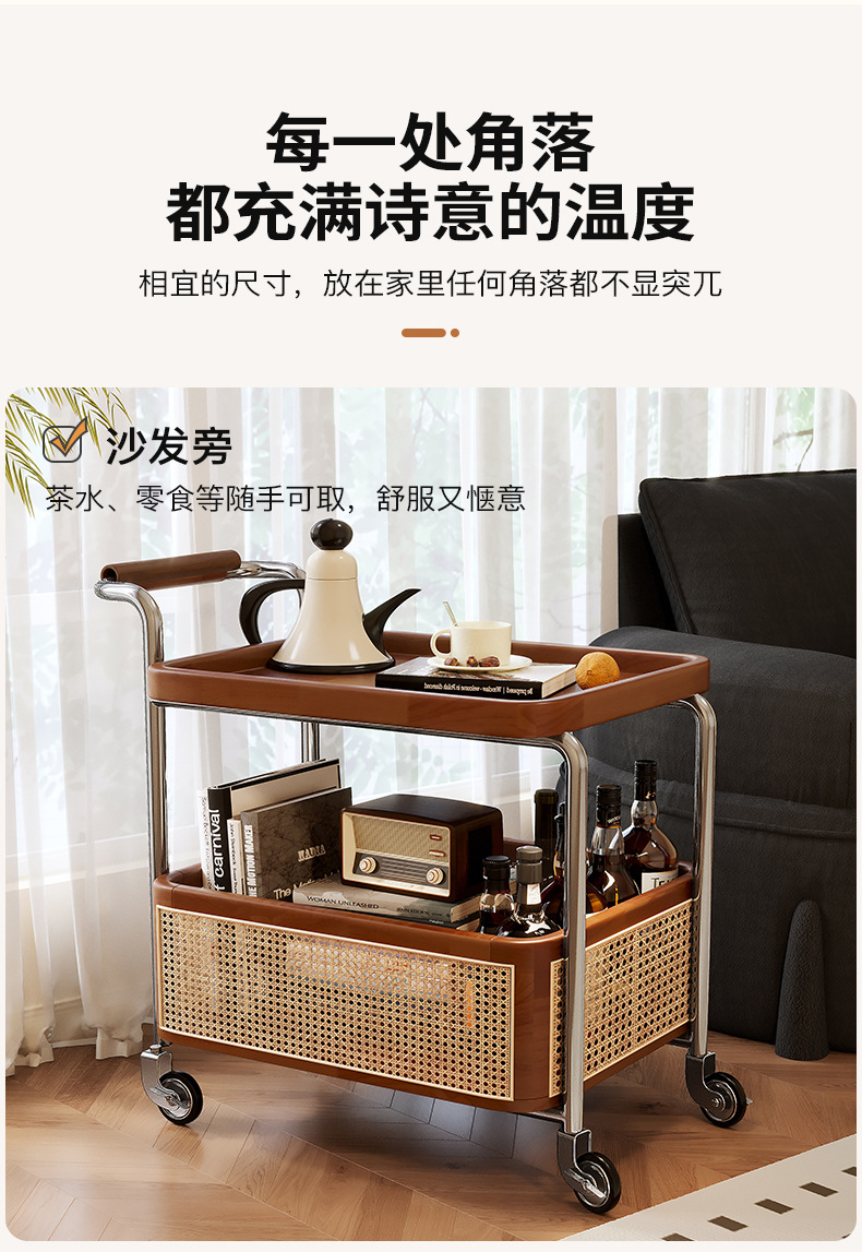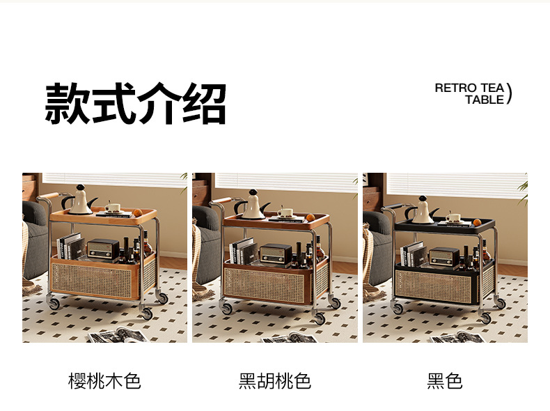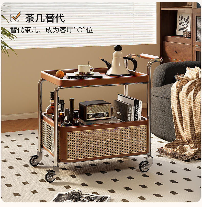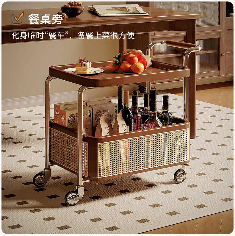 Un pequeño carro de lado móvil, sofá de sala de estar, mesa de té, nuevo estilo medieval, cocina de madera maciza, almacenamiento de estantes, carro de comedor.