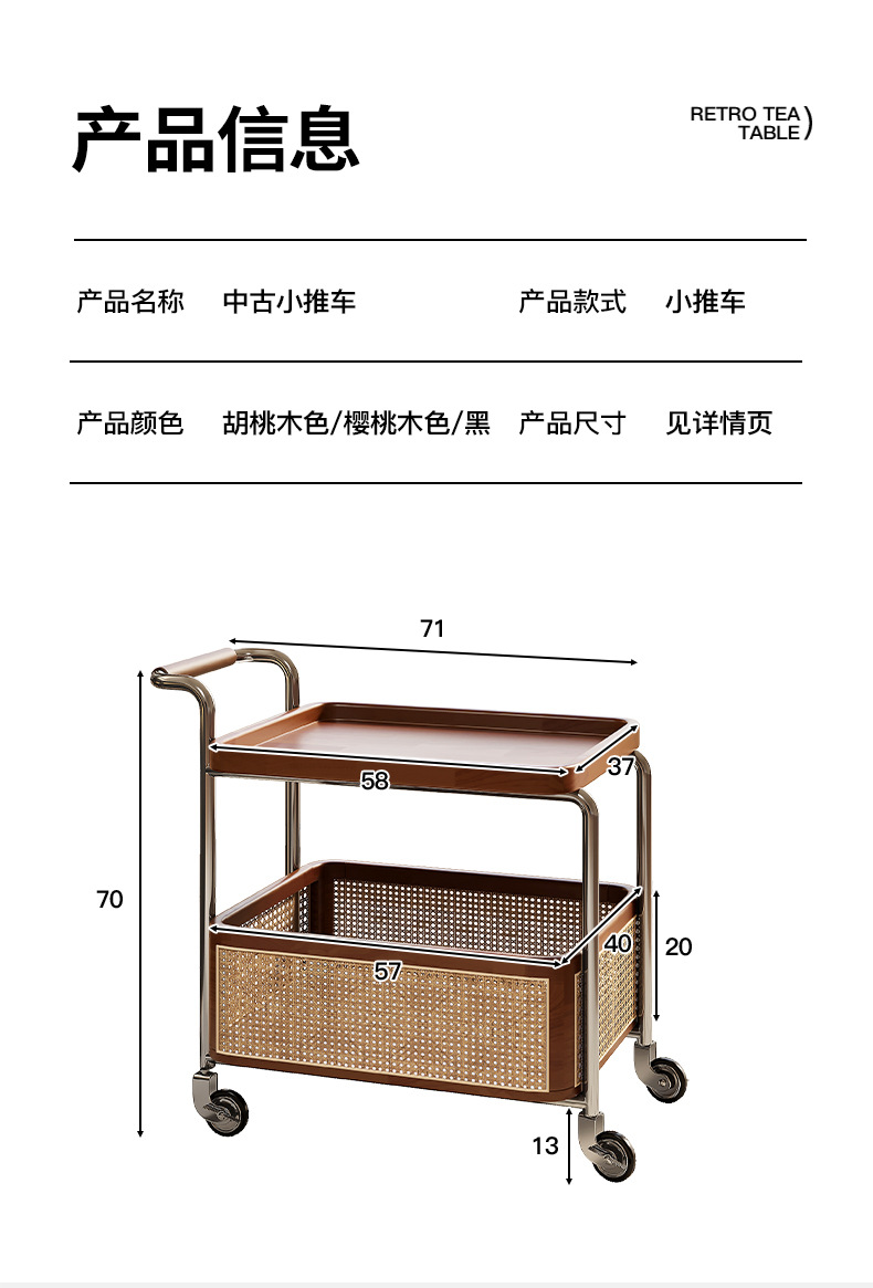 | Color | [madera maciza pura] carrito de color nuez negra, [madera maciza pura] carrito de color madera cereza, [madera maciza pura] carrito negro |