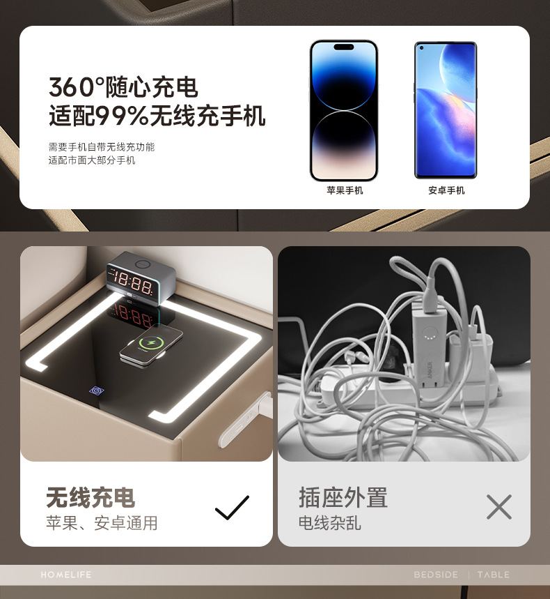 Una caja fuerte inteligente de cabezal de cama en 2025 nueva caja fuerte de cabezal de cama de carga inalámbrica multifuncional avanzada