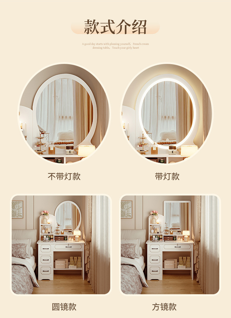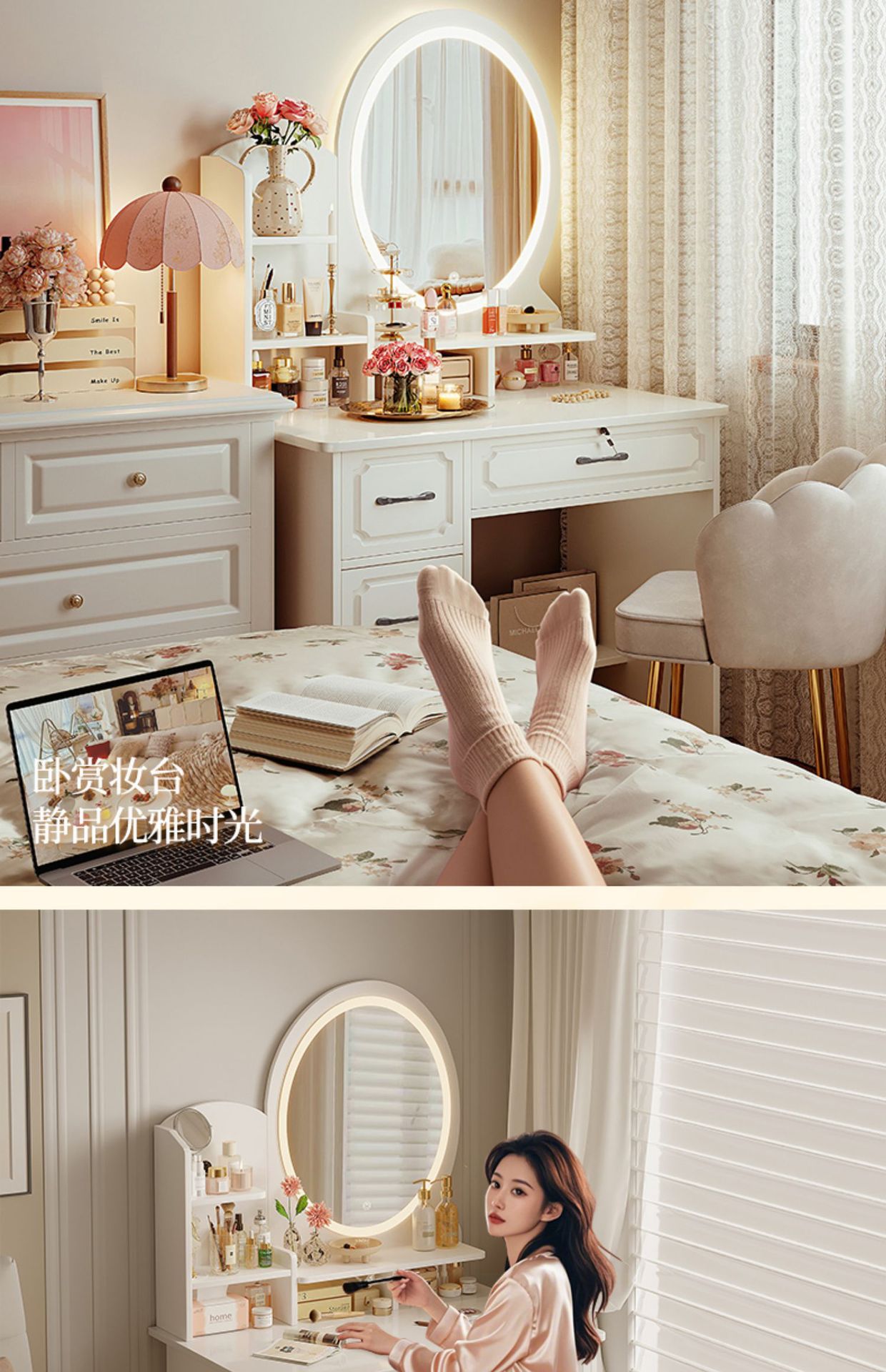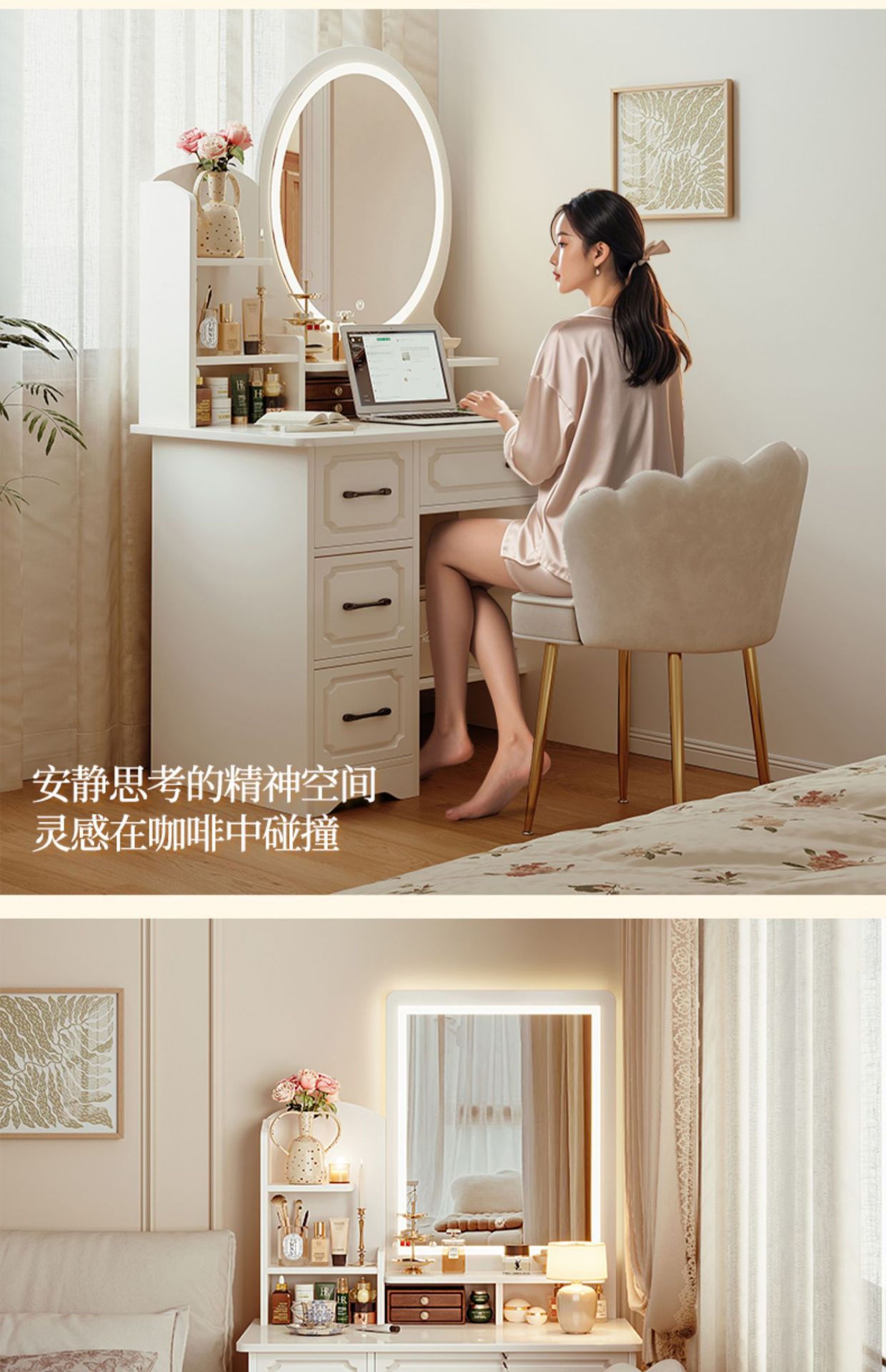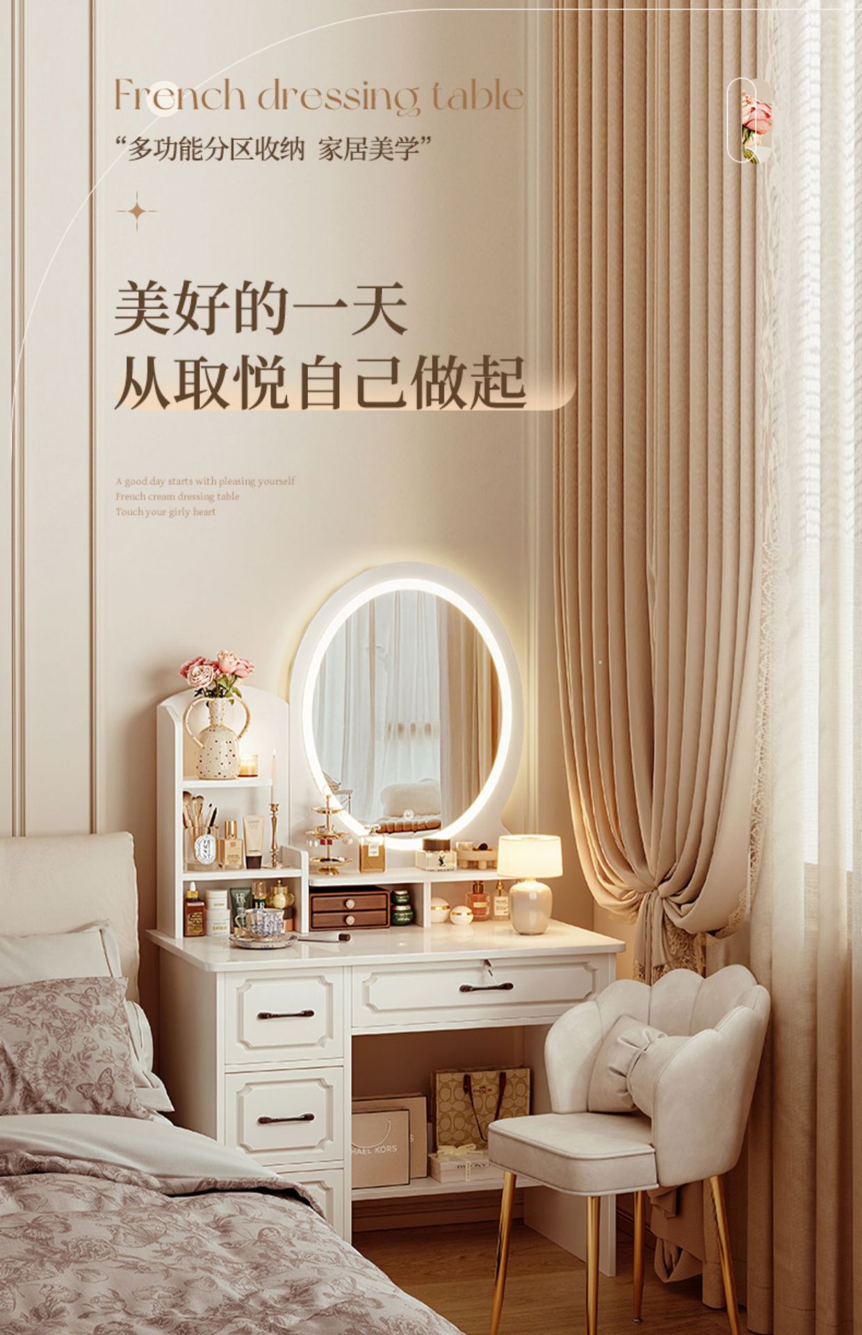 Comodador moderno dormitorio simple dormitorio principal mesa de maquillaje 2025 nuevo estilo francés mesa de maquillaje espejo gabinete pequeño tipo de casa