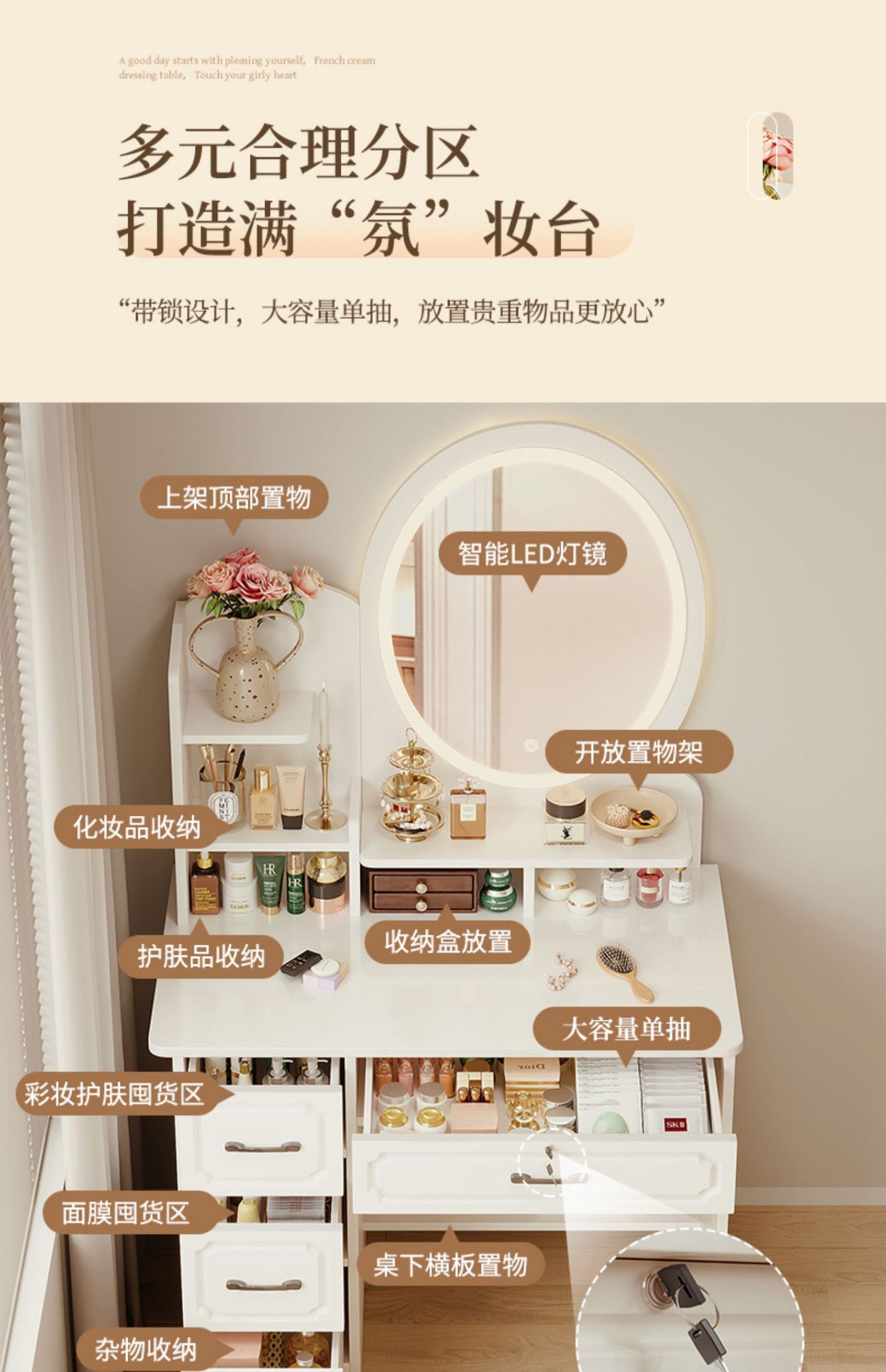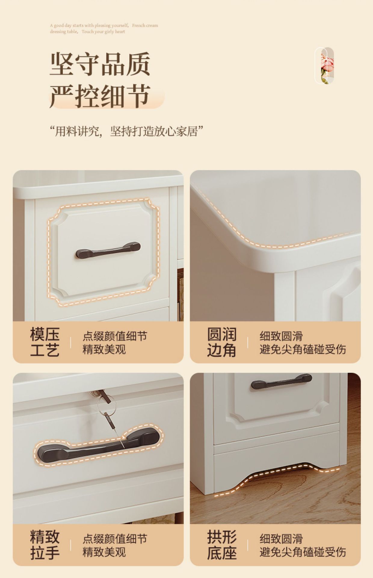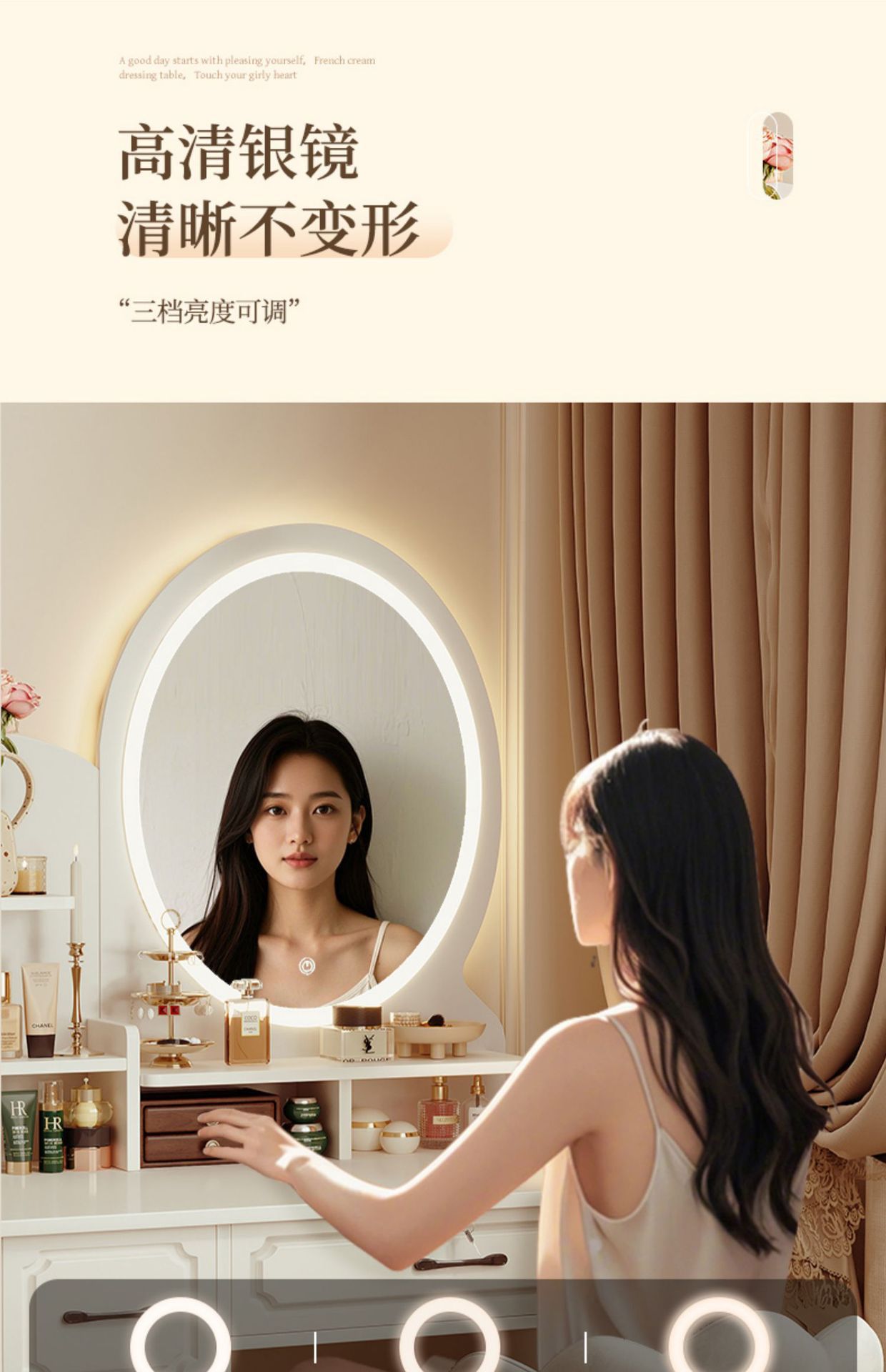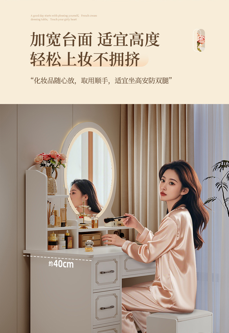 Comodador moderno dormitorio simple dormitorio principal mesa de maquillaje 2025 nuevo estilo francés mesa de maquillaje espejo gabinete pequeño tipo de casa