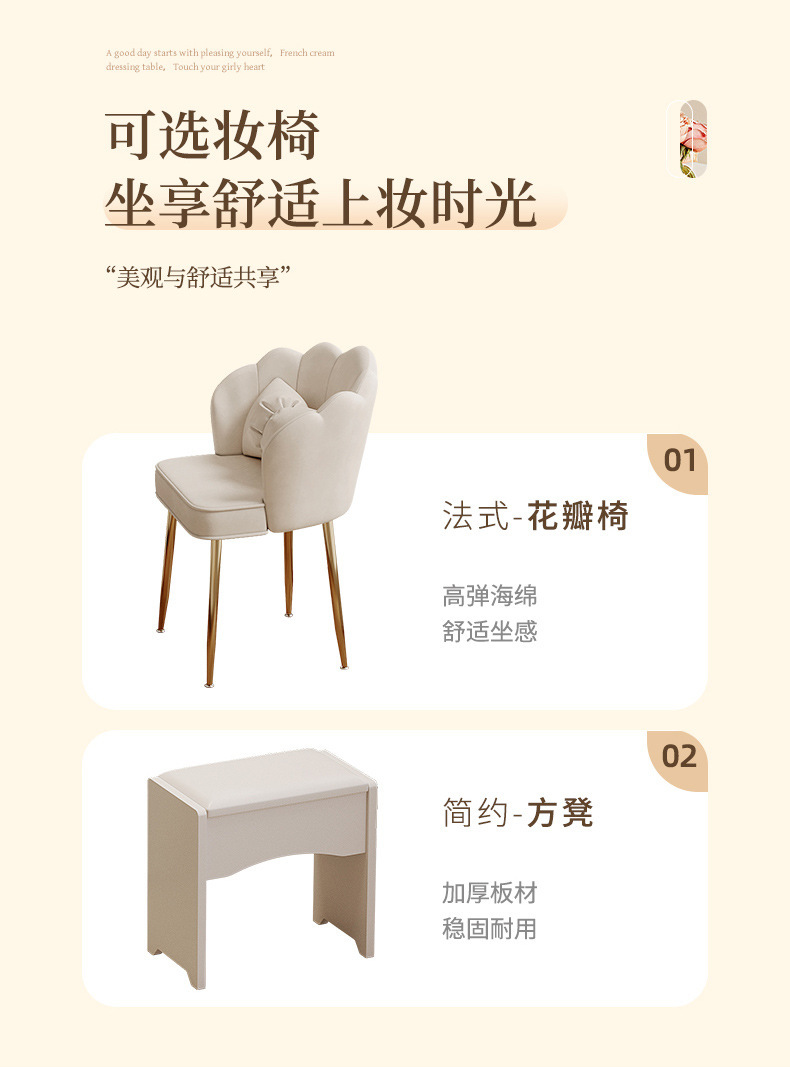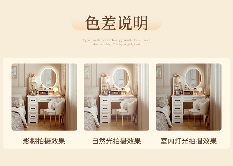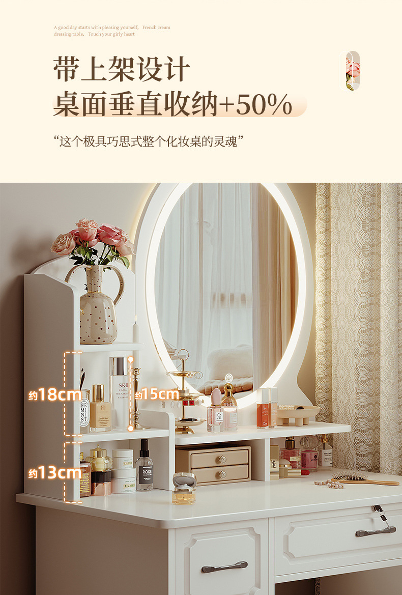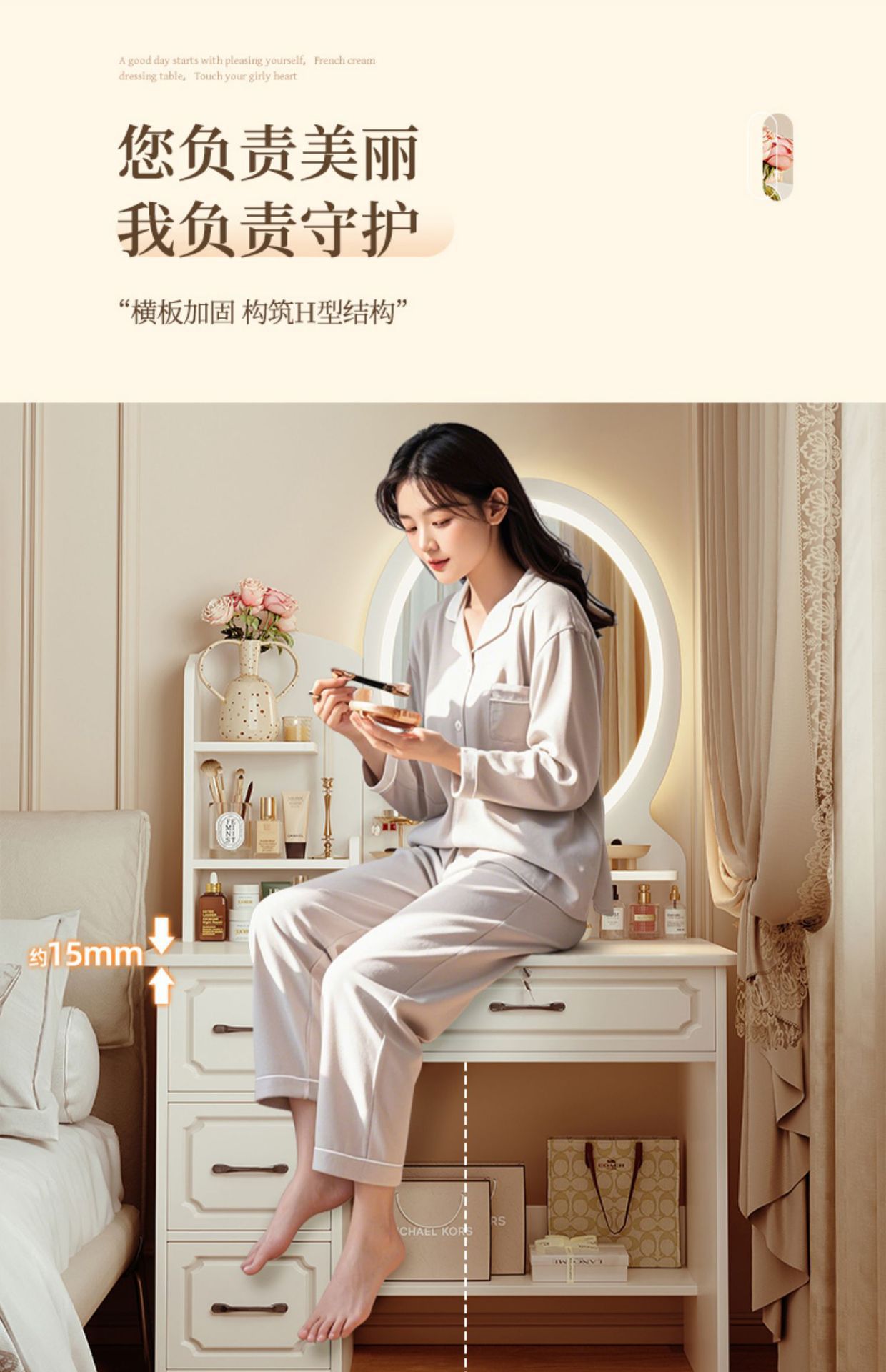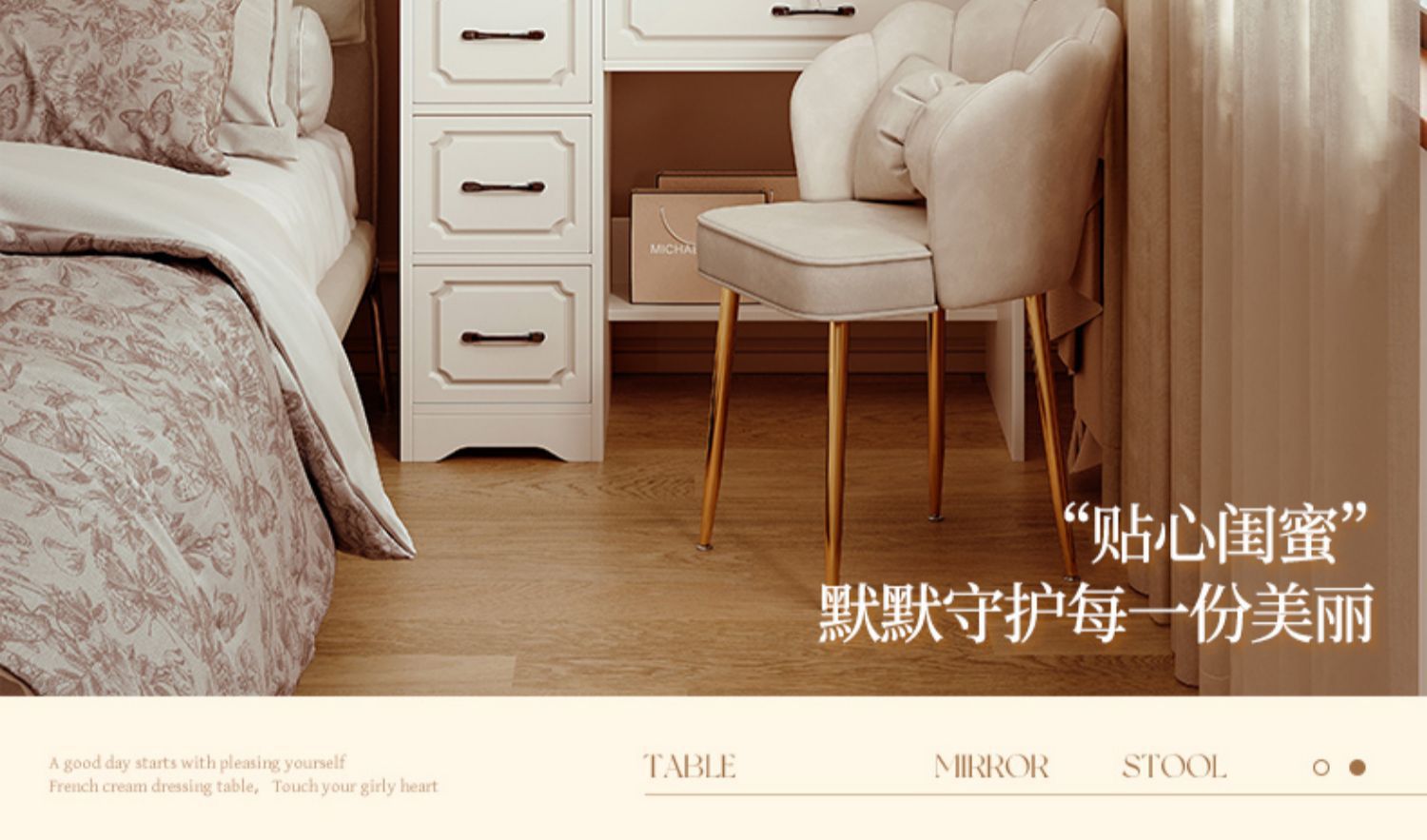 Comodador moderno dormitorio simple dormitorio principal mesa de maquillaje 2025 nuevo estilo francés mesa de maquillaje espejo gabinete pequeño tipo de casa
