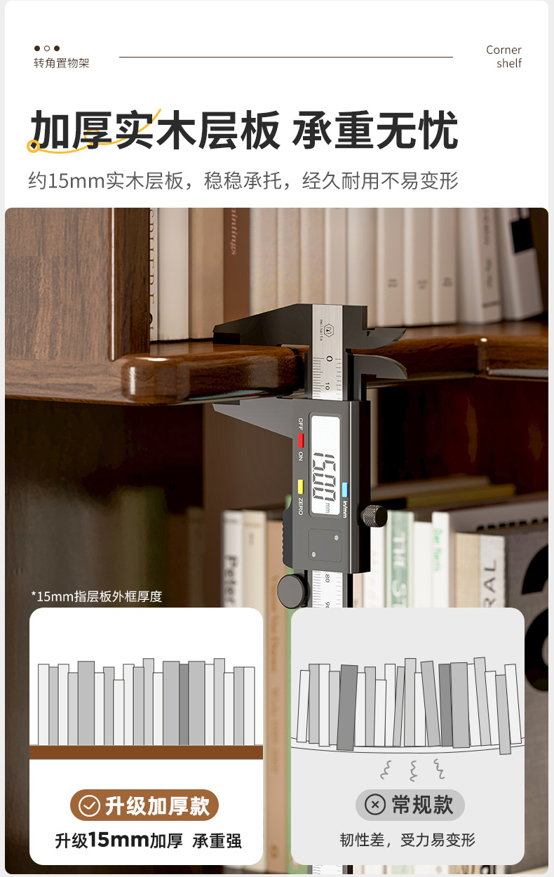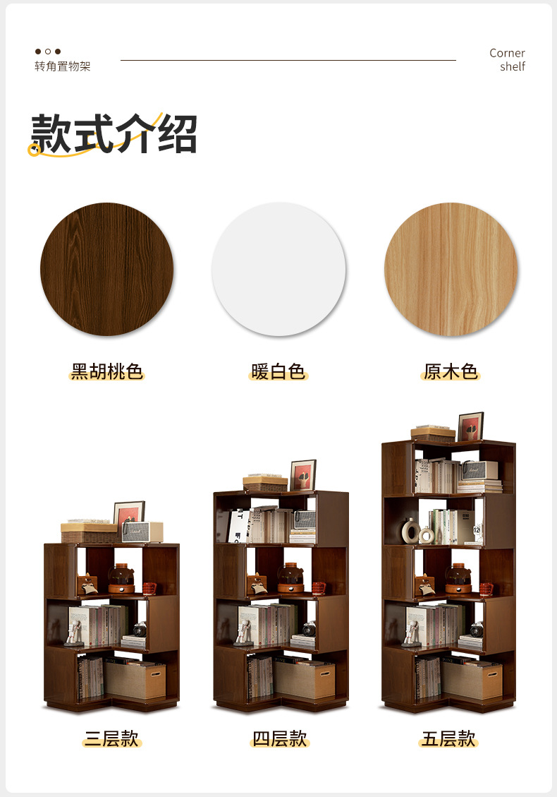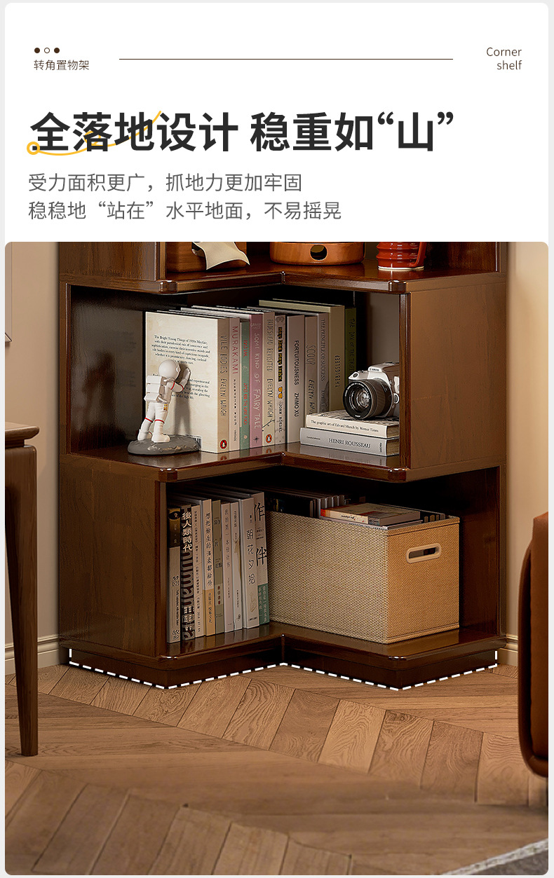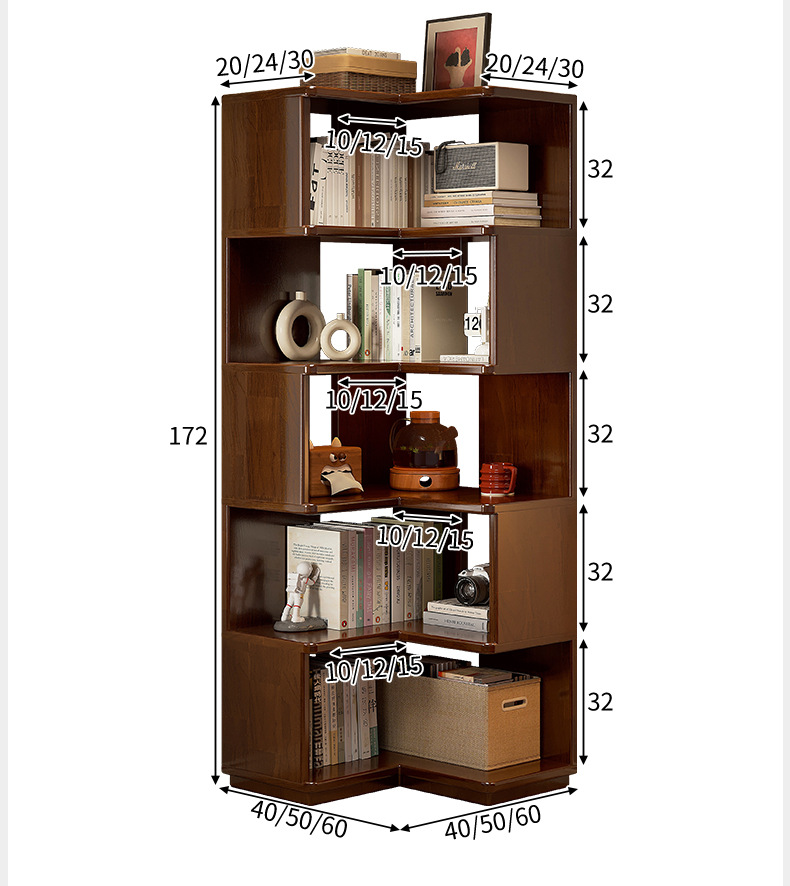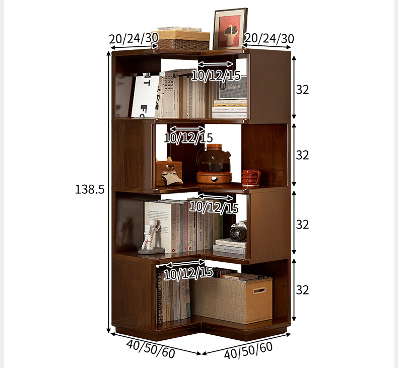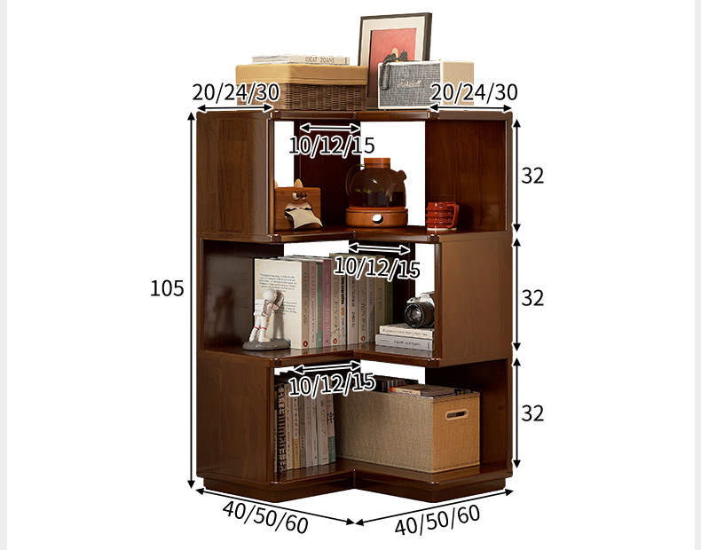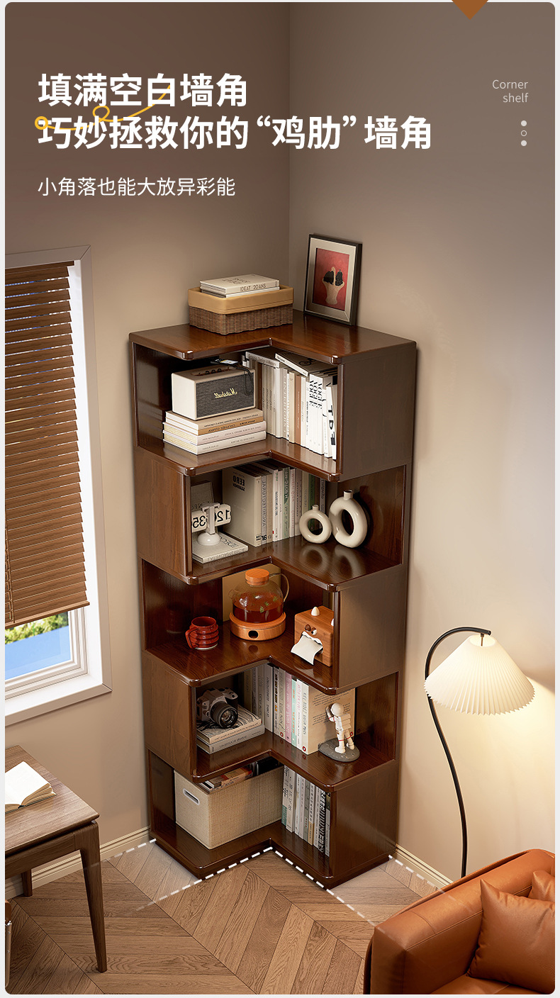 Estante de esquina de madera sólida estante de piso estante de estante