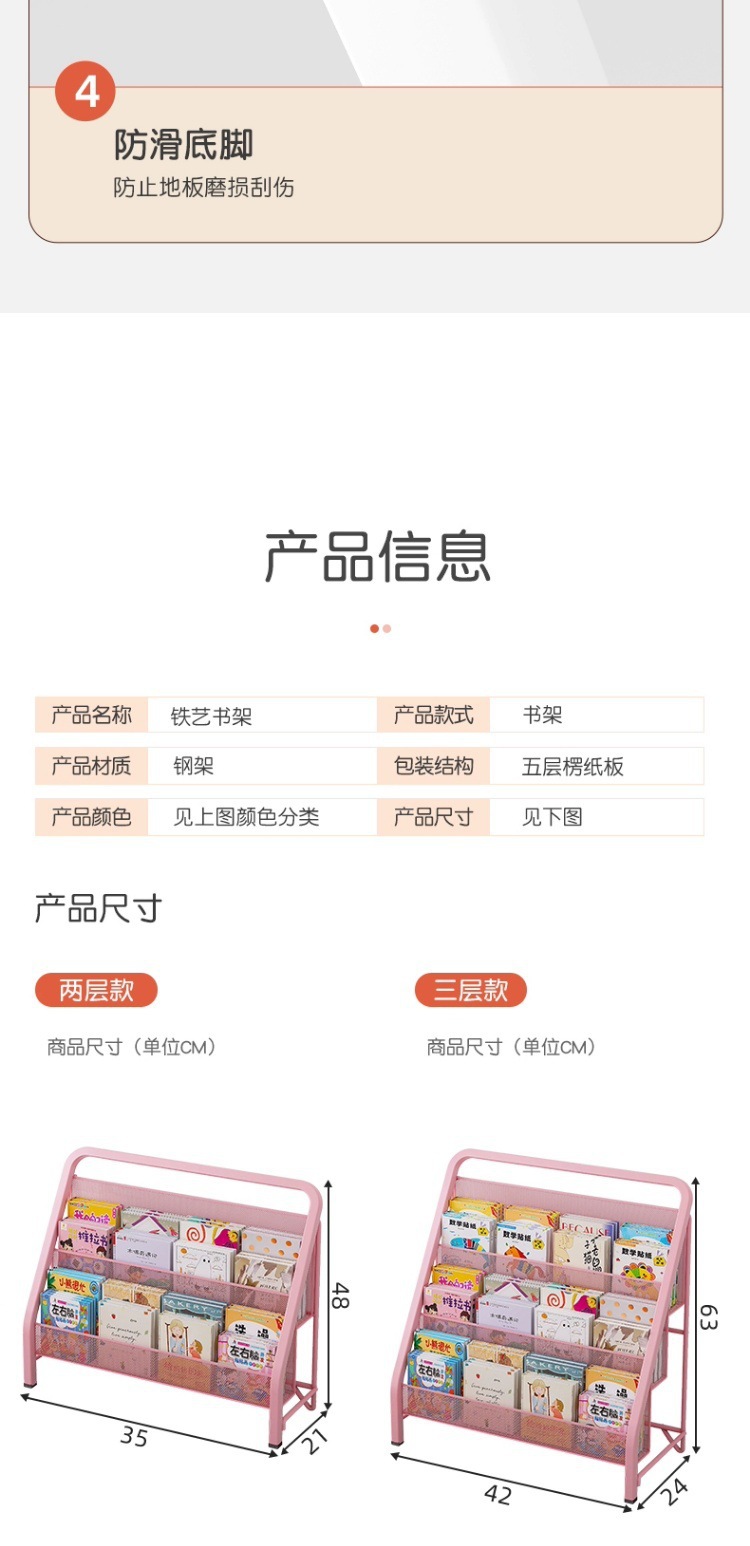 Estante de libros para niños estante de exposición de almacenamiento multicapa de hierro forjado estante de exposición de almacenamiento multicapa de estante de libros para niños