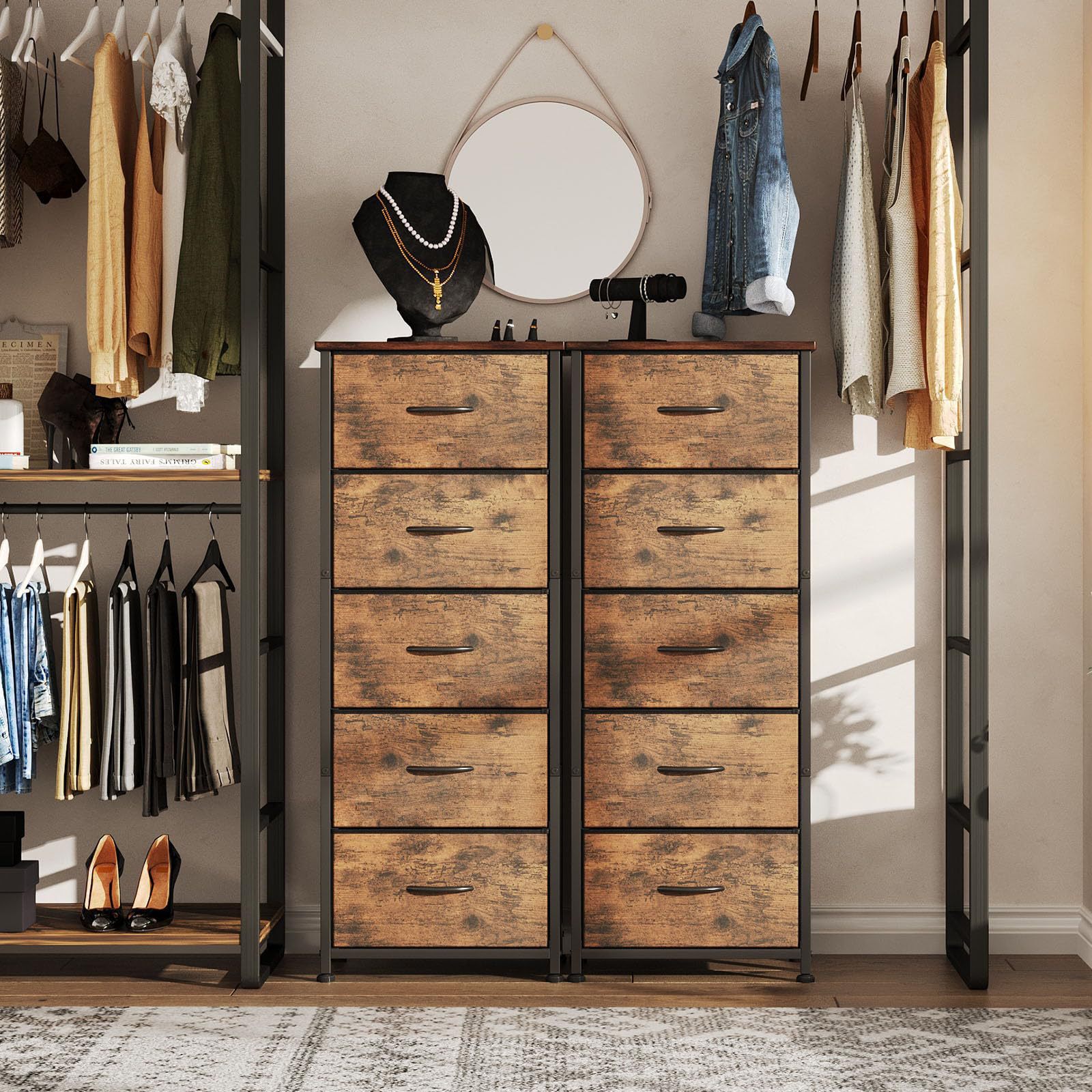 Sala de estar gabinete de almacenamiento de piso a techo contra la pared gabinete de cajón no tejido de dormitorio de almacenamiento de cinco bombeados de altura a prueba de polvo