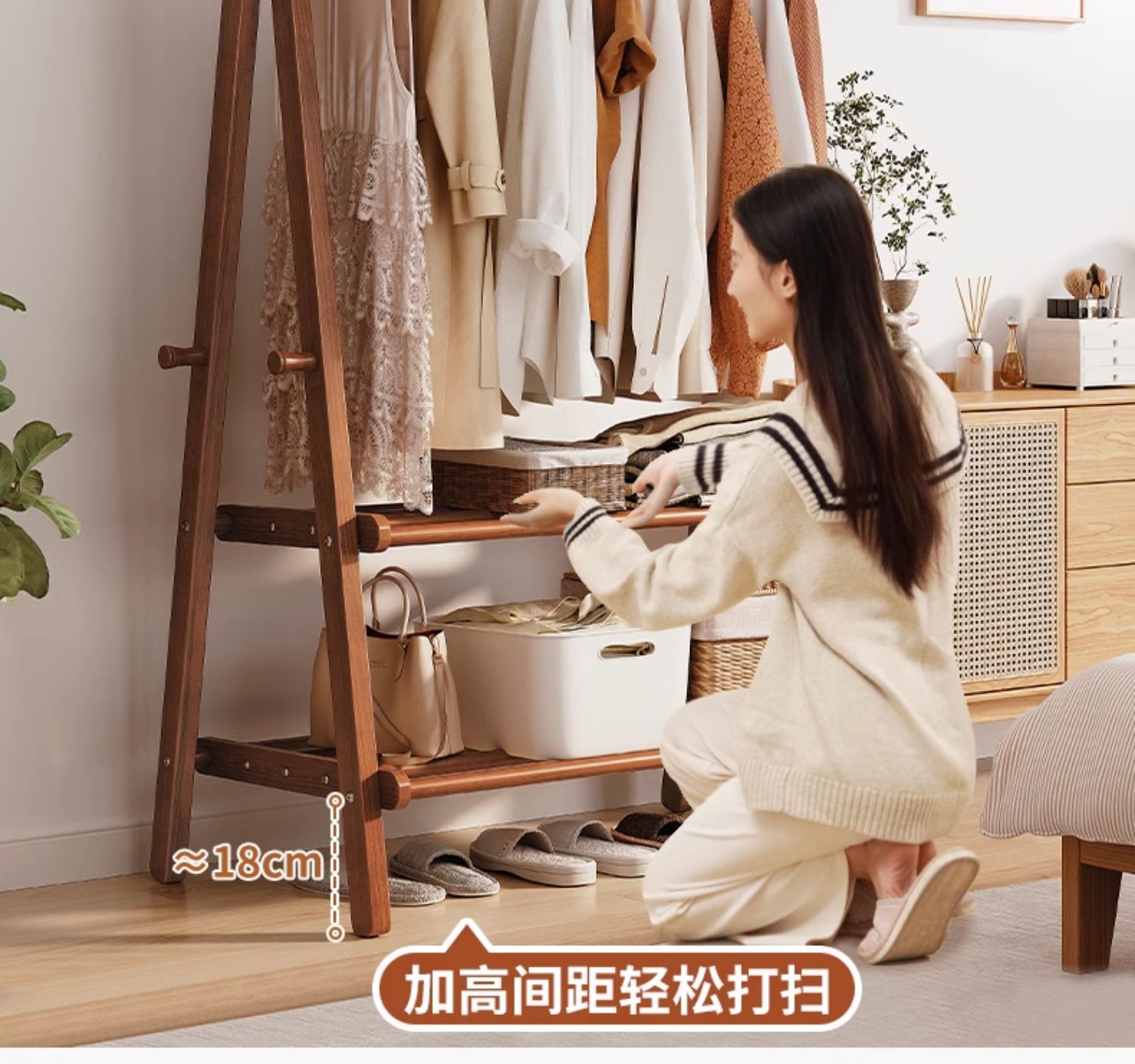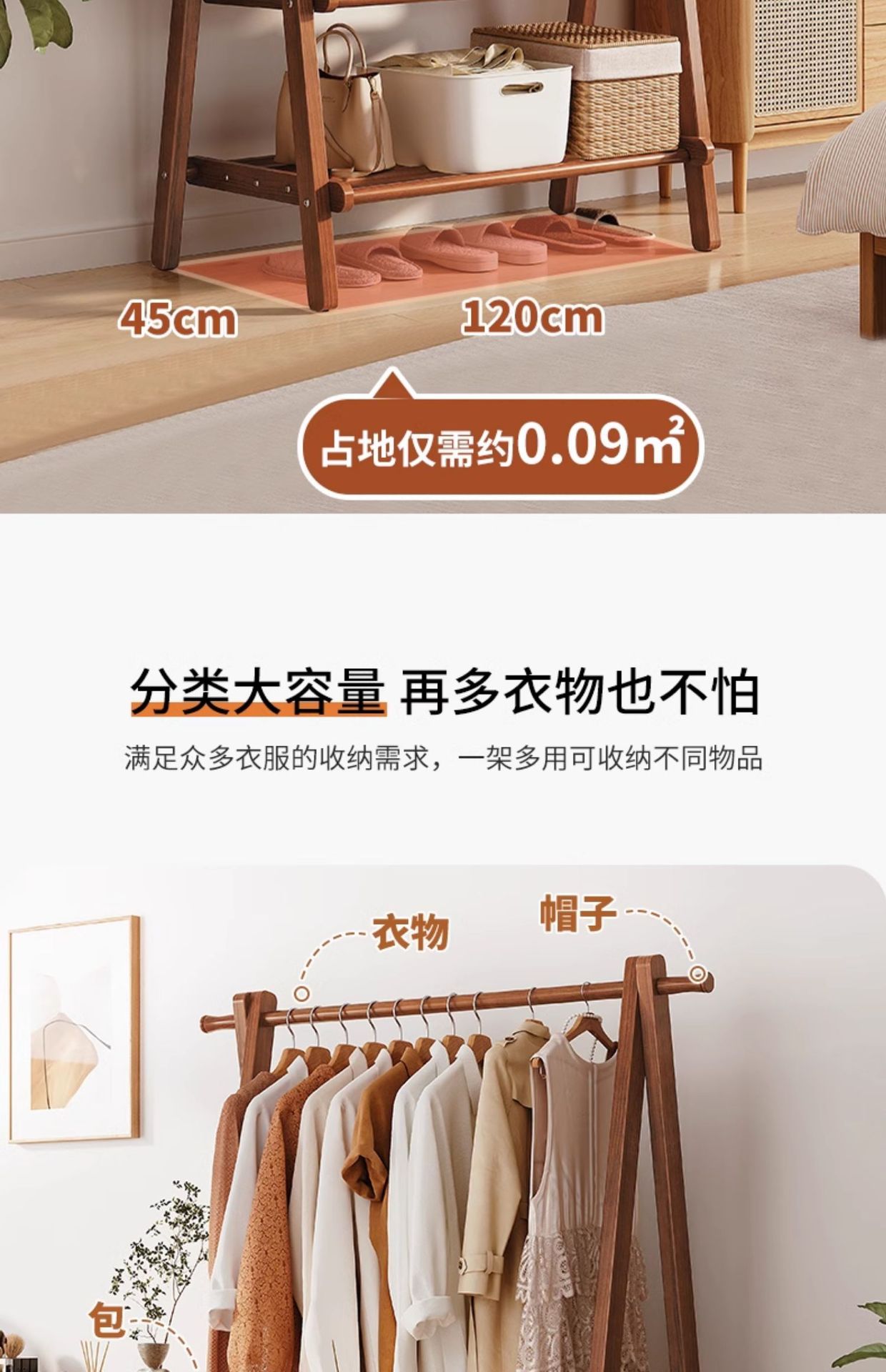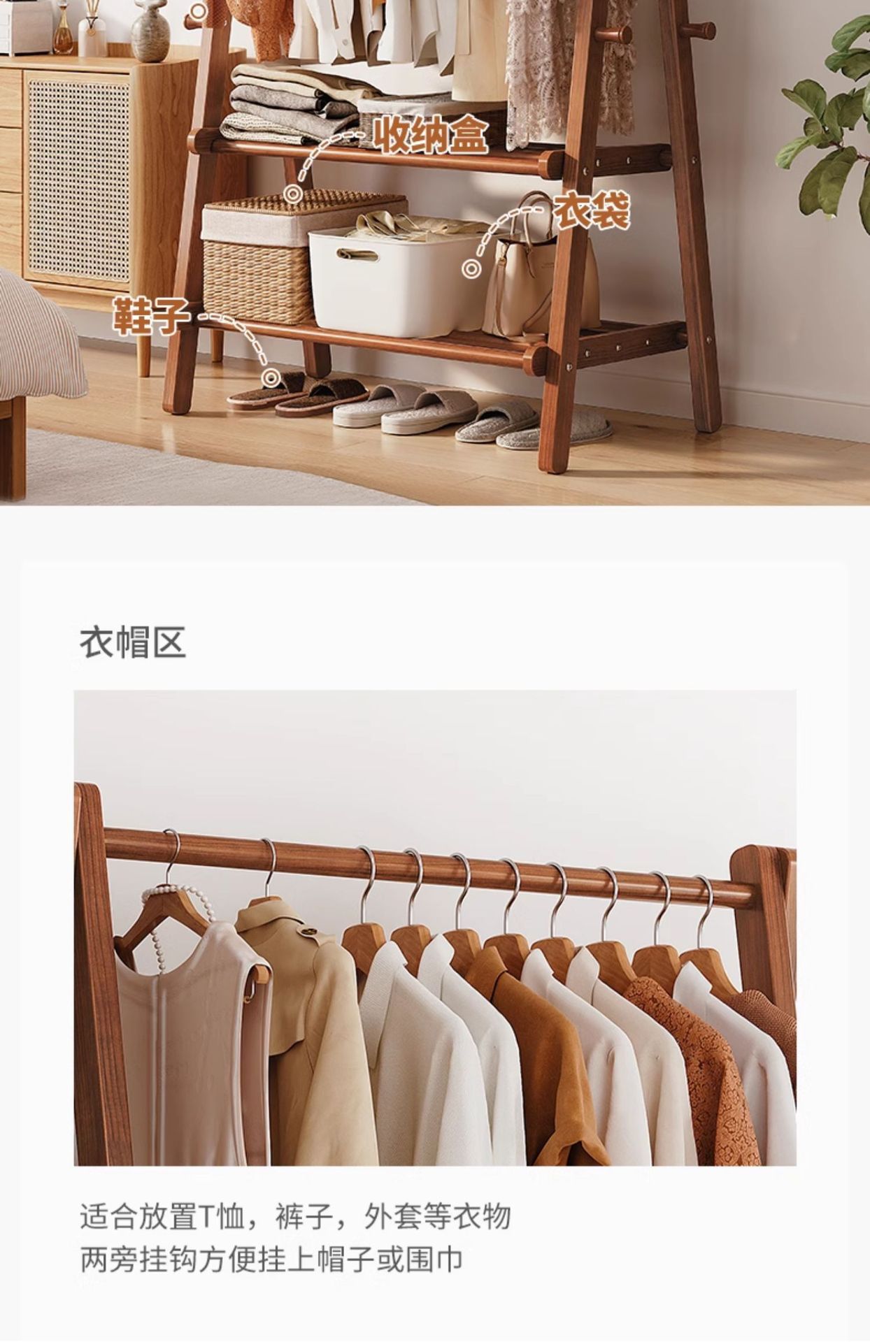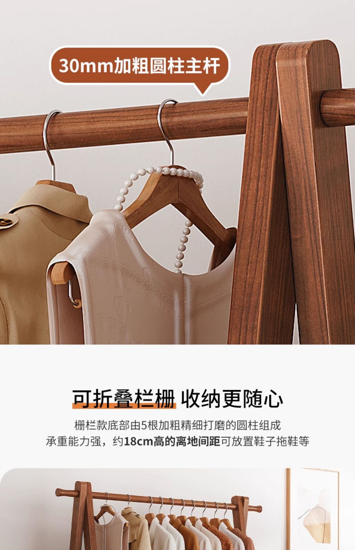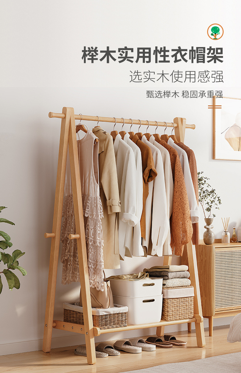 Percha de madera sólida piso percha de ropa doméstica percha de sombrero interior simple percha de ropa percha de ropa percha de secado