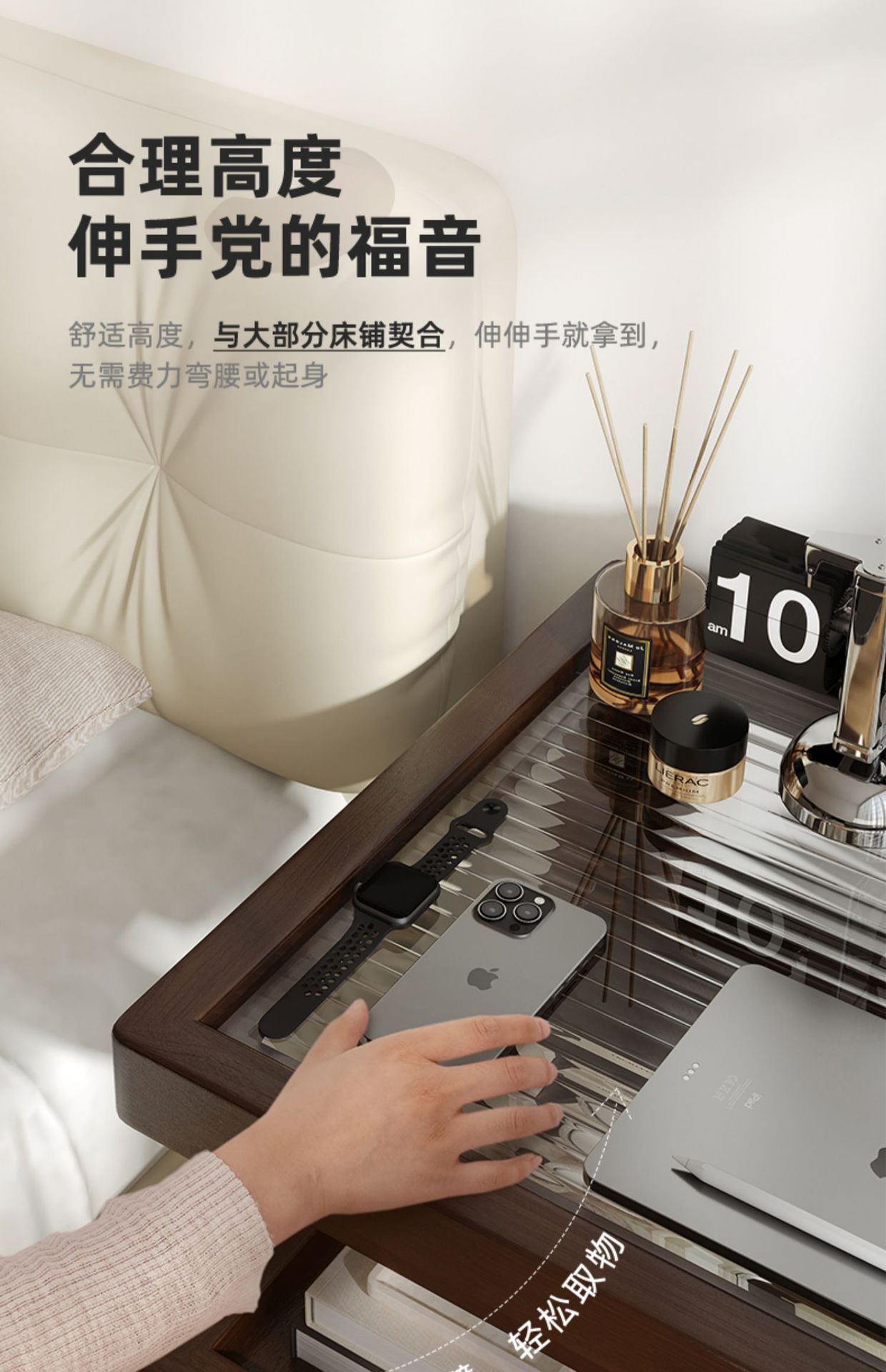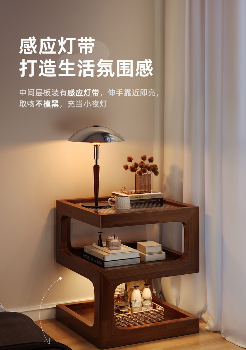 Substitución de la meseta de cama de madera maciza simple moderna pequeña casera armario de dormitorio con iluminación estante de cama creativo