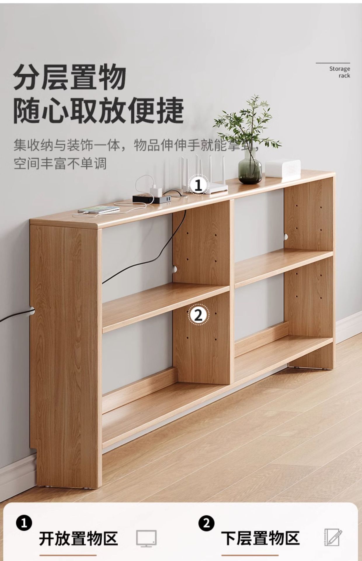 Estante de pared de televisión contra la pared todo el gabinete estrecho de madera sólida debajo del proyector para colocar la caja de decodificación del router estante largo
