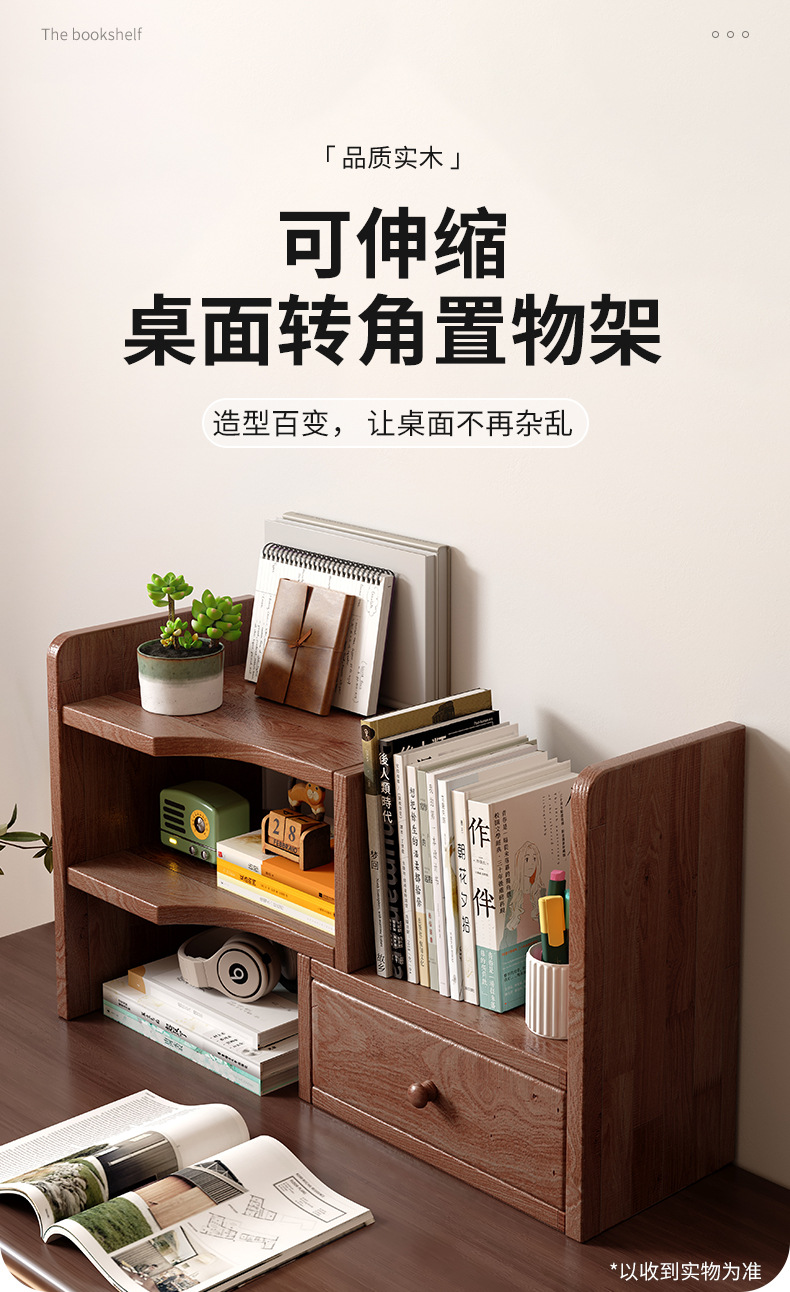 Estante de escritorio de madera sólida estante de almacenamiento retráctil armario de color nuez pequeño estante de escritorio transformación de la estación de esquina
