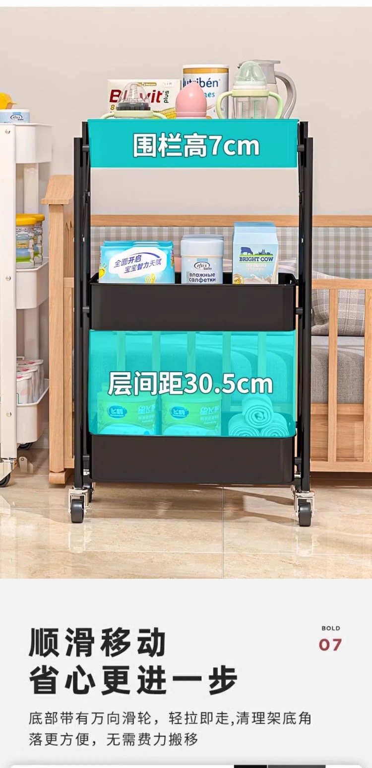 Sofá de carro de hierro forjado multifuncional plegable multicapa móvil estante de cabecera de la cama para sala de estar