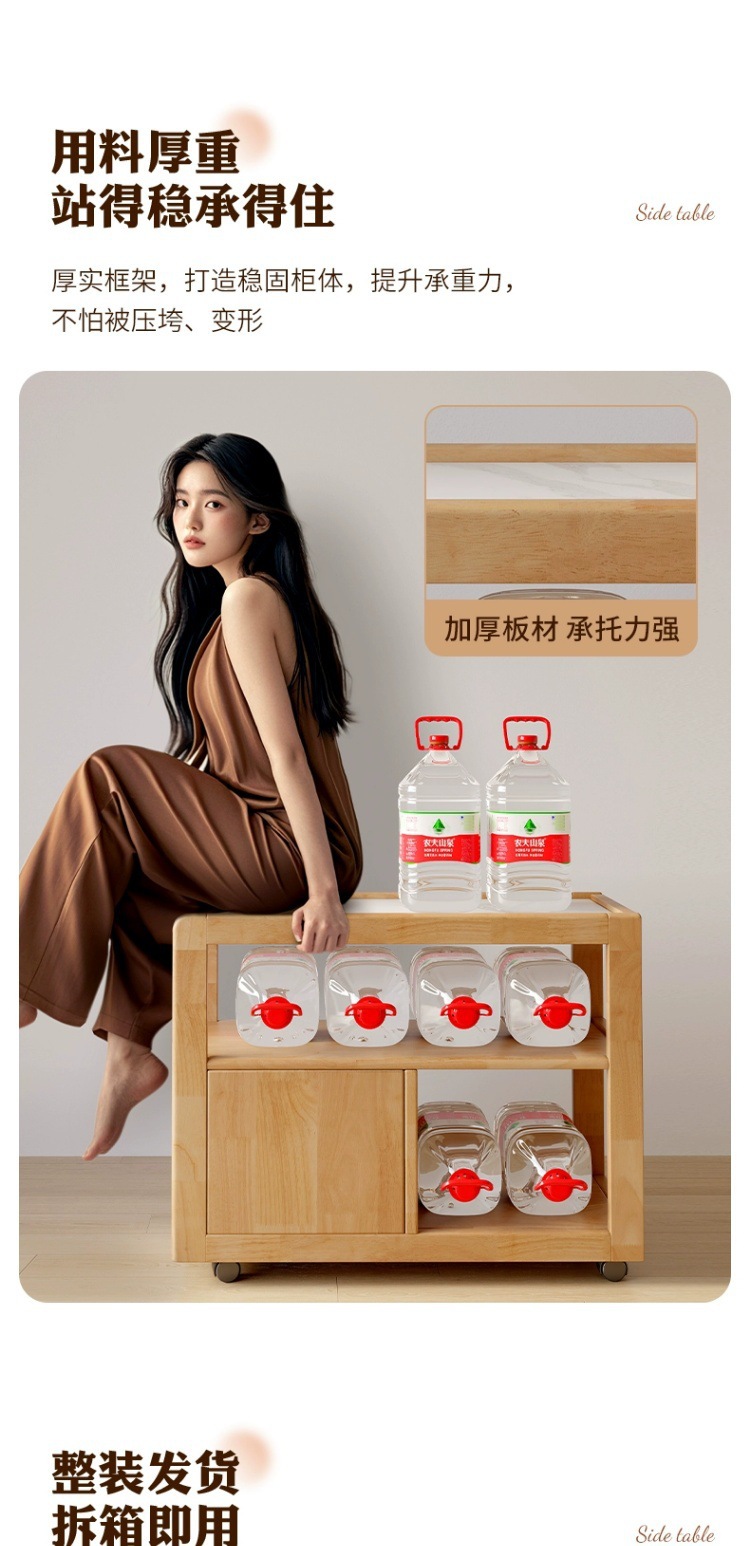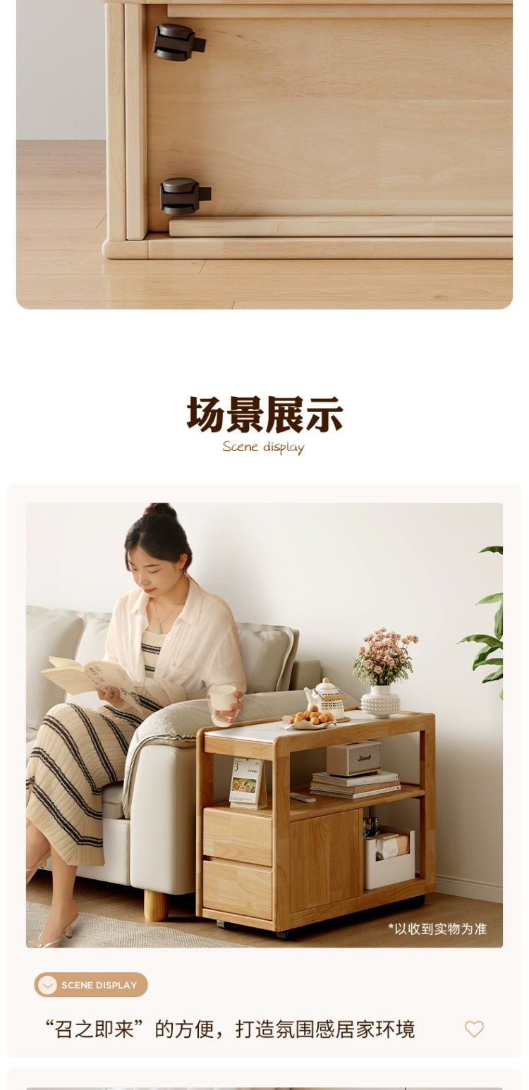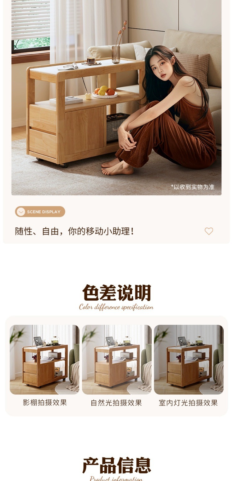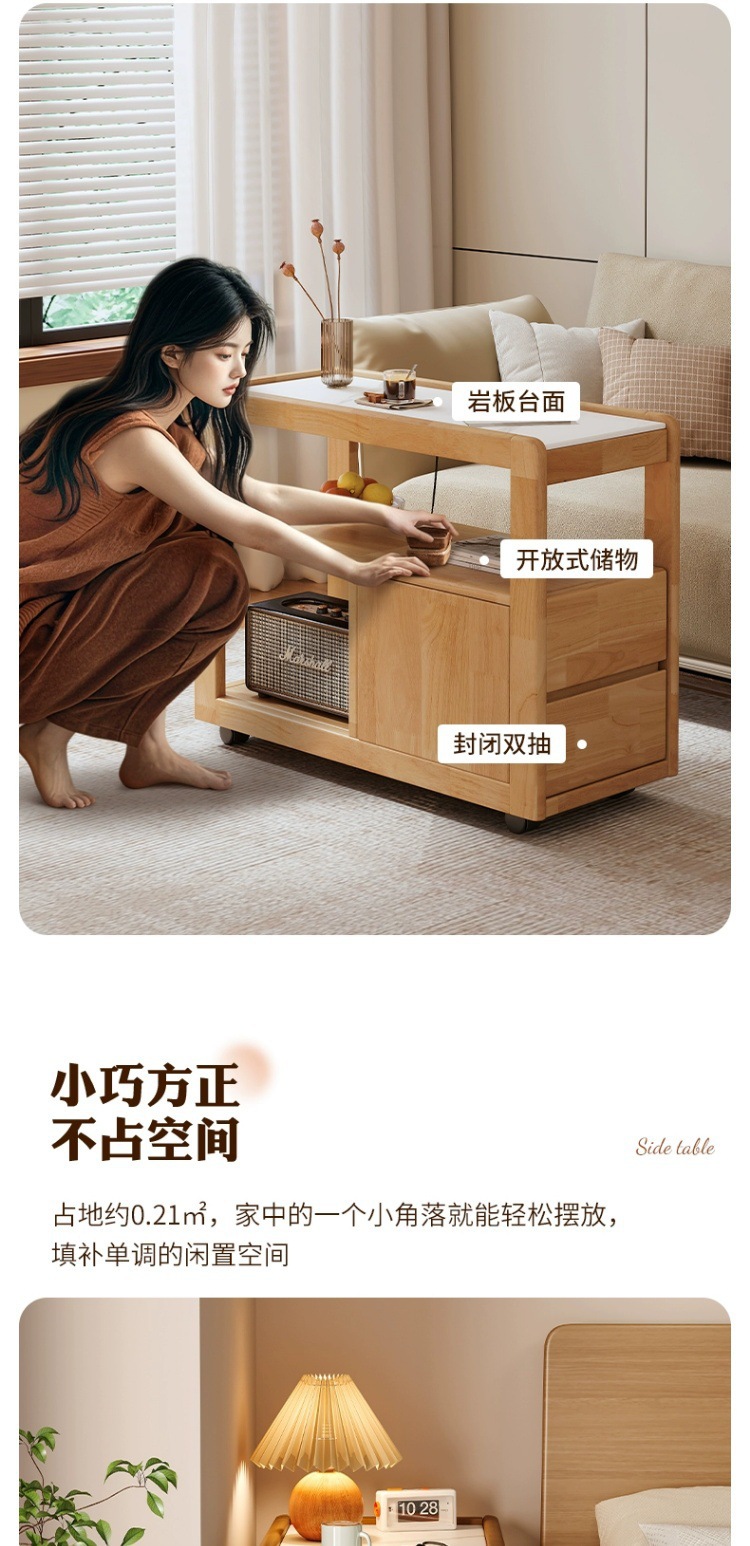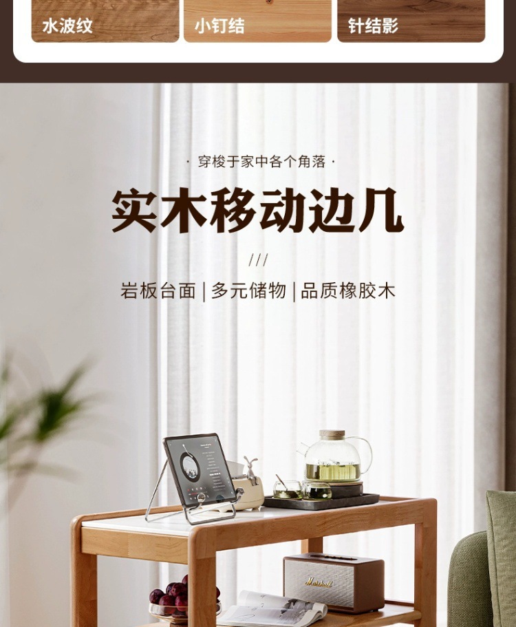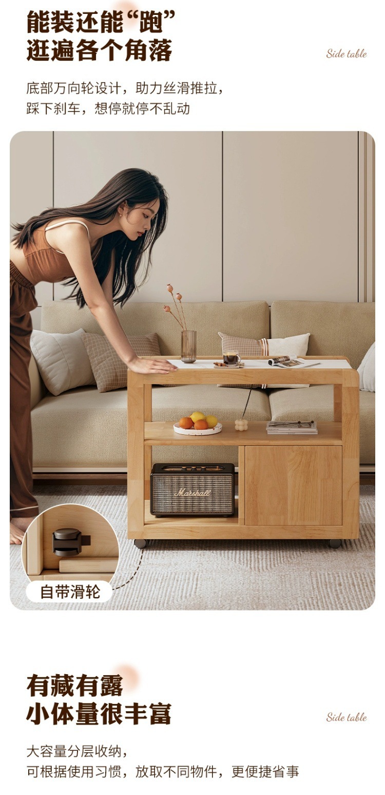 Sofá de madera maciza gabinete lateral tablero de roca lateral rueda nórdica pequeña sala de estar móvil mesa de té mesa de cabezal de cama
