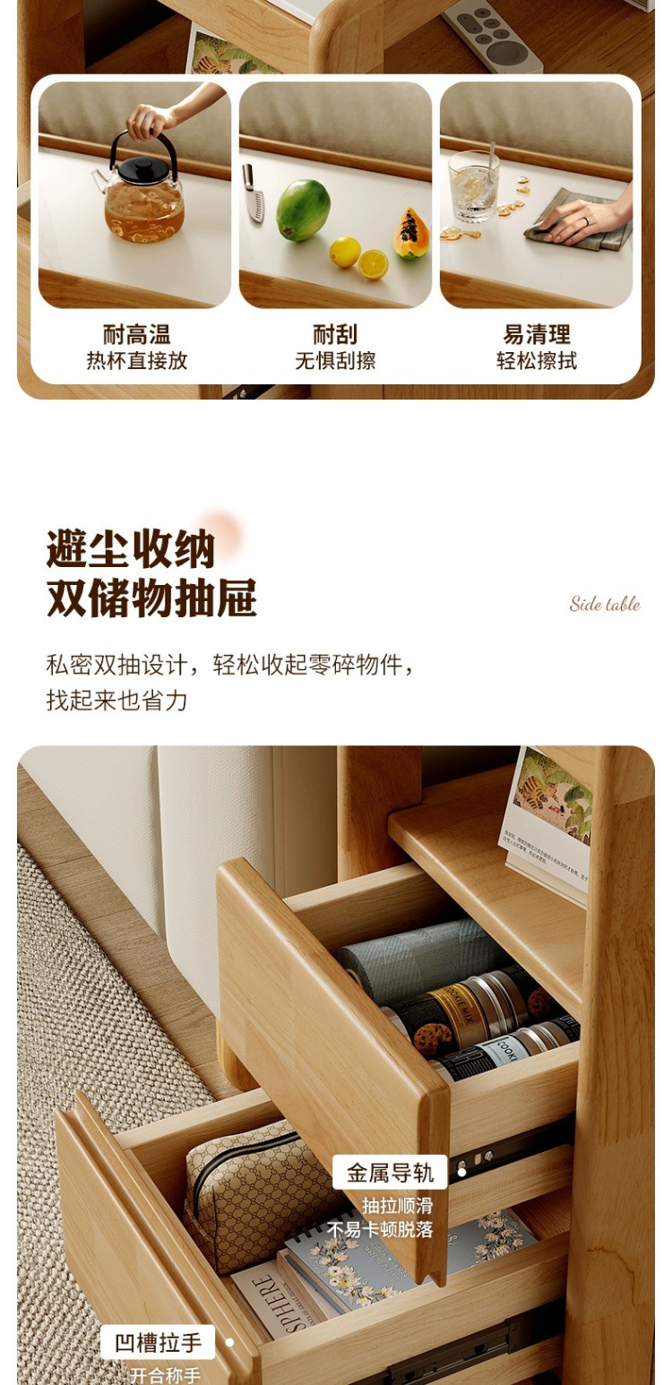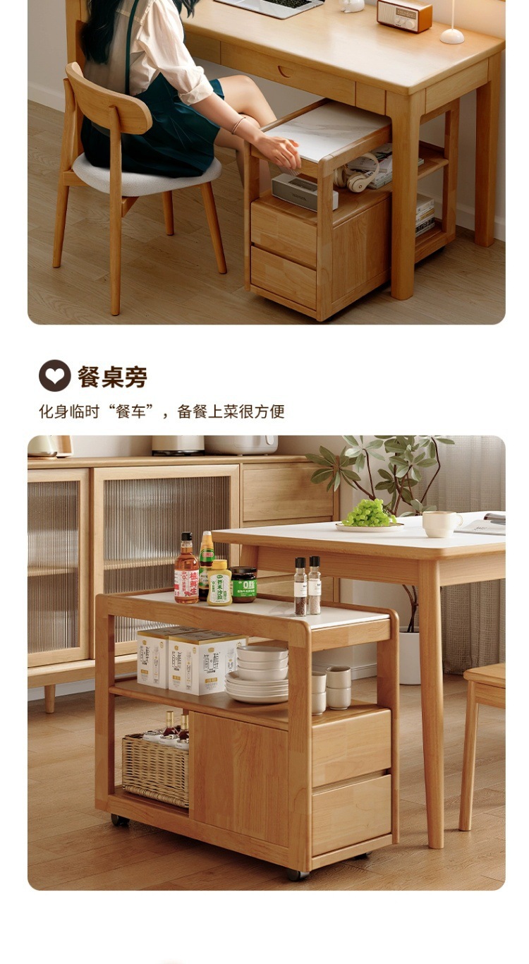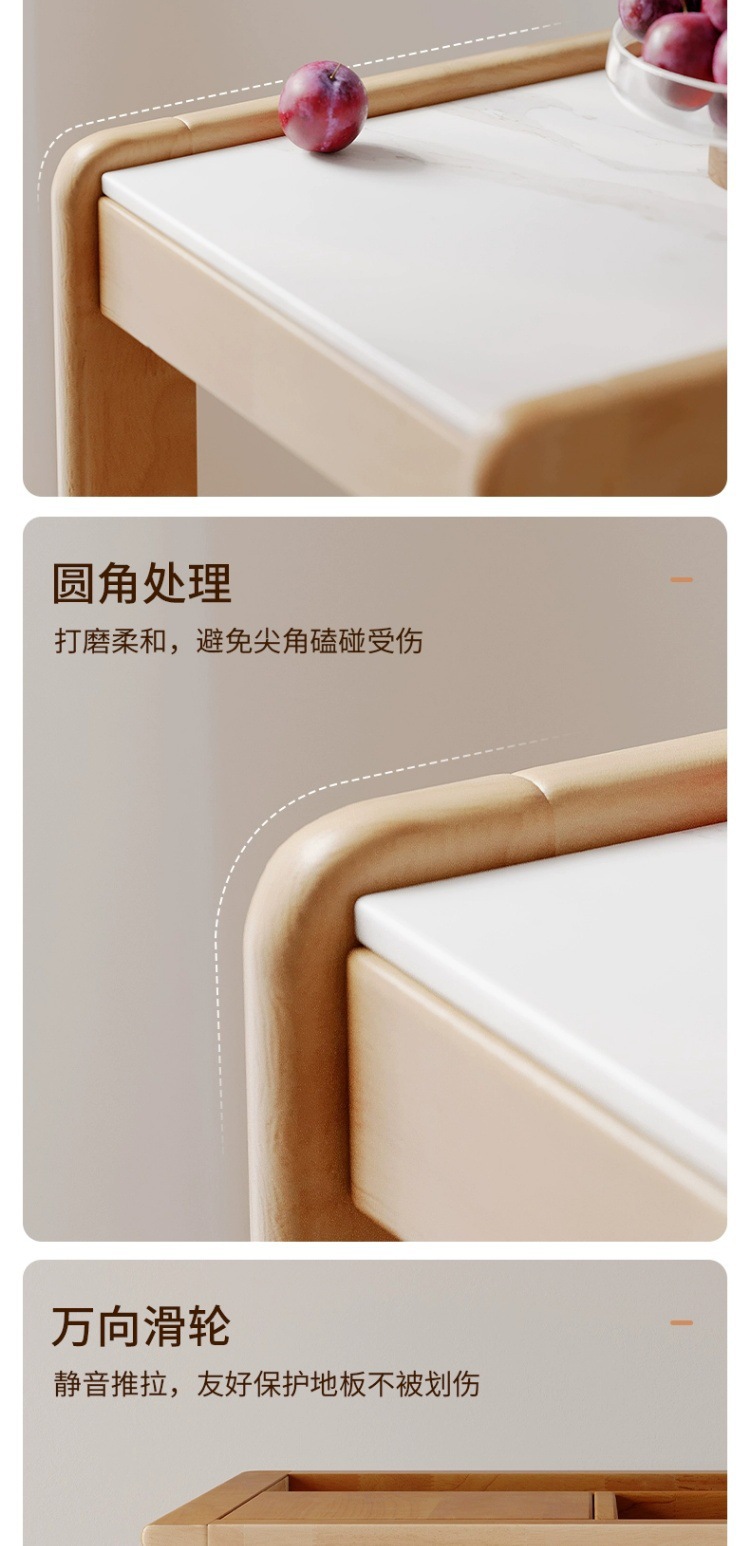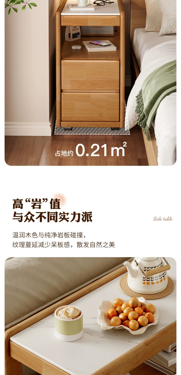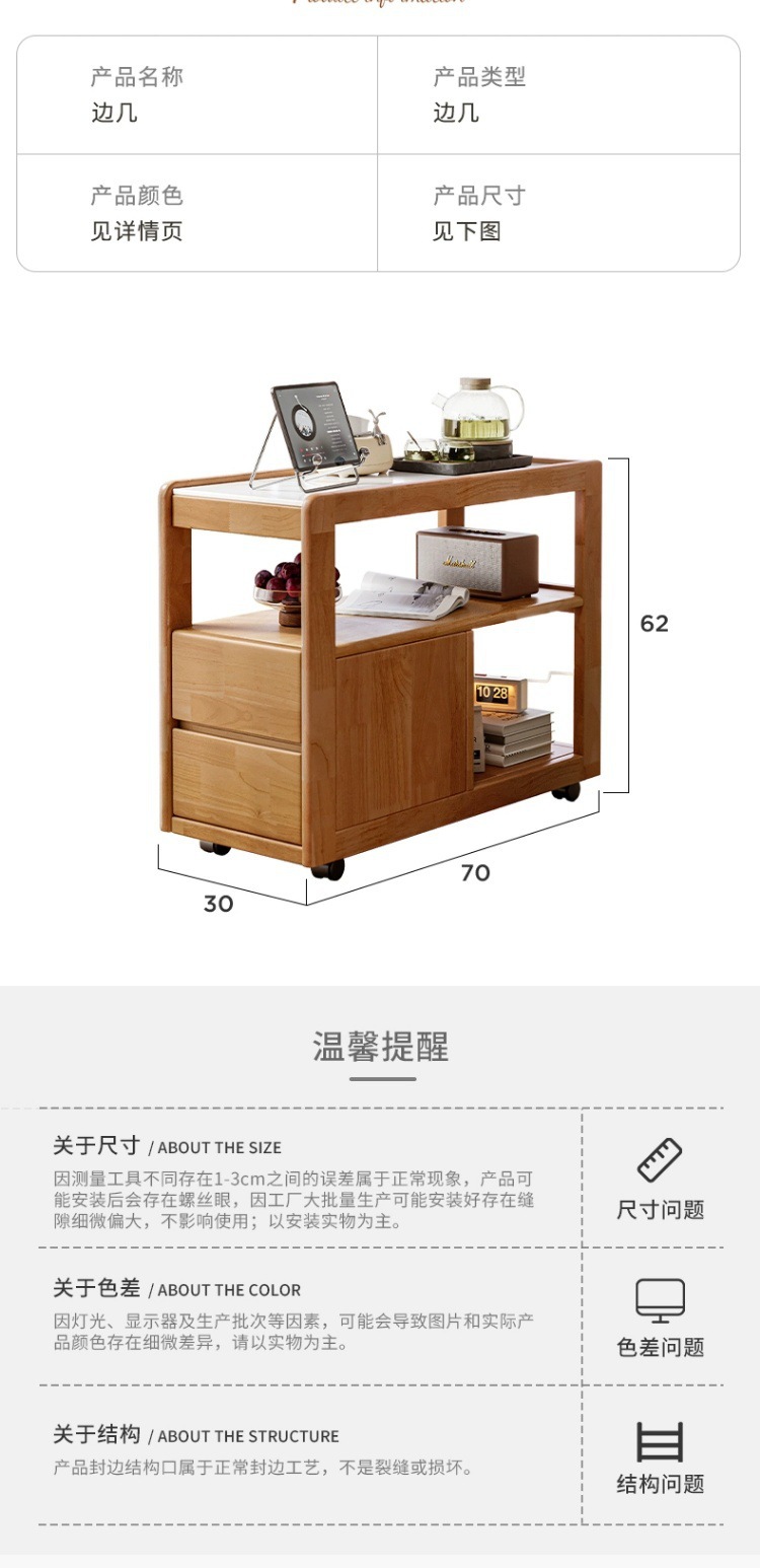Sofá de madera maciza gabinete lateral tablero de roca lateral rueda nórdica pequeña sala de estar móvil mesa de té mesa de cabezal de cama