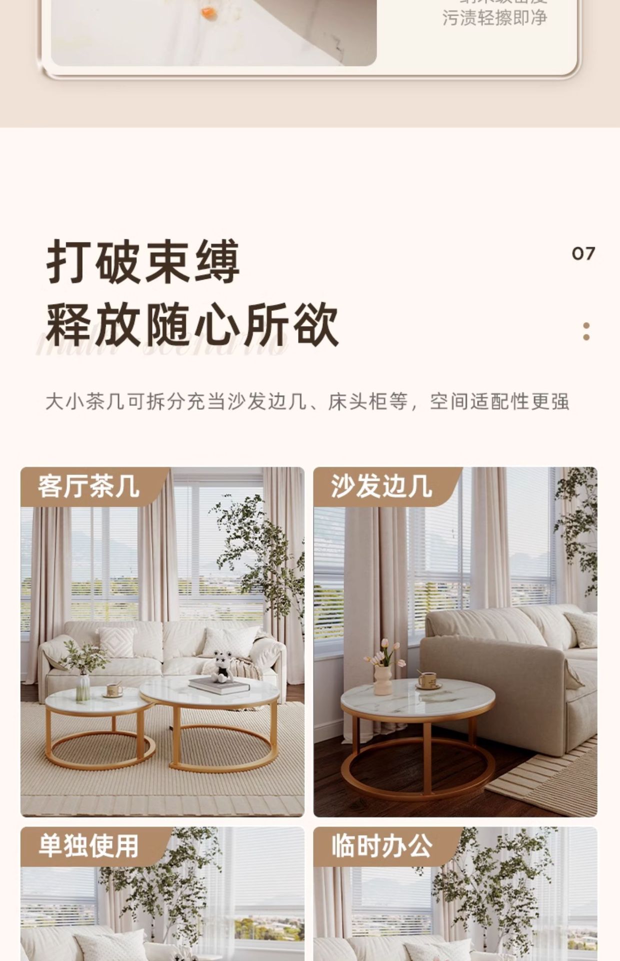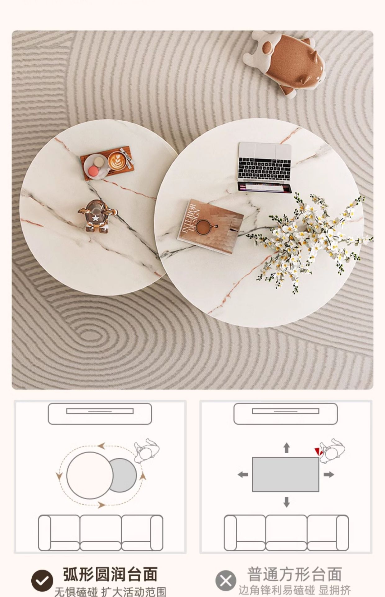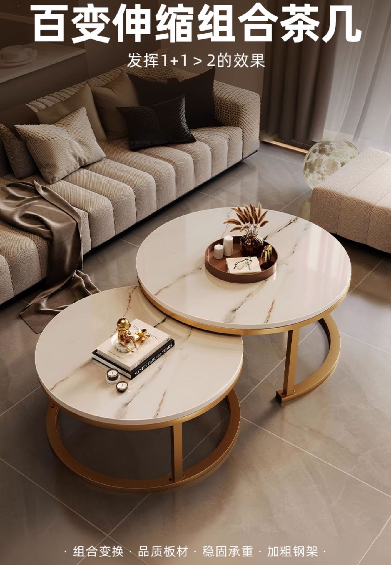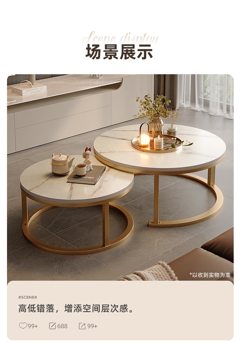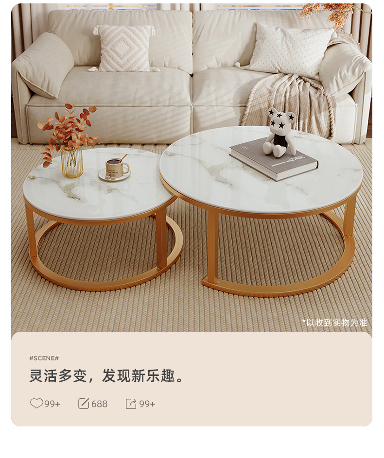 Mesa de té de tabla de roca 2024 nuevo estilo de sala de estar doméstica pequeña casa simple moderna sofá de lujo pequeño mesas de té redondas