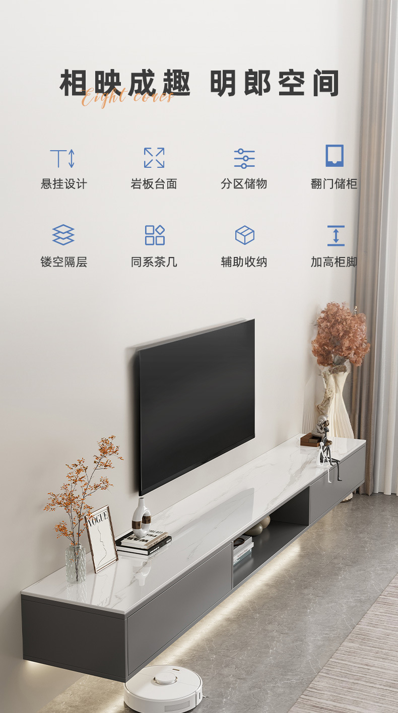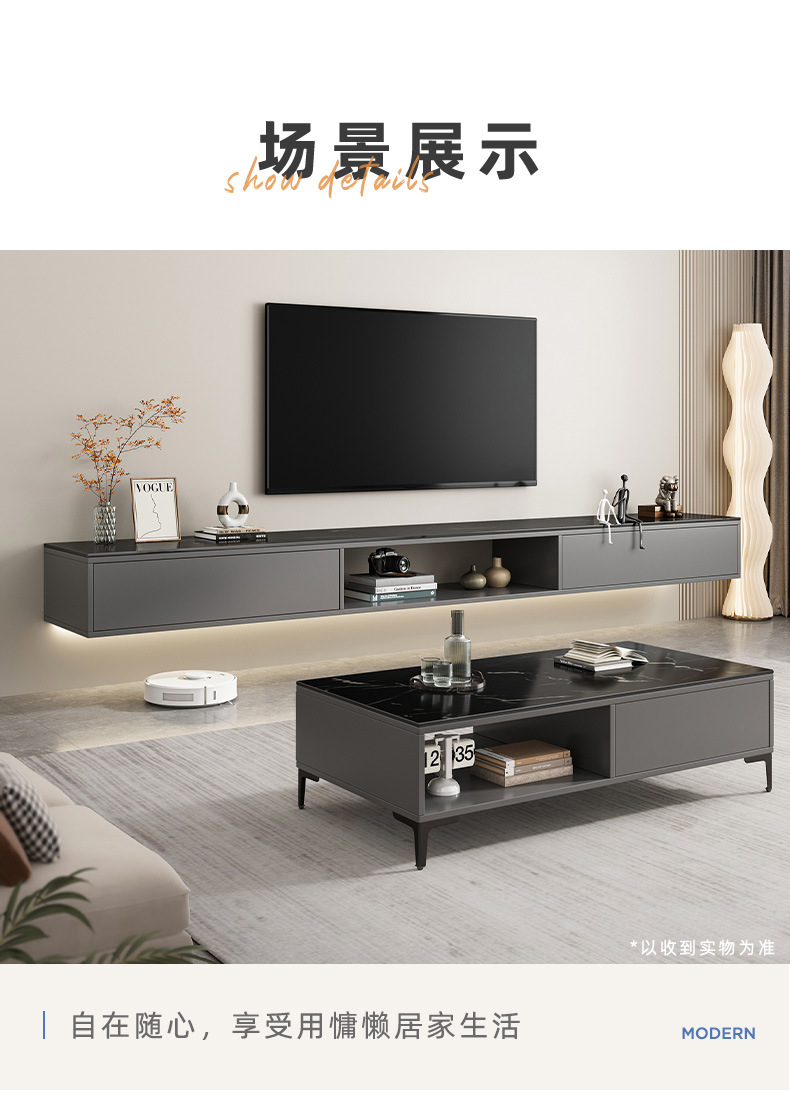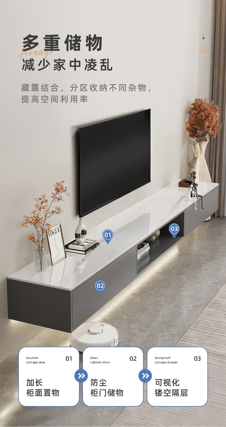 Gabinete de televisión de lujo ligero tablero de roca sala de estar sala de estar casa cabinet de televisión colgante dormitorio pequeño estilo simple y moderno