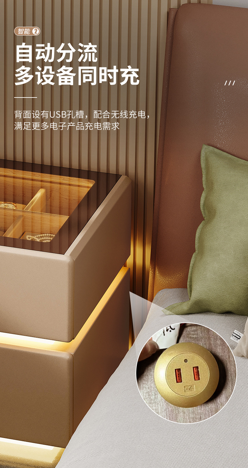 2024 nueva meseta de cabecera lujosa luz de lujo de alto nivel lámpara de cinta de vidrio cama principal precio de alta red armario de almacenamiento