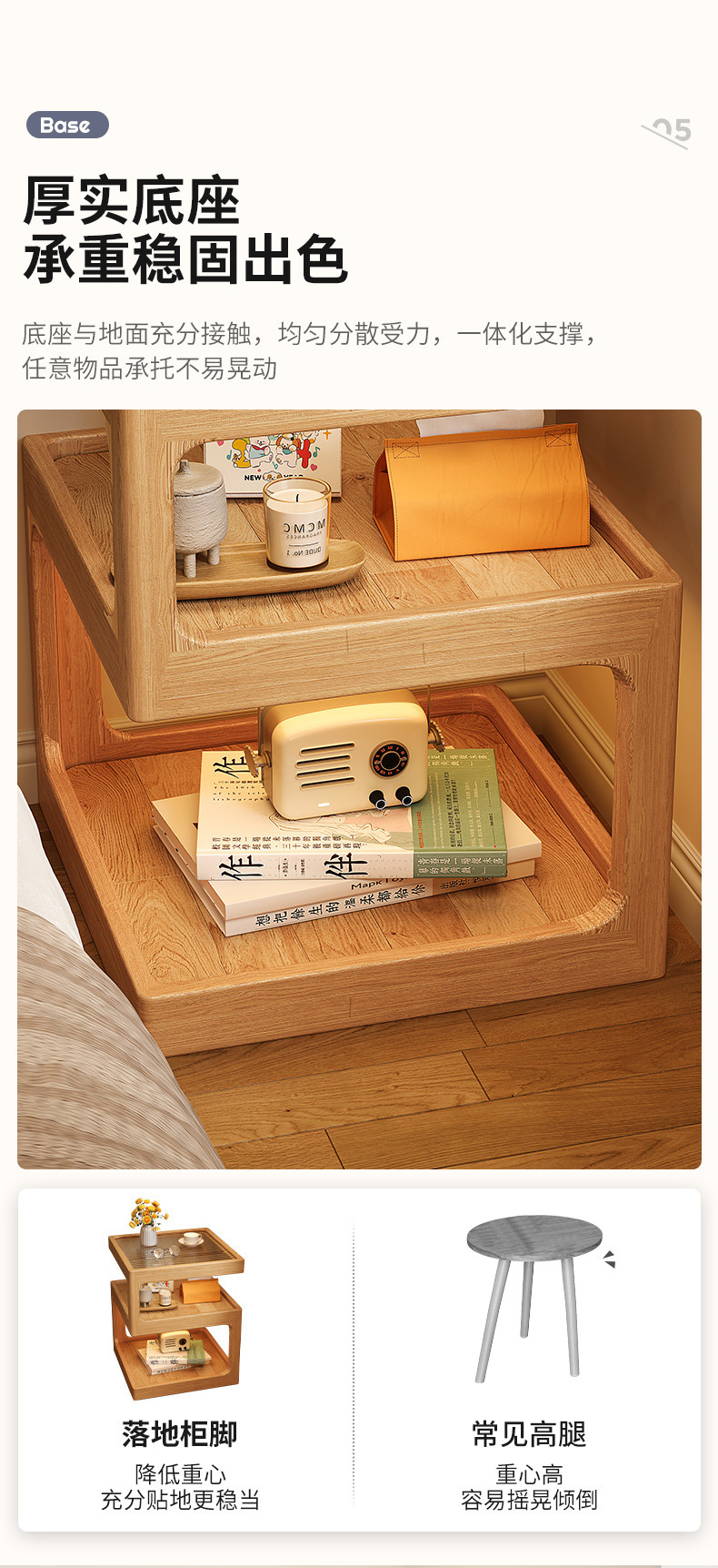 Mesa de cabecera de madera maciza viento de madera pequeña casa dormitorio lado creativo 2025 nuevo gabinete de cabecera mesa muy estrecho gabinete