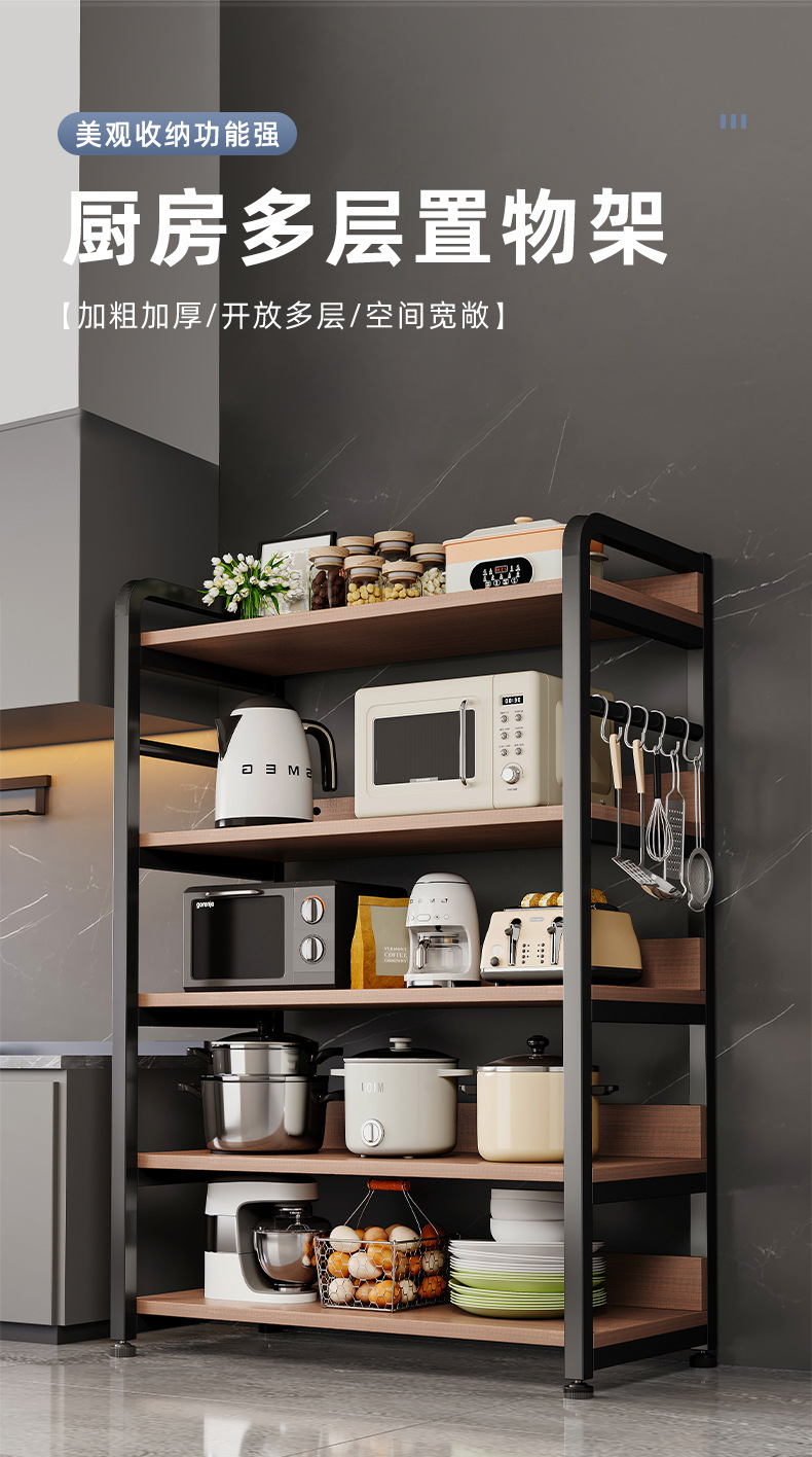 Estante de almacenamiento multicapa de estante de acabado de cocina estante de almacenamiento multifuncional de piso horno de microondas estante de almacenamiento contra la pared
