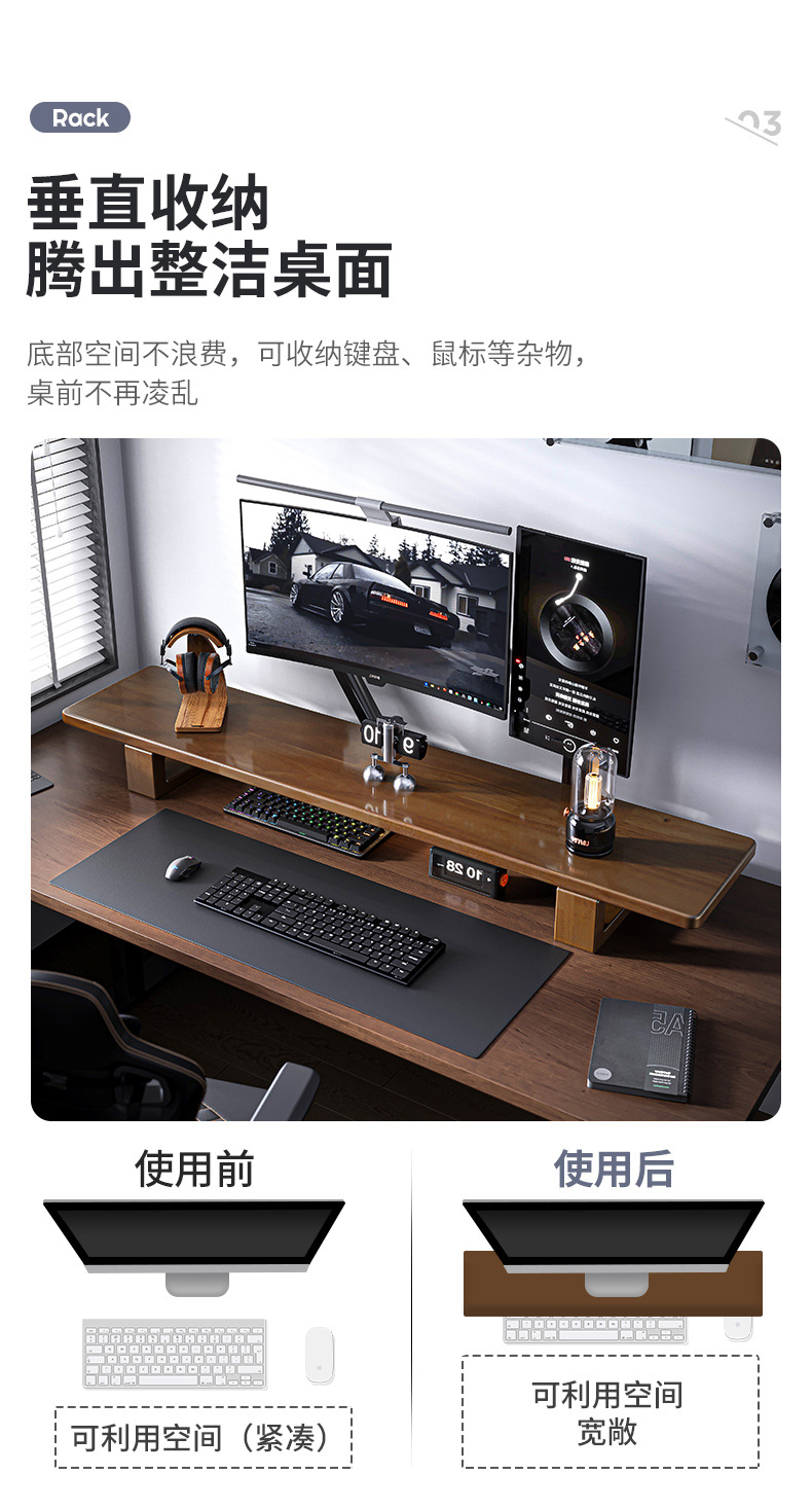 Madera sólida de escritorio monitor de computadora de elevación estante de escritorio de oficina estante de almacenamiento de escritorio doméstico estante de soporte alto