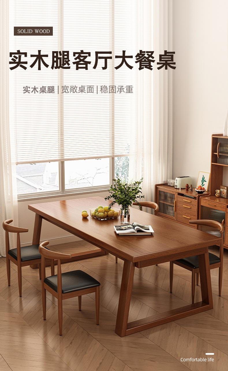 Mesa de comedor de madera nórdica pequeña casa simple rectangular pierna de madera sólida mesa de comedor sala de estar mesa larga combinación de sillas