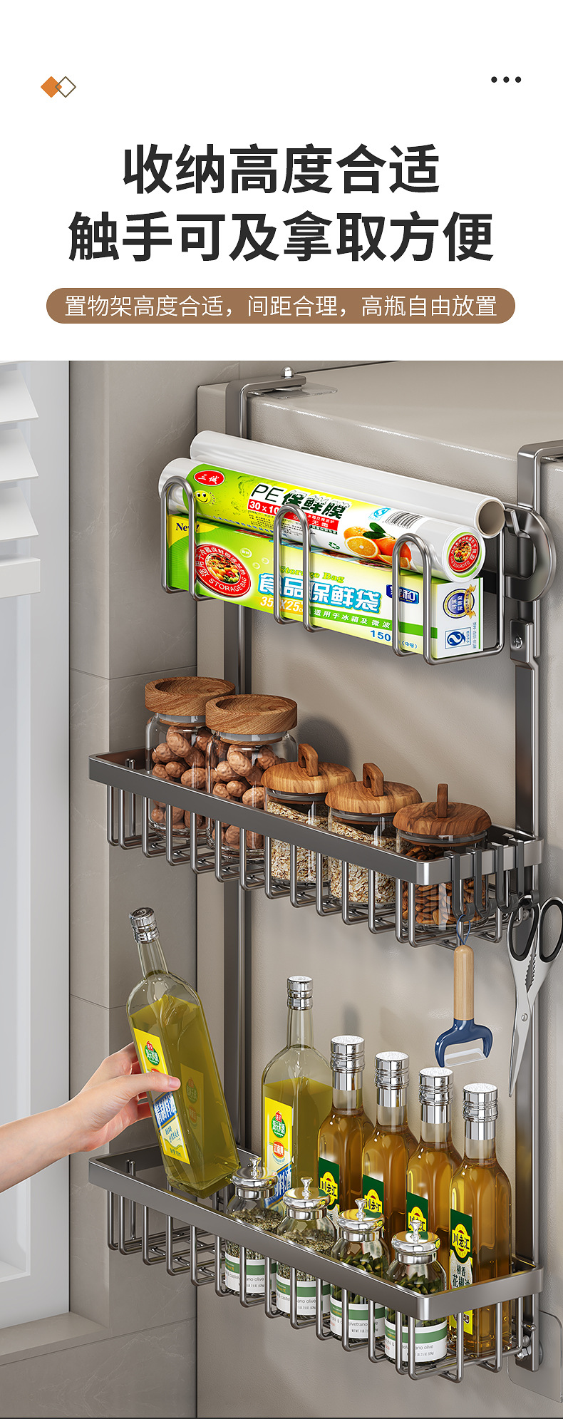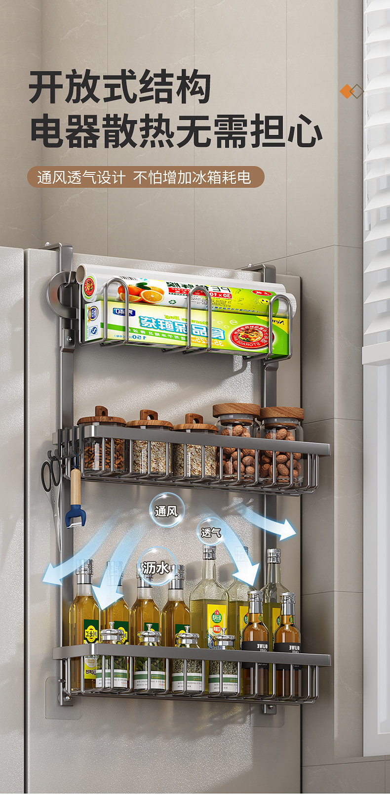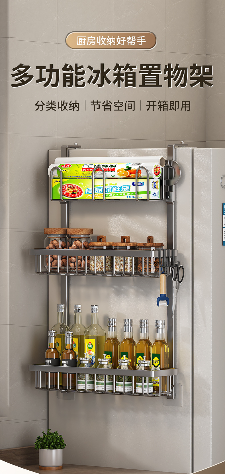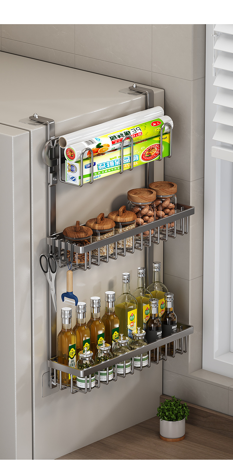 Estante de almacenamiento de refrigerador de cocina exterior de la pared exterior de la lata de condimento multifuncional para artículos domésticos percha de almacenamiento