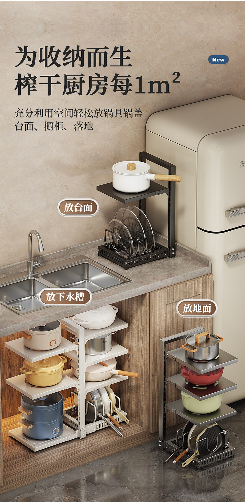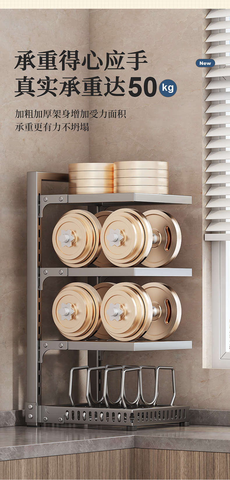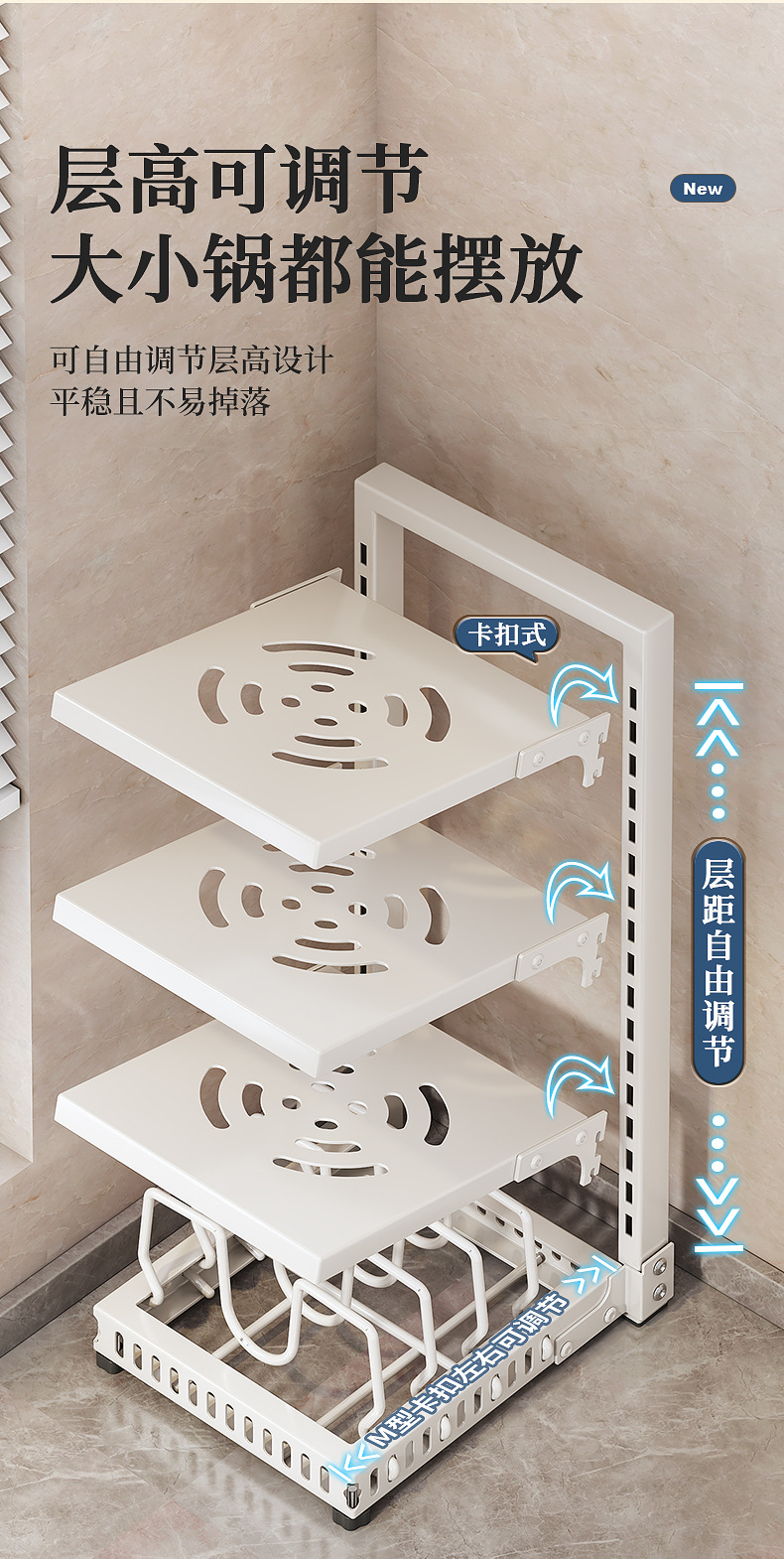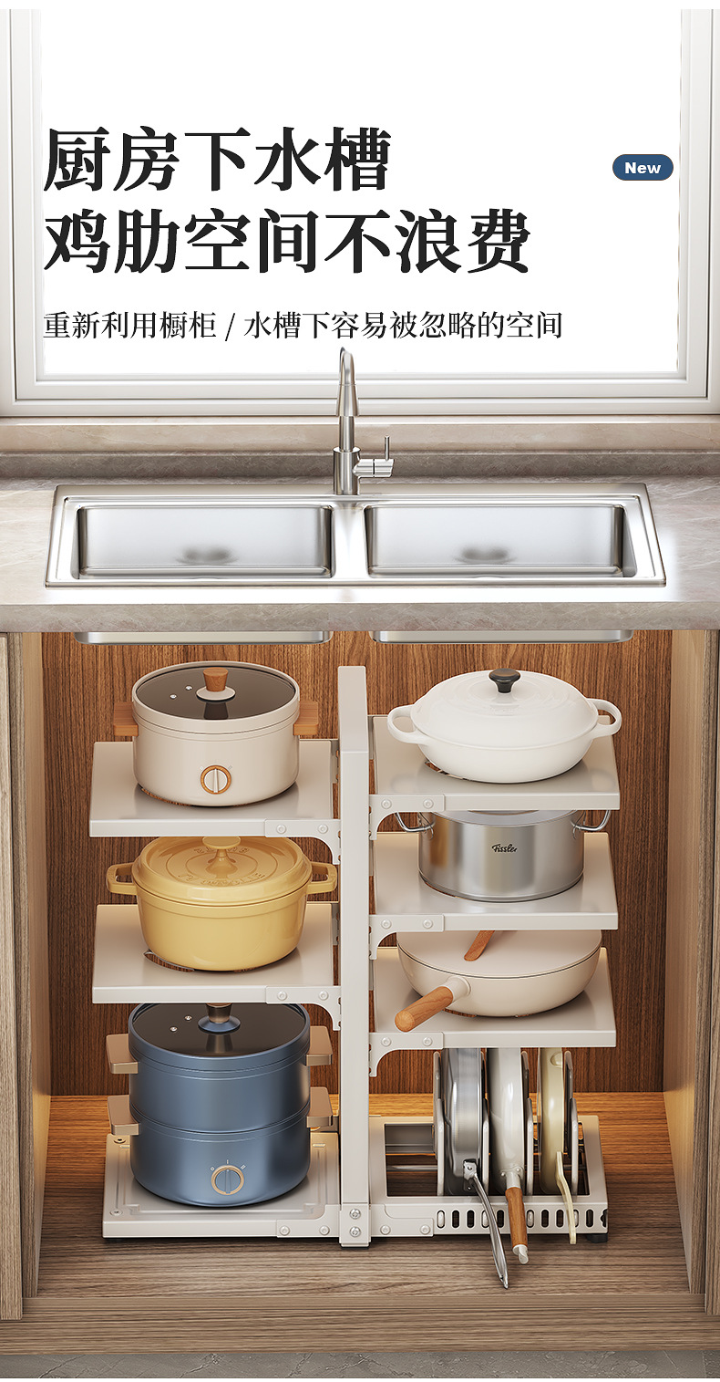 Estante de la olla de la cocina estante de almacenamiento encimera del hogar multi-funcional fregadero gabinete en capas estante de la olla estante de almacenamiento de la olla
