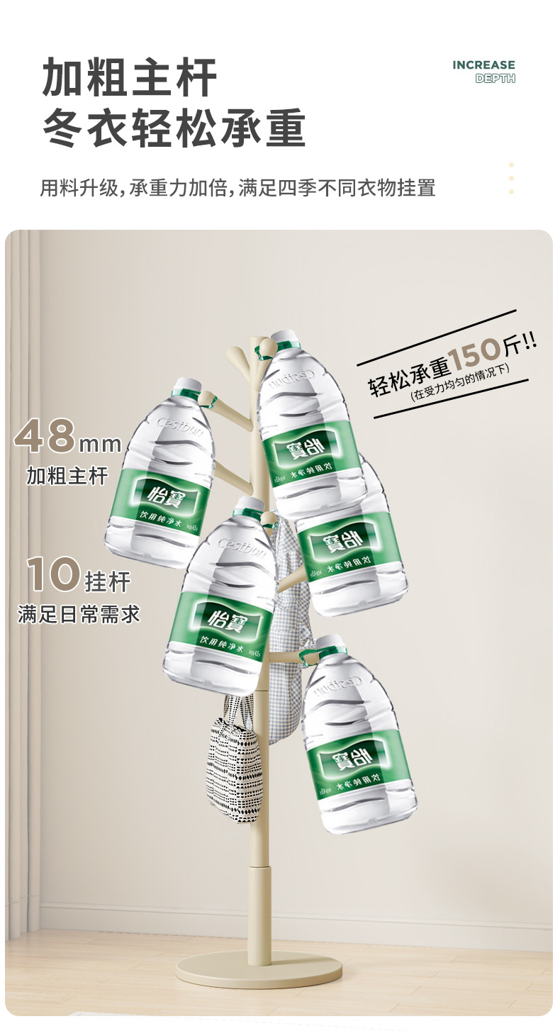 Estilo crema ropa percha piso percha de madera maciza dormitorio hogar ropa vertical simple colgando bolsa de rack