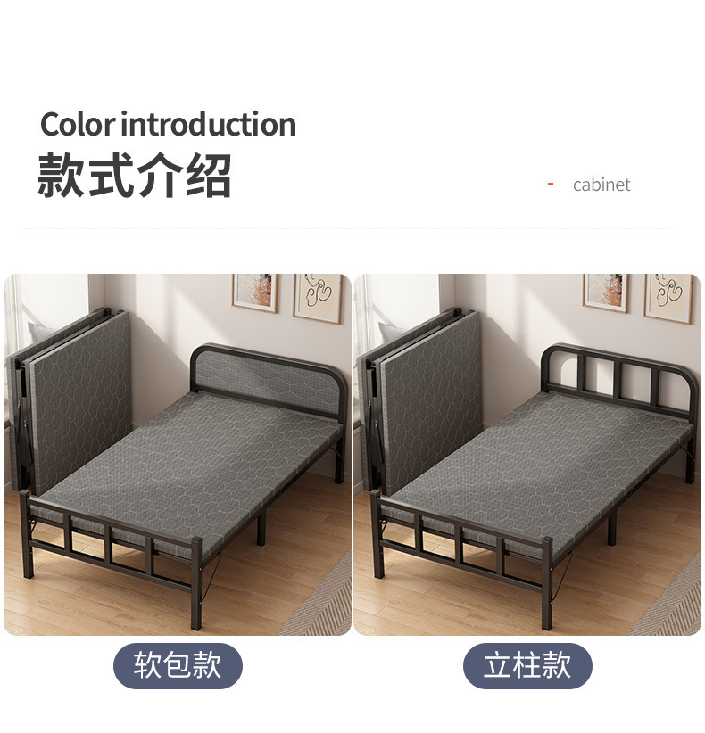 Cama plegable Cama supletoria multifuncional para el hogar individual Cama pequeña para el almuerzo de 1,2 m Cama de hierro dura para adultos