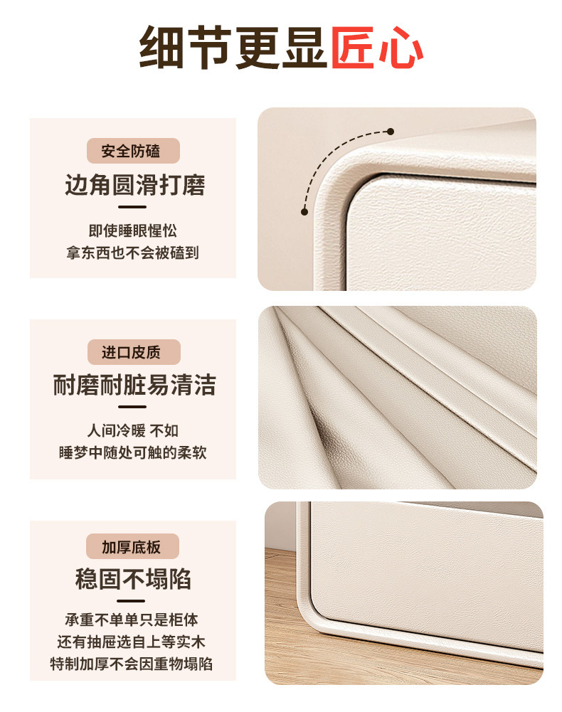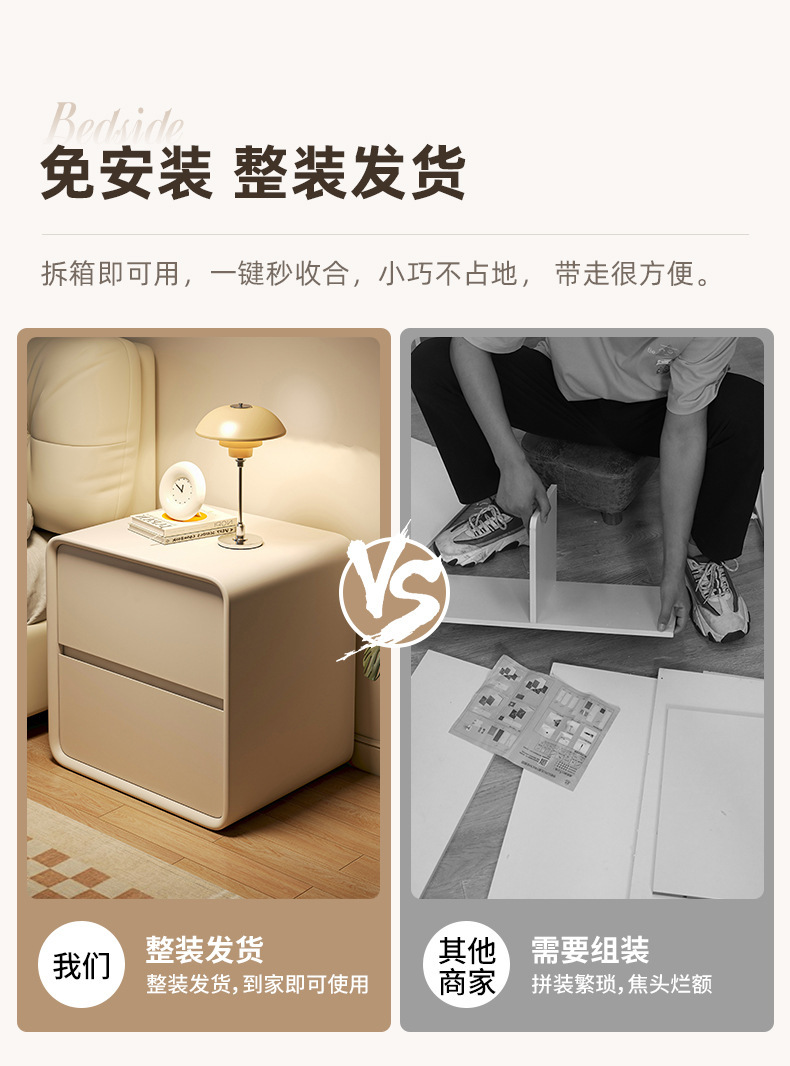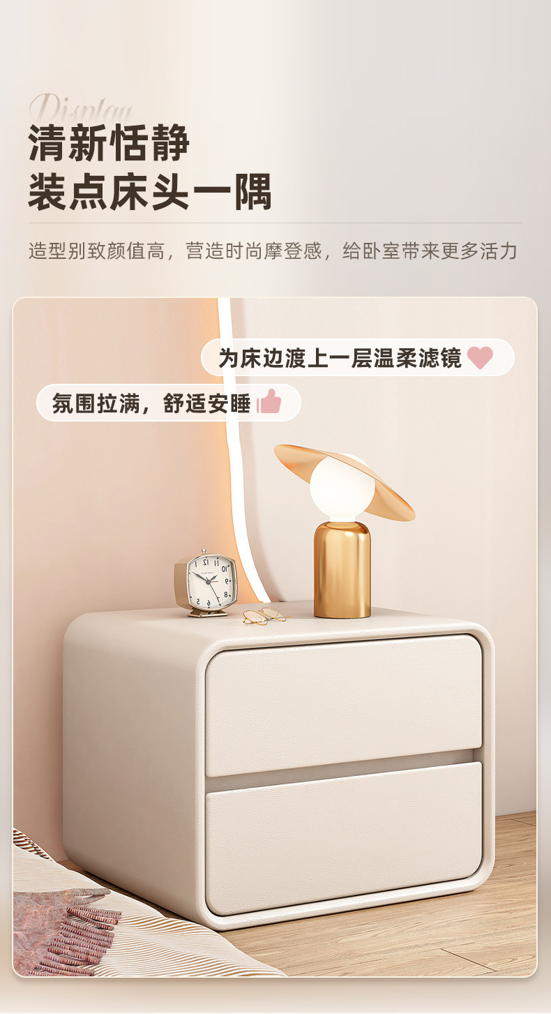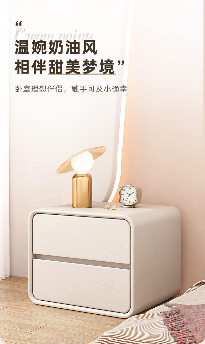 Luz de mesita de noche de lujo Alto sentido pequeño Gabinete lateral de madera maciza simple moderno gabinete de almacenamiento de dormitorio creativo de viento crema