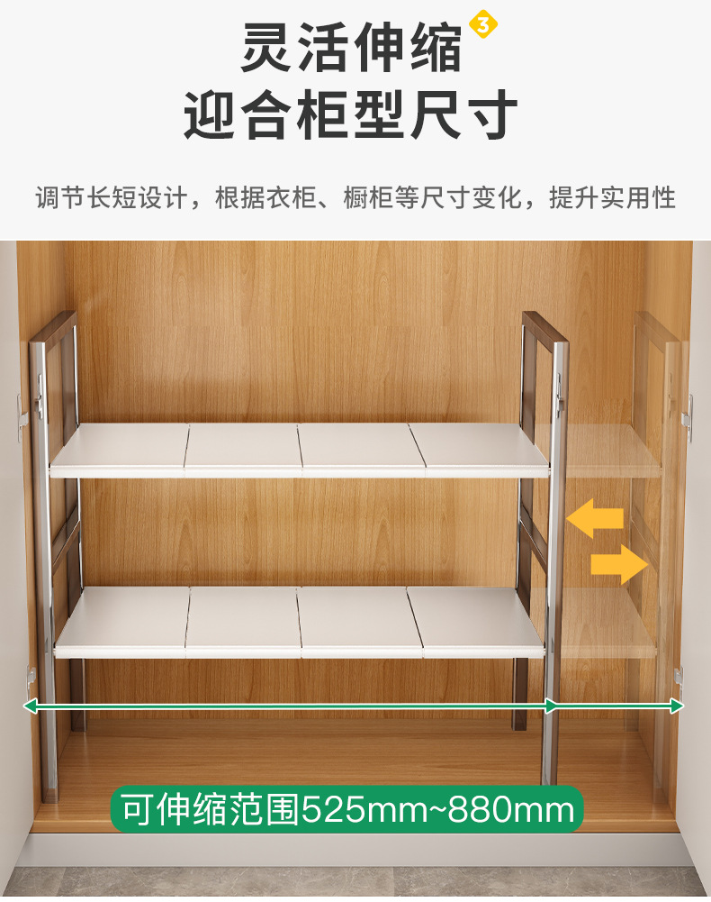 Fregadero de cocina estante de almacenamiento gabinete retráctil estante interior estante de almacenamiento de olla multifuncional