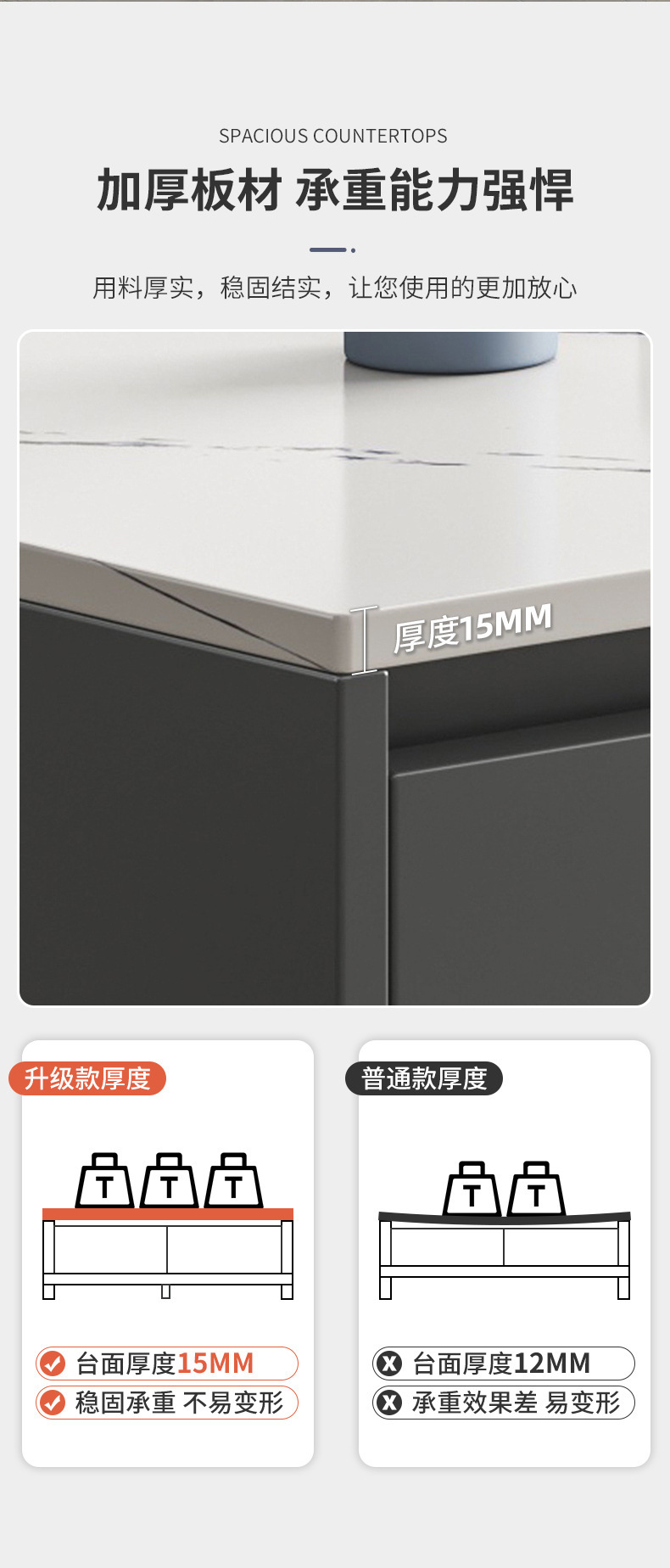 Encimera espaciosa a juego de color de lujo ligero