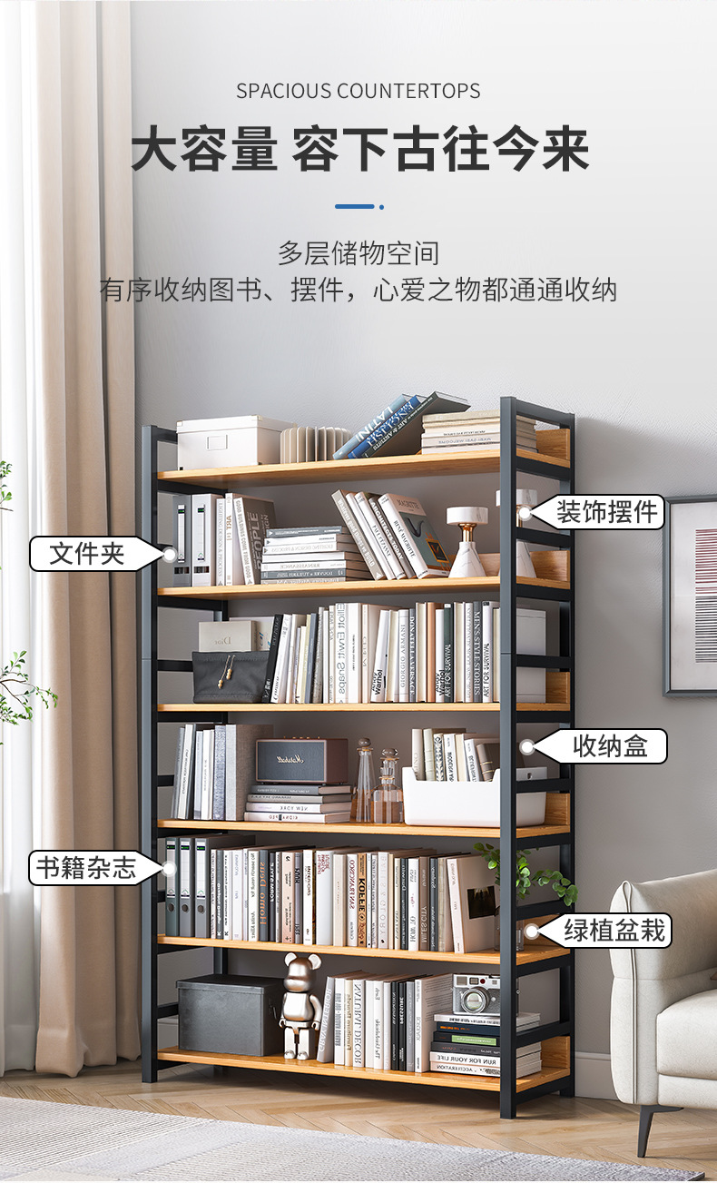 Estantería de almacenamiento rack piso hogar hierro multi-capa almacenamiento sala de almacenamiento estante pequeño simple estante de madera de acero estantería