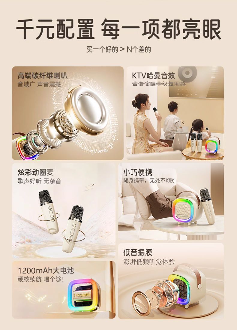Nuevo altavoz bluetooth K-canción micrófono de sonido inalámbrico todo en uno familia KTV conjunto de niños transfronterizos