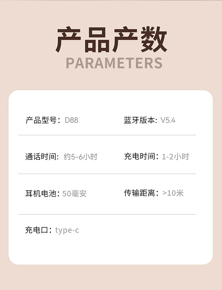 Auriculares Bluetooth inalámbricos reales D88 personalizados de fábrica, duración de la batería larga, alta calidad de sonido, auriculares inalámbricos Bluetooth con reducción de ruido