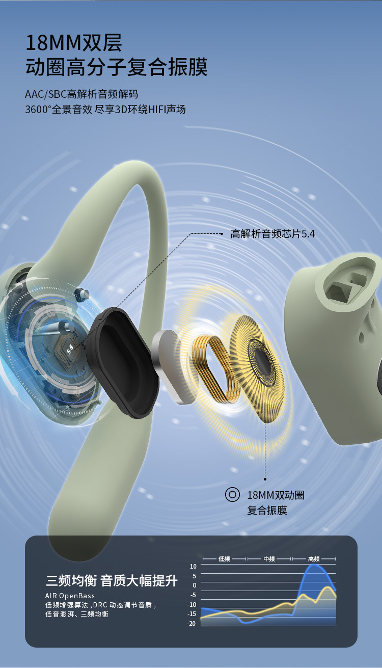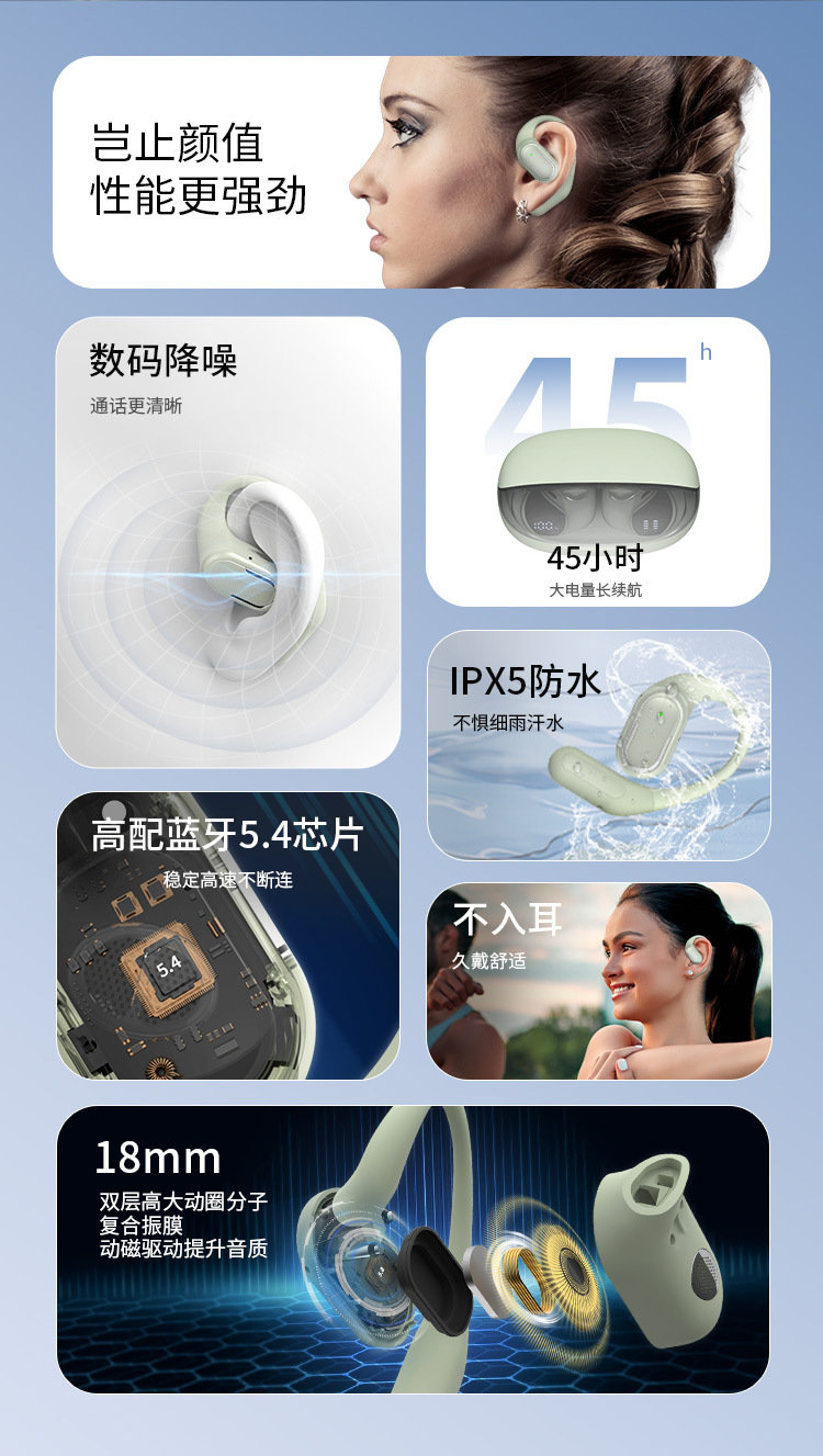 Nuevos auriculares inalámbricos de alta calidad de voz conducción de ruido conductor de alta calidad de llamada a prueba de agua larga duración auriculares Bluetooth abiertos