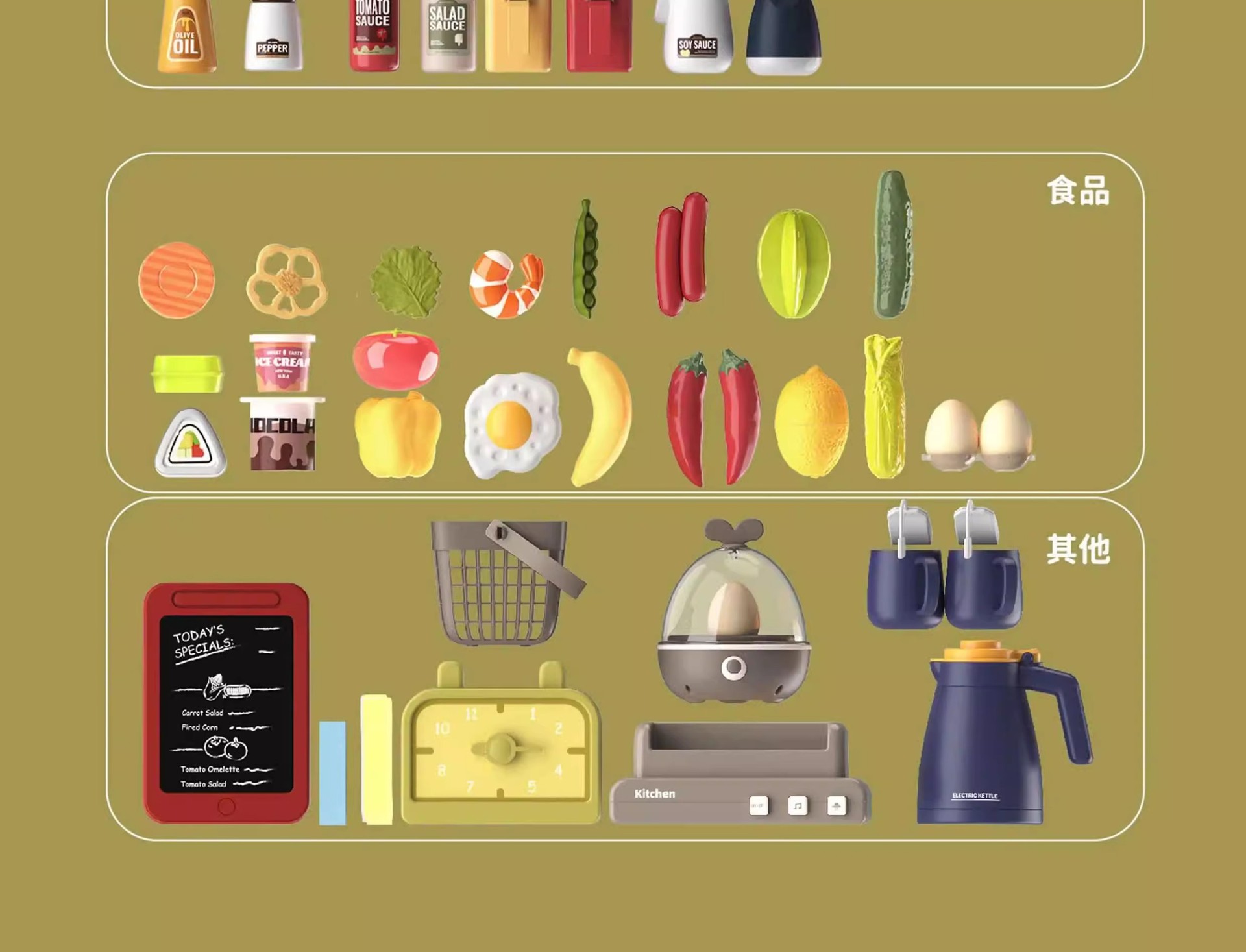 | Color | Versión estándar de 85cm - Begonia Roja [49 accesorios / con spray / sonido y luz / salida de agua], versión estándar de 85cm - verde oliva [49 accesorios / con spray / sonido y luz / salida de agua], versión de lujo de 85cm - Begonia Roja [63 accesorios / con spray / sonido y luz / vaporizador eléctrico de huevos / salida de agua], versión de lujo de 85cm - verde oliva [63 accesorios / con spray / sonido y luz / vaporizador eléctrico de huevos / salida de agua], versión estándar de 93cm - latte de cacao [72 accesorios / con spray / sonido y luz / vaporizador eléctrico de huevos / salida de agua / campana extractora de música], versión estándar de 93cm - ceniza de aguacate [72 accesorios / spray / sonido y luz / vaporizador eléctrico de huevos / salida de agua / campana extractora de música]], la versión de lujo de 93cm puede tomar café con leche [88 accesorios / con spray / sonido y luz / olla de arroz con cero electricidad / plantación simulada / salida de agua / campana extractora musical], la versión de lujo de 93cm - ceniza de aguacate [88 accesorios / con spray / sonido y luz / olla de arroz con aerosol / plantación simulada / salida de agua / campana extractora musical] |