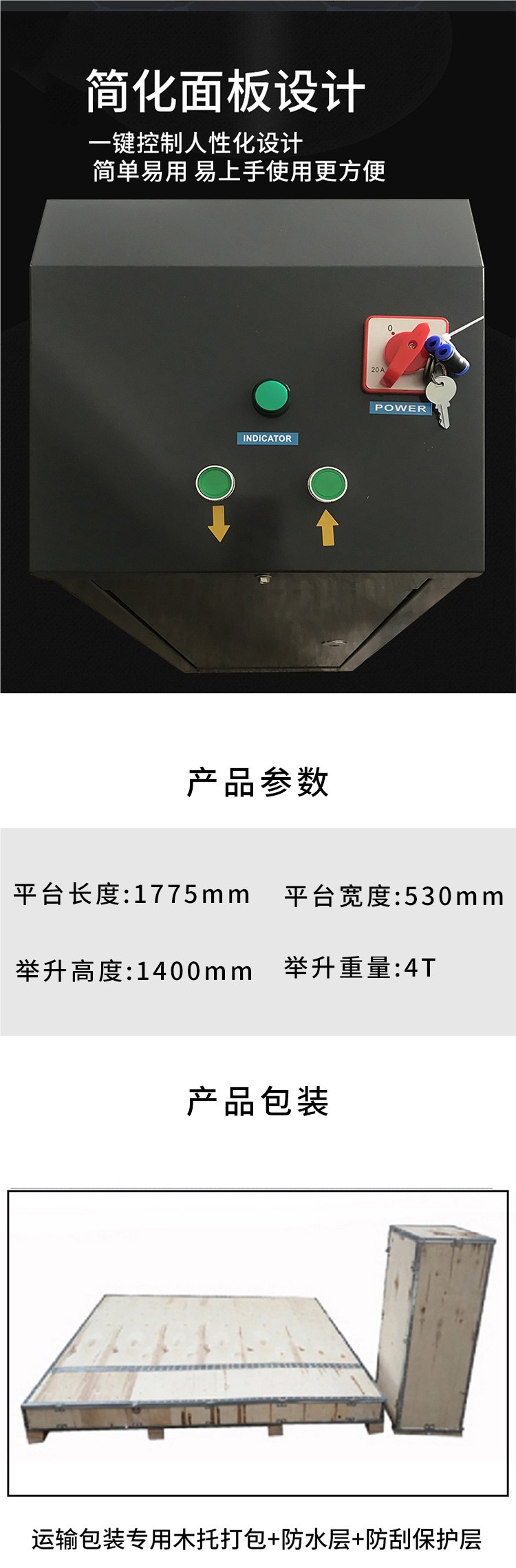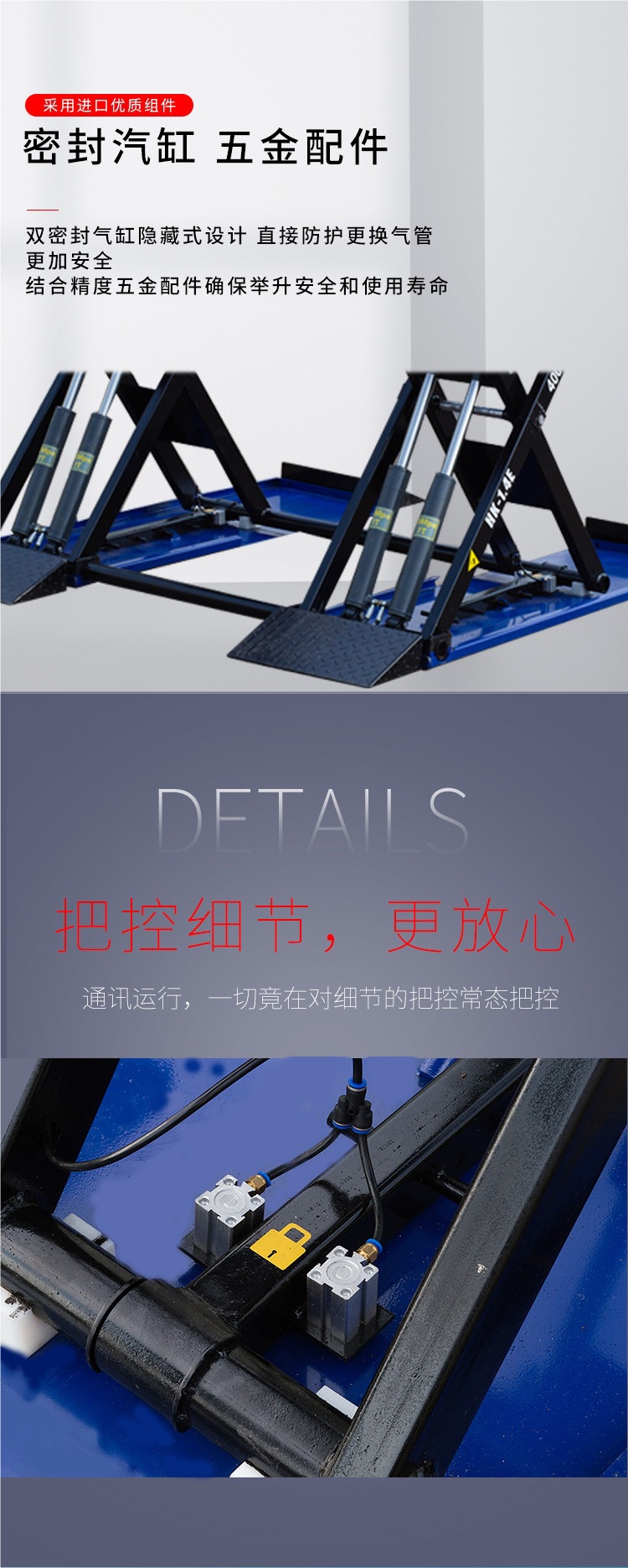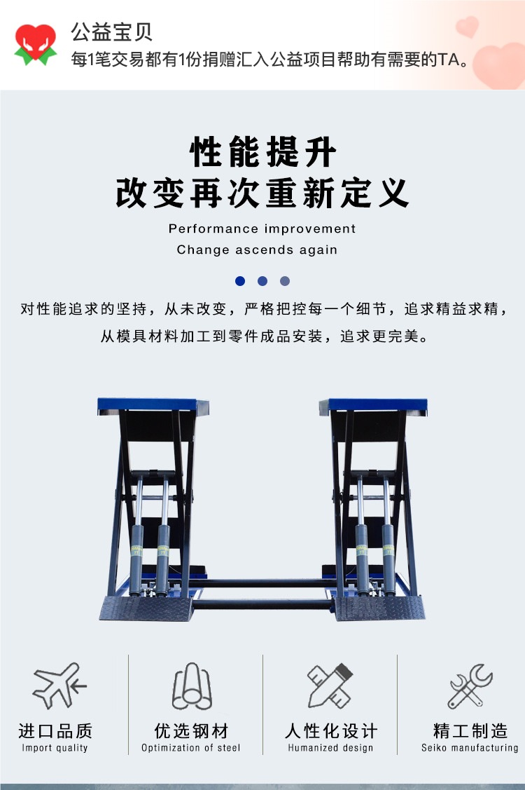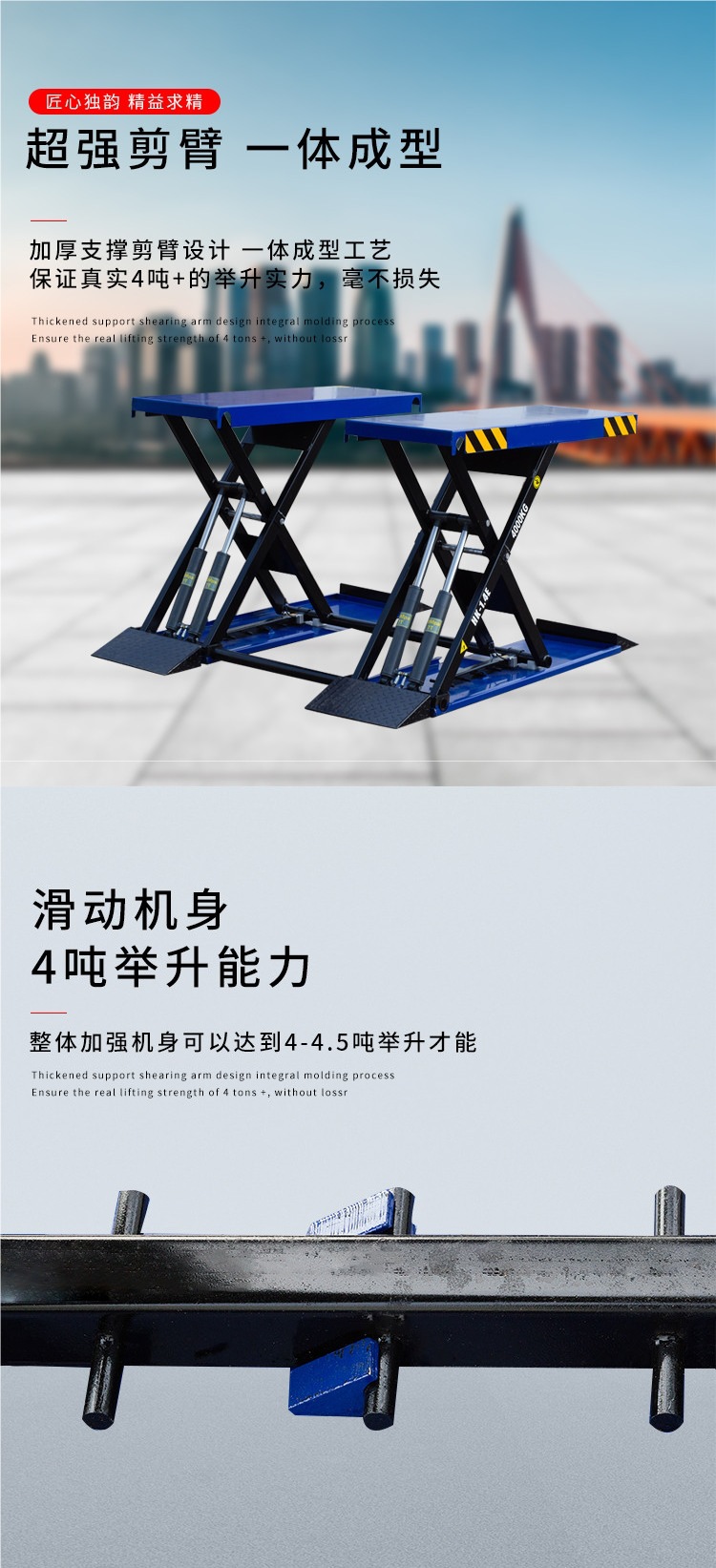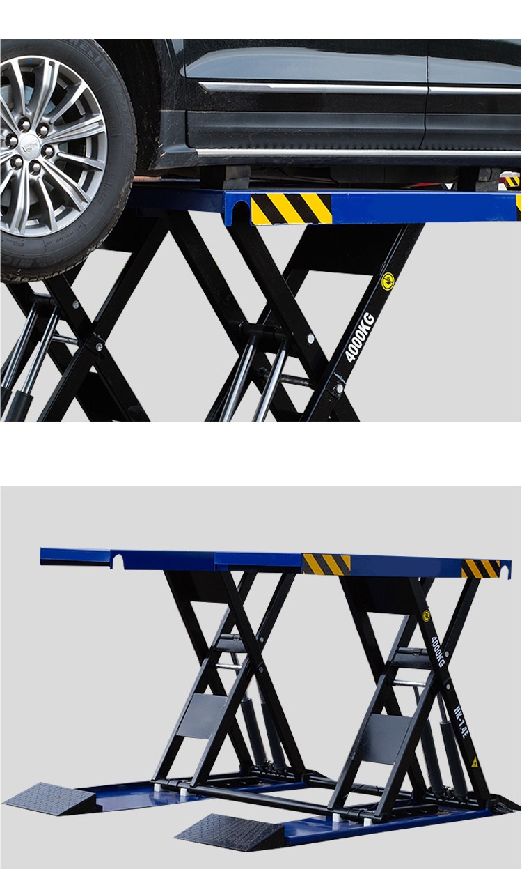 Elevador de tijeras pequeño 1.4m cuatro cilindros 4 toneladas sin ranura de elevador de equipos de mantenimiento de automóviles