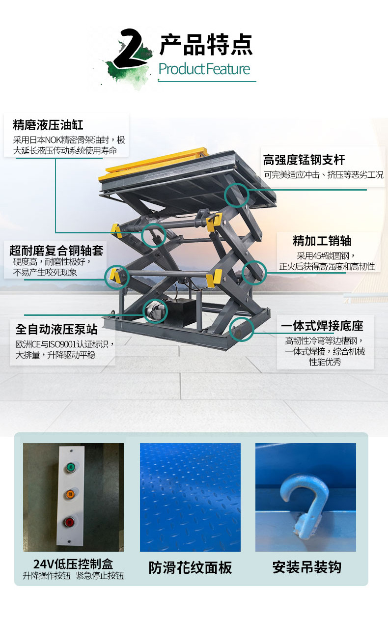 Elevador eléctrico hidráulico transfronterizo de carga de gran tonelaje de plataforma de elevación de horquilla de corte fija pesada