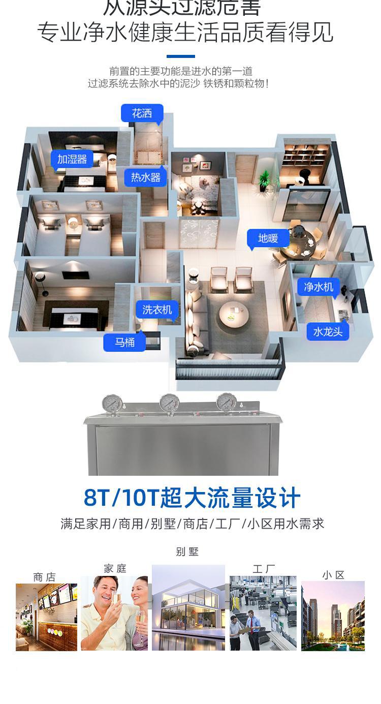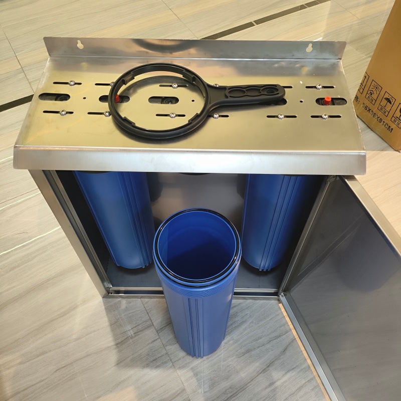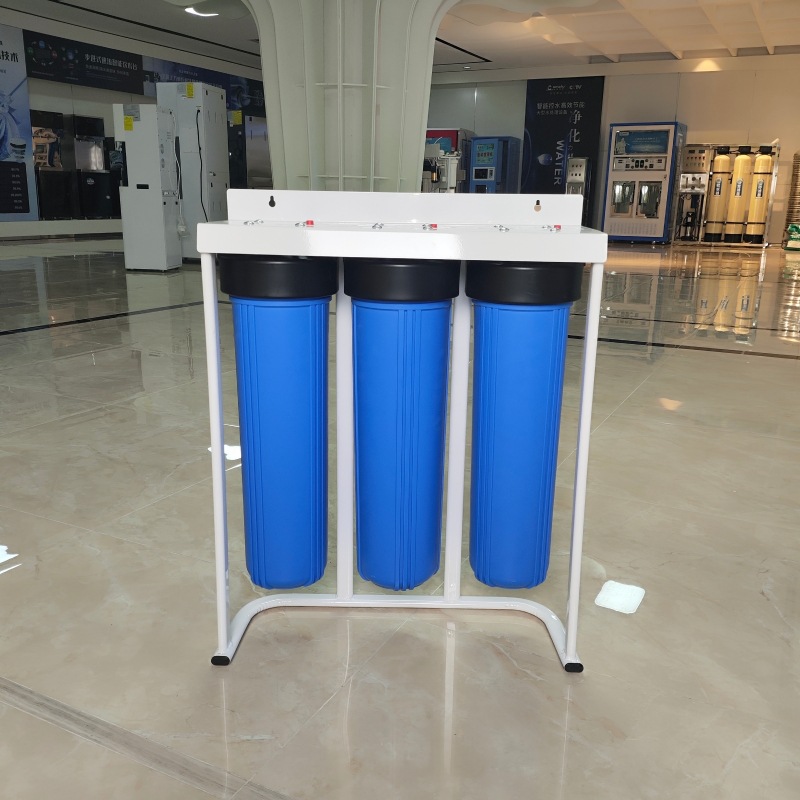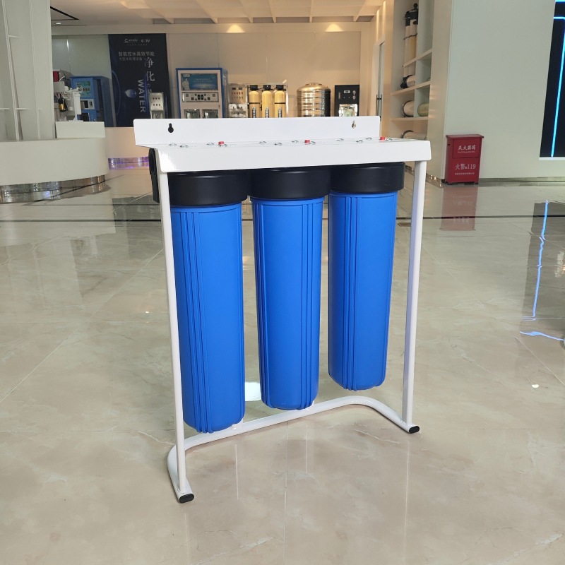Prefiltro gordo grande de 20 pulgadas, agua del grifo de la cocina de tres niveles, purificador de agua para toda la casa, botella azul transparente, estante de gran flujo