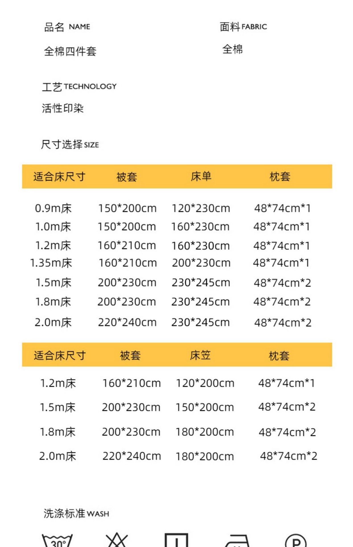 | Especificaciones de tamaño | 0,9 m de cama [tres juegos de camas de dormitorio] adecuado para núcleo de edredón de 150x200 cm, 1,2 m de cama [tres juegos de sábanas] adecuado para núcleo de edredón de 150x200 cm, 1,5 m de cama [cuatro juegos de sábanas] adecuado para núcleo de edredón de 200x230cm, 1,8 m de cama [cuatro juegos de sábanas] adecuado para núcleo de edredón de 200x230cm, 2,0 m de cama [cuatro juegos de sábanas] adecuado para núcleo de edredón de 220x240cm, 1,5 m de cama [cuatro juegos de hojas de cama] adecuado para núcleo de edredón de 200x230cm, 1,8 m cama [modelo de hoja de cama más juego de cuatro piezas] - adecuado para 220x240cm edredón |
