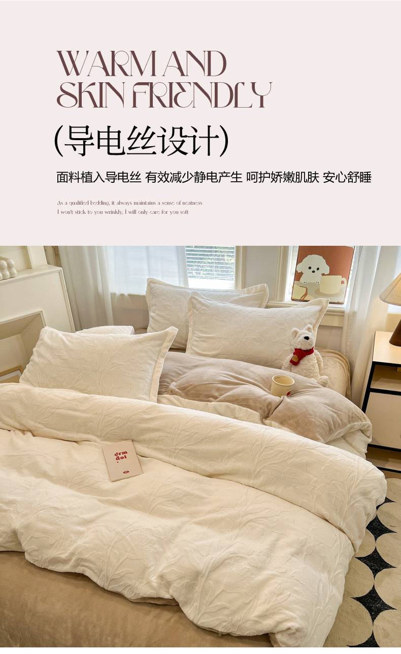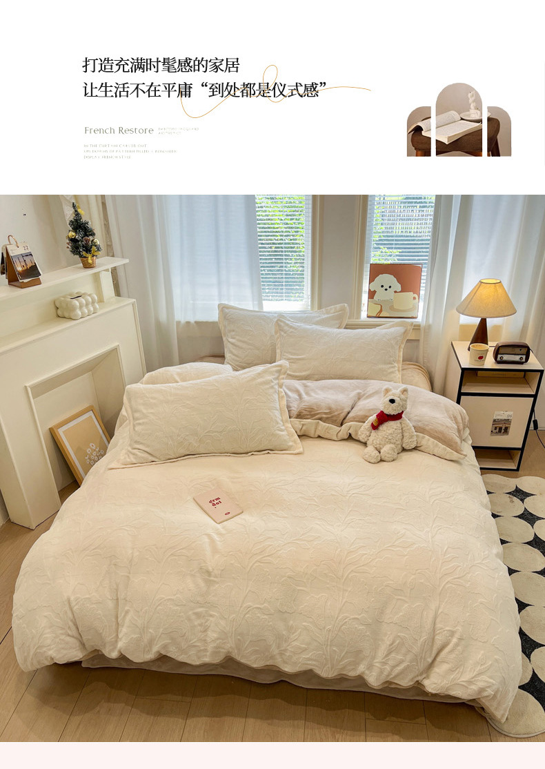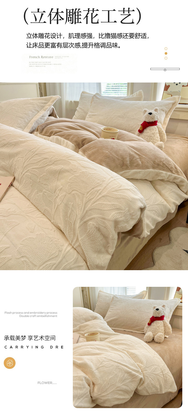 Espesado tallado de leche de lana de cuatro piezas de invierno cálido lujoso sábanas de lana de coral cubierta de cama de lana