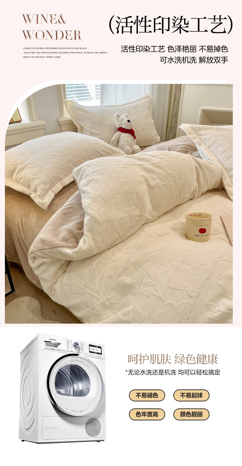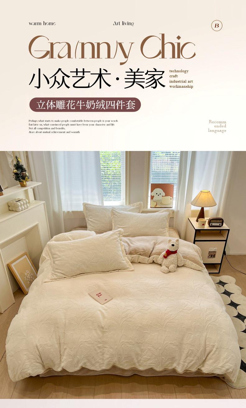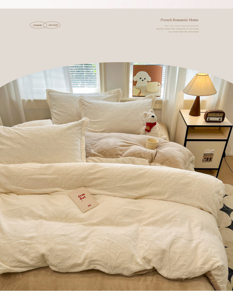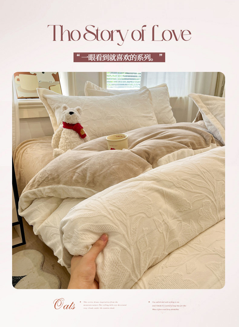 Espesado tallado de leche de lana de cuatro piezas de invierno cálido lujoso sábanas de lana de coral cubierta de cama de lana