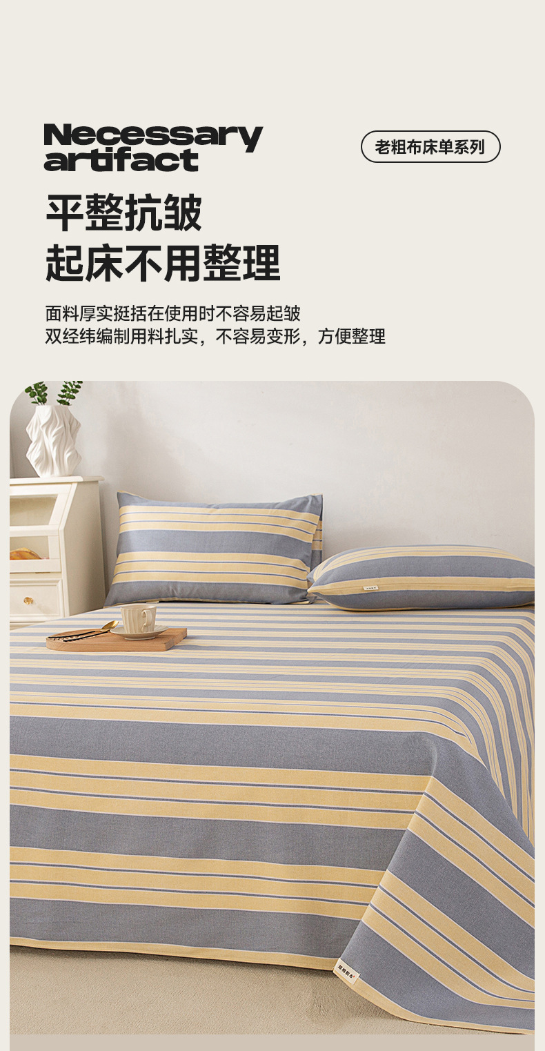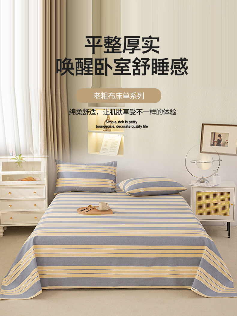 Sábana de tela gruesa vieja gruesa de una sola pieza de lino, algodón y lino, verano 100 algodón puro, sábana de algodón, juego de tres piezas individual