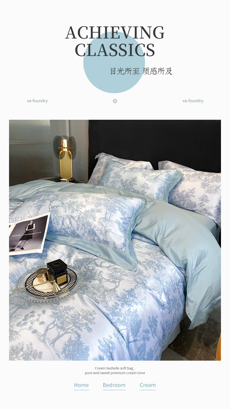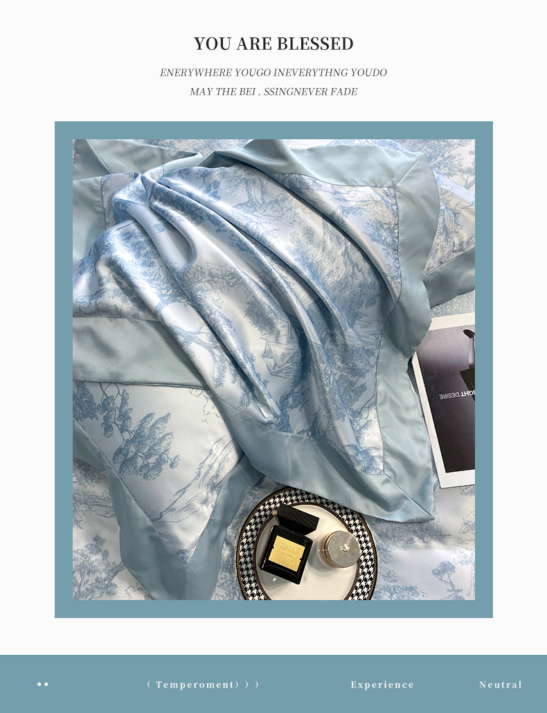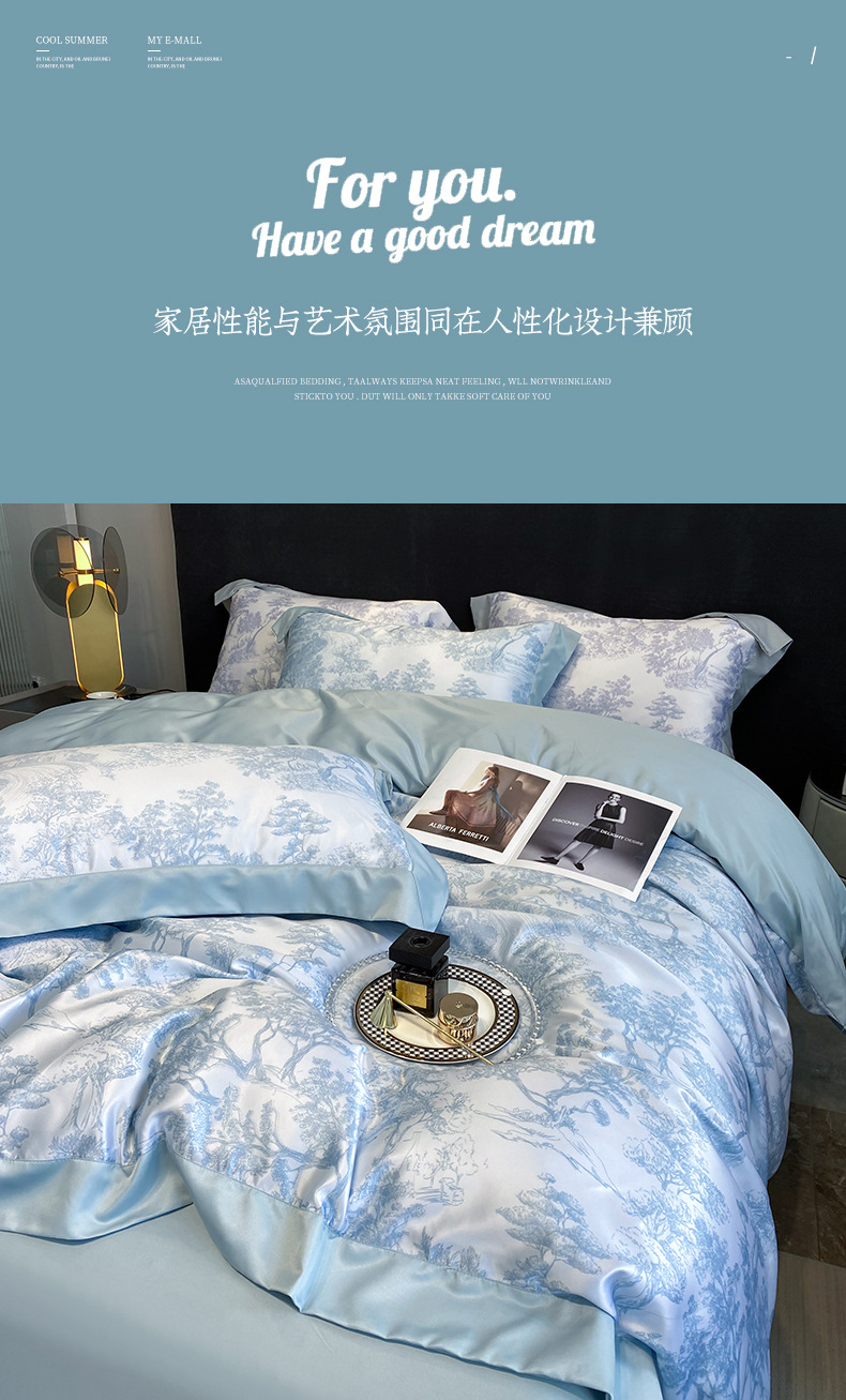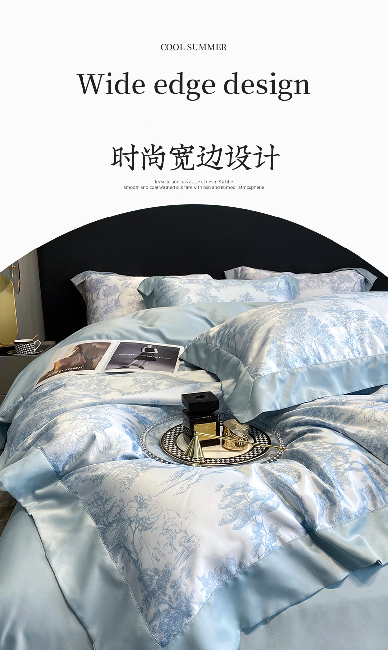 Juego de cuatro piezas de Tensi, funda de edredón de sábana de seda, ropa de cama desnuda y sedosa de alta calidad, funda de edredón, ropa de cama de seda de hielo, juego de tres piezas