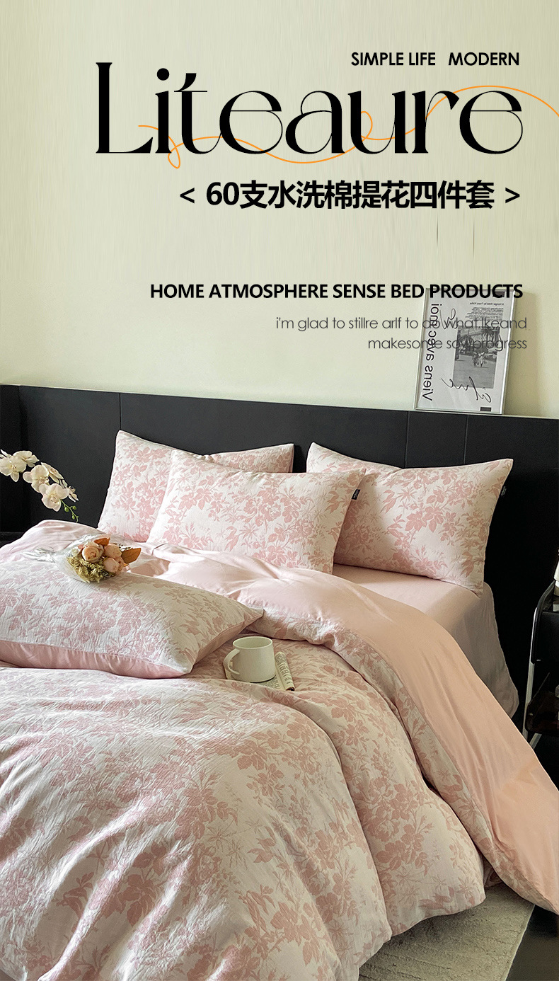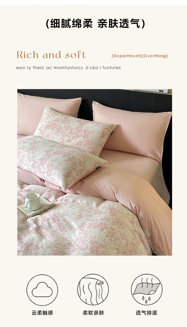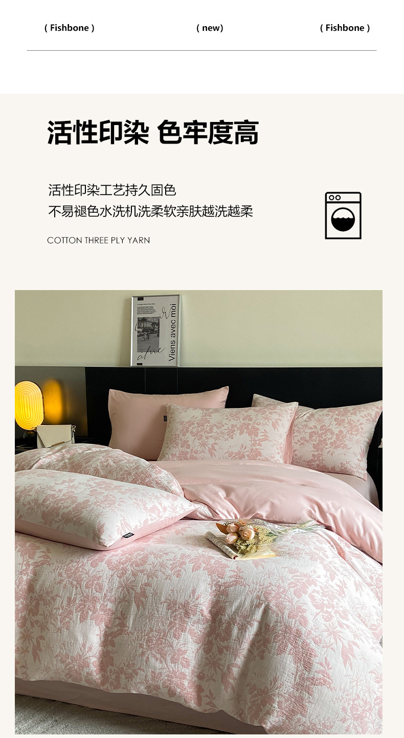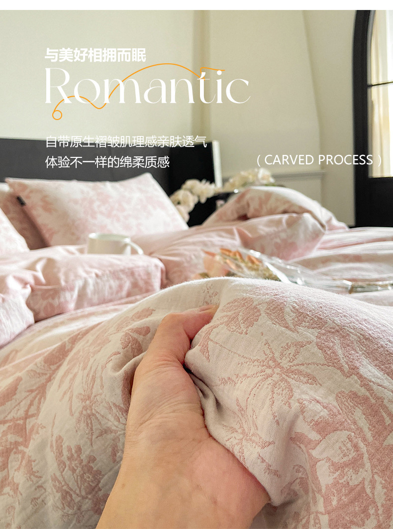 Cama de hilo de doble capa de cuatro piezas de algodón puro 100 funda de edredón de algodón grueso de tres piezas de sábanas de dormitorio 2025 nuevo 3