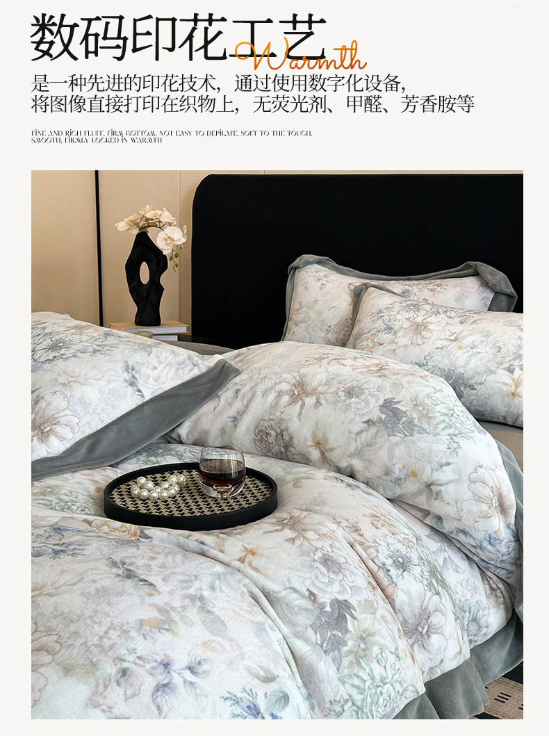 Leche de invierno cama de cuatro piezas conjunto 2025 nuevo engrosado calentamiento sábanas de coral cubierta de cama de tres piezas conjunto de ropa de cama