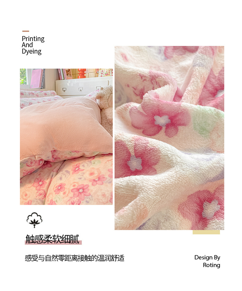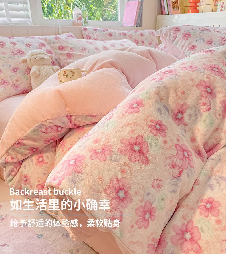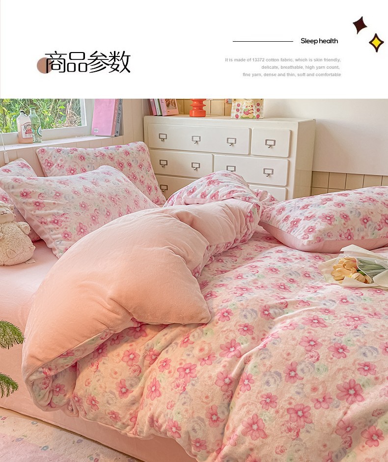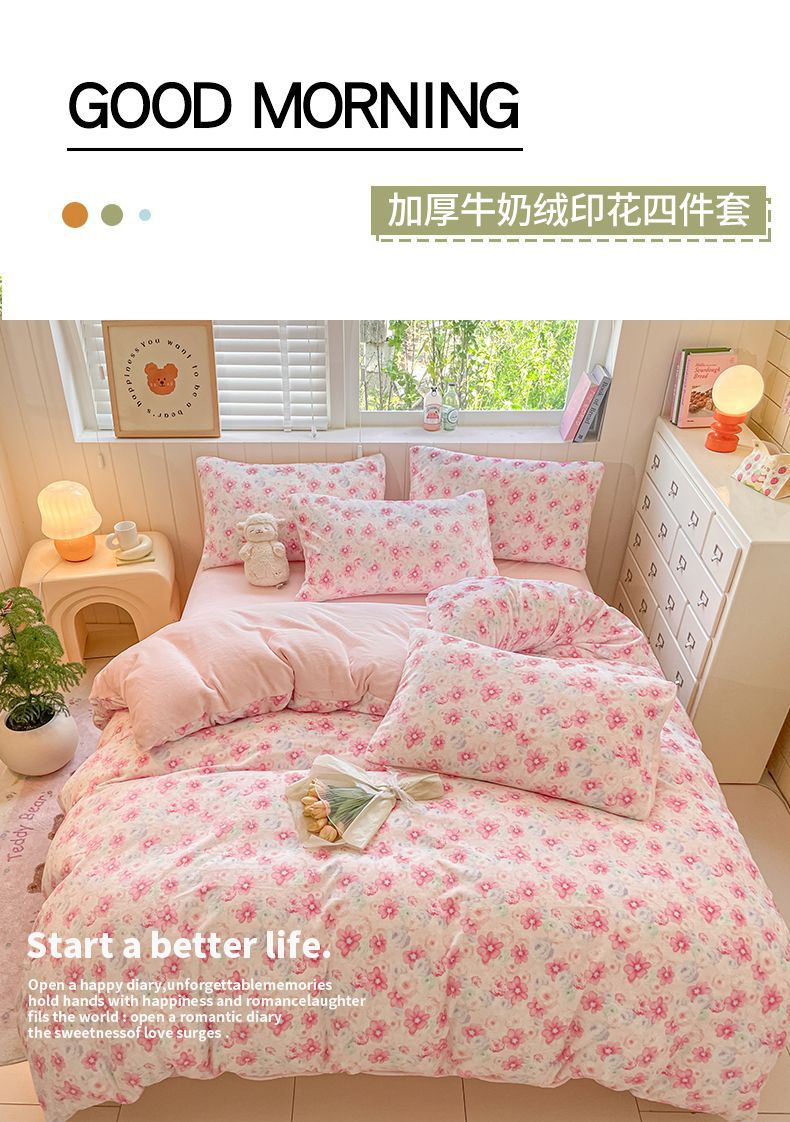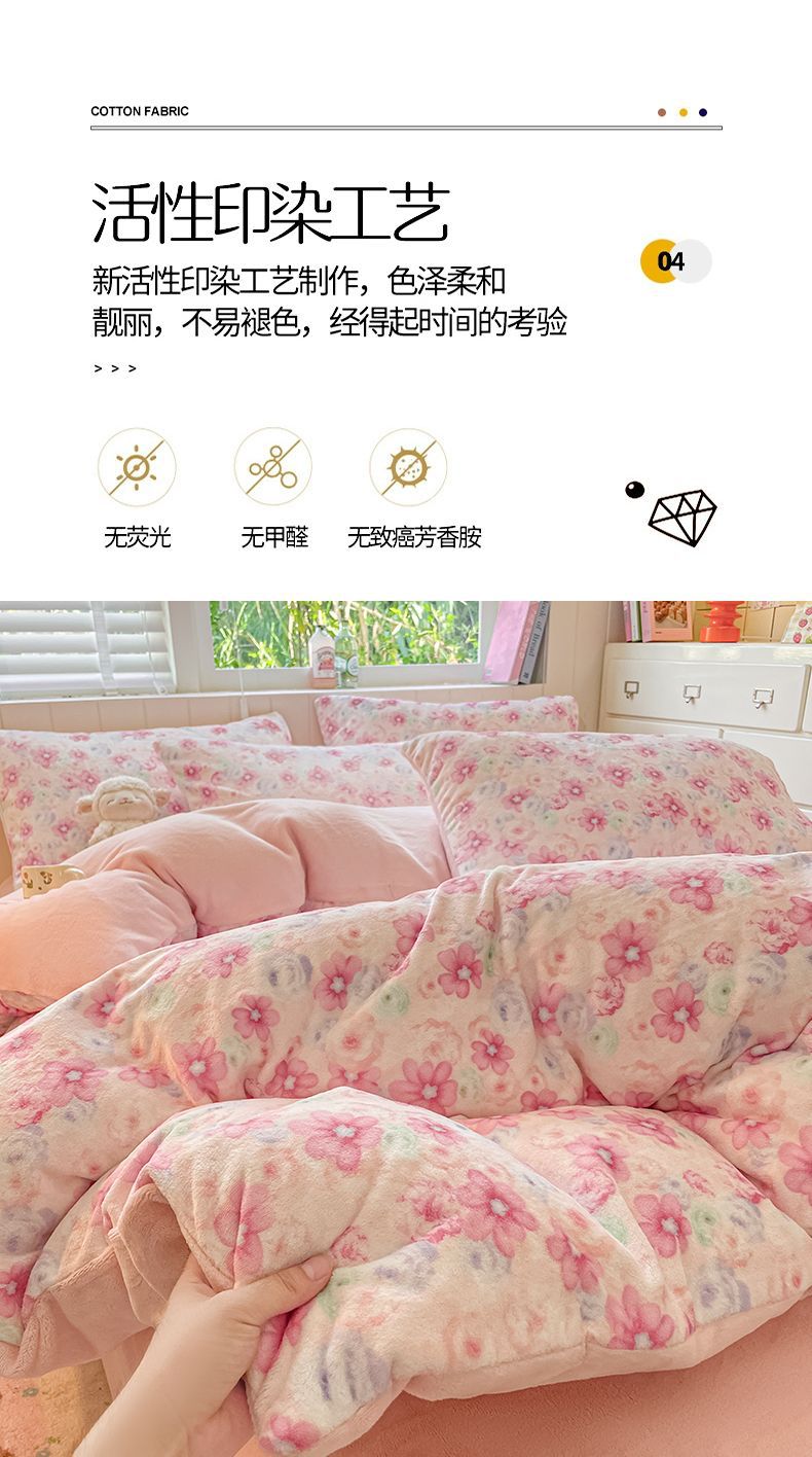 Invierno engrosado y cálido de terciopelo de leche de cuatro piezas conjunto 2025 nuevo pequeño fresco de coral sábanas cubiertas de cama