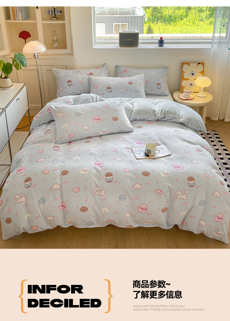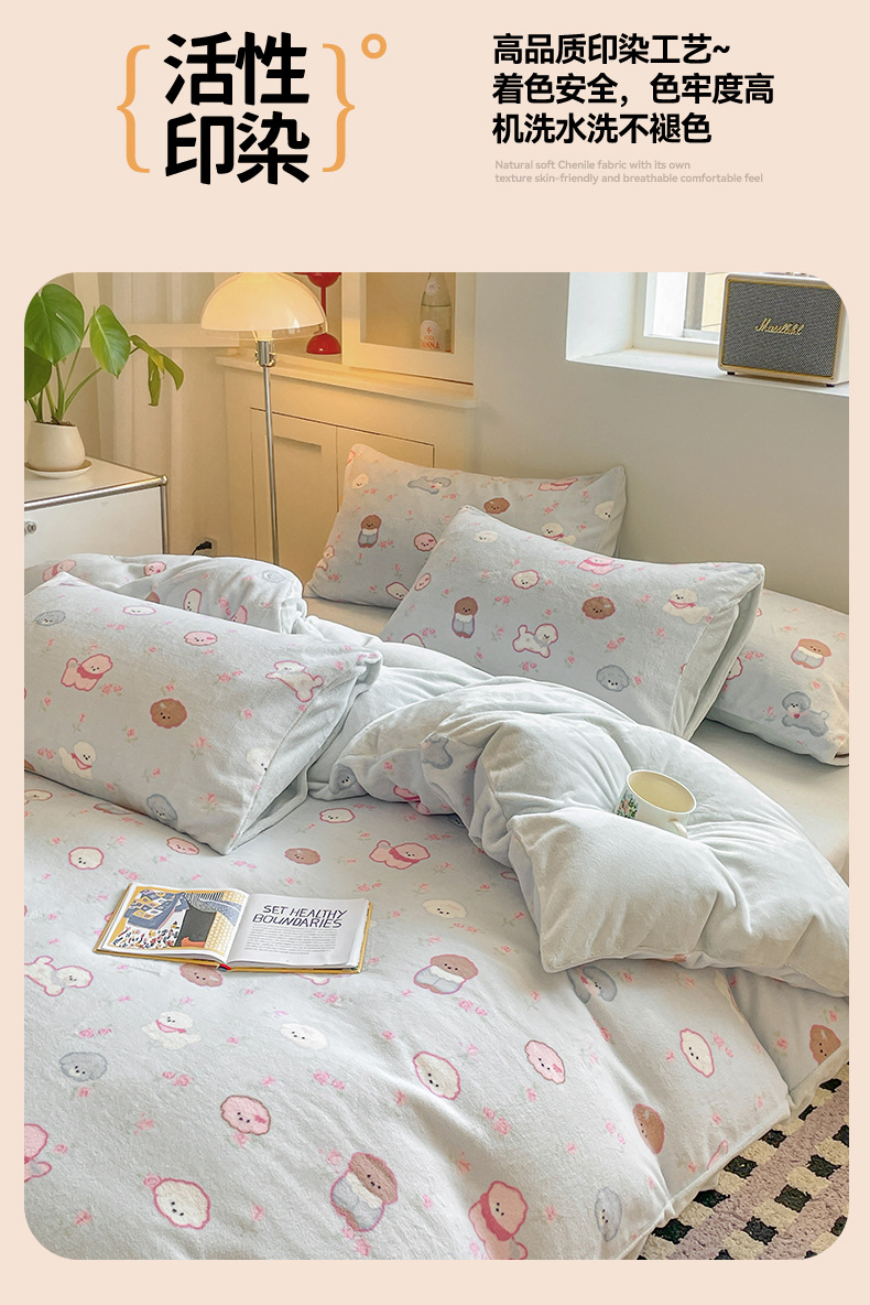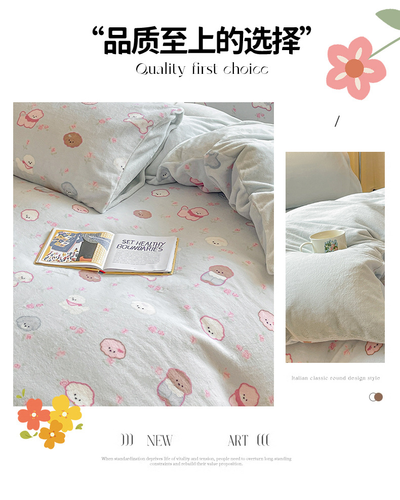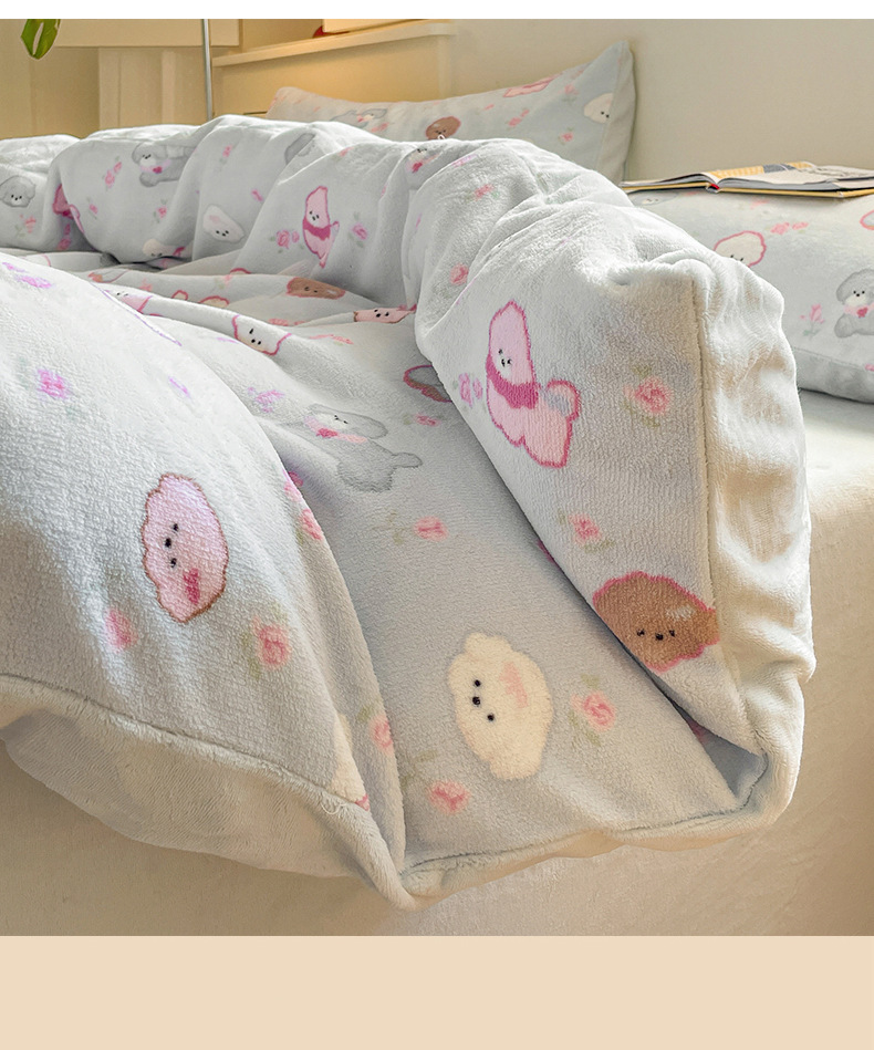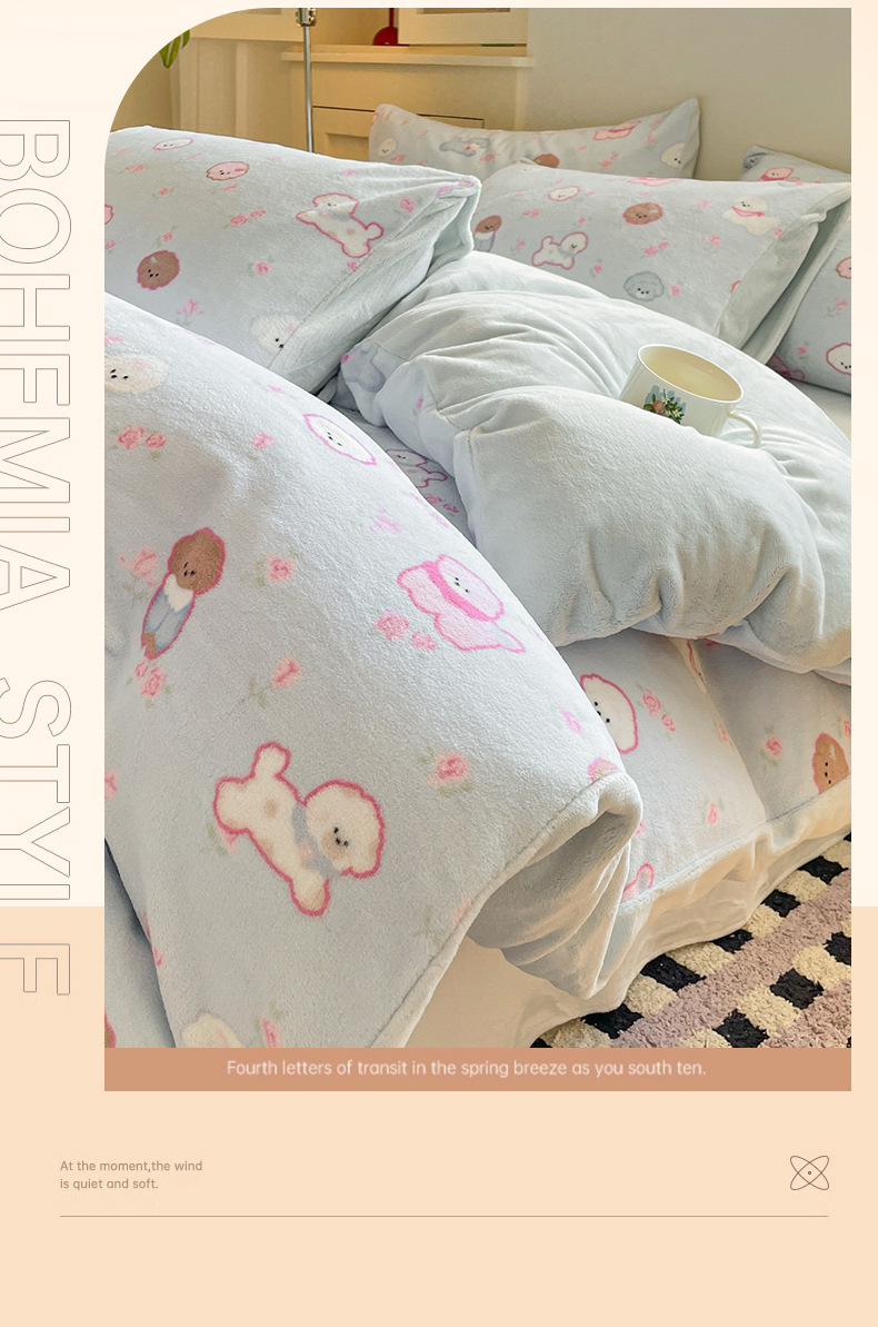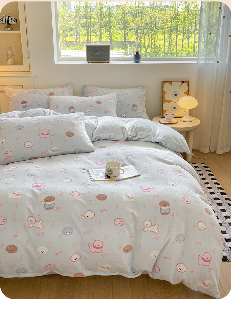 2025 nuevo dibujo animado de leche de seda de cuatro piezas en invierno engrosado calentamiento sábanas de seda de coral cubierta ropa de cama