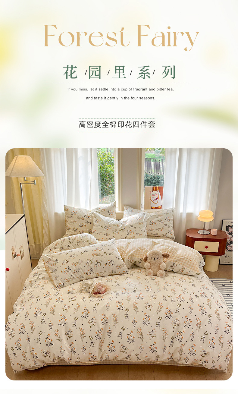 Inswind pequeña flor de algodón cama de cuatro piezas set de algodón puro 2025 nuevo dormitorio sábanas de cama sábanas