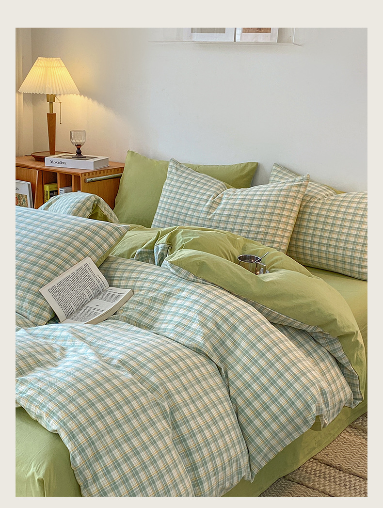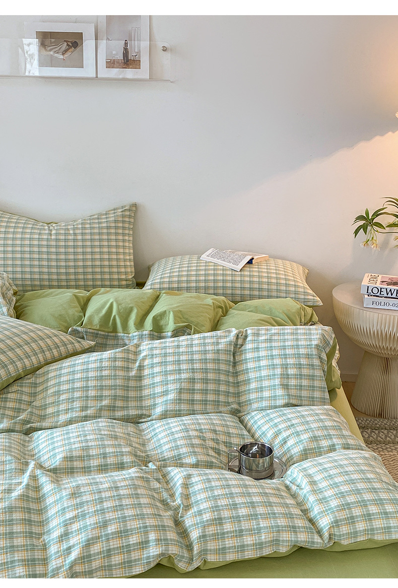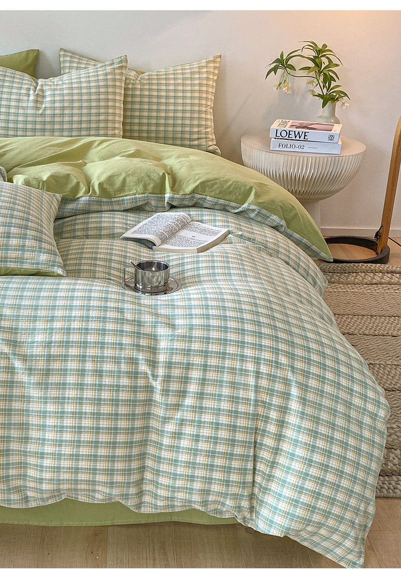 Algodón simple cuadrícula set de cuatro piezas 100 algodón completo 2025 nuevo set de sábanas domésticas de tres piezas colcha de algodón 4